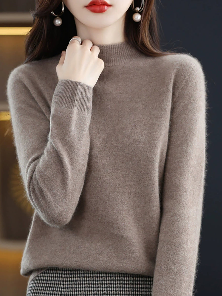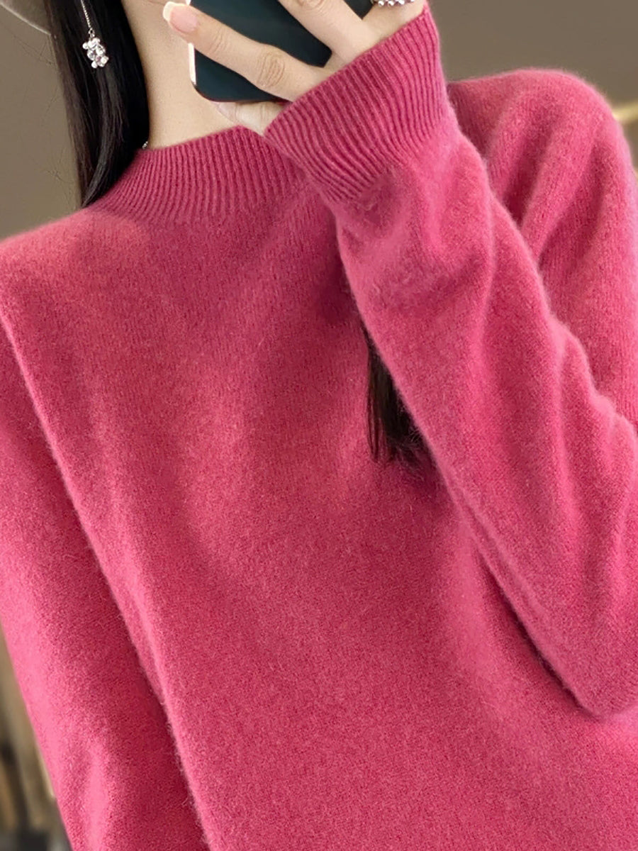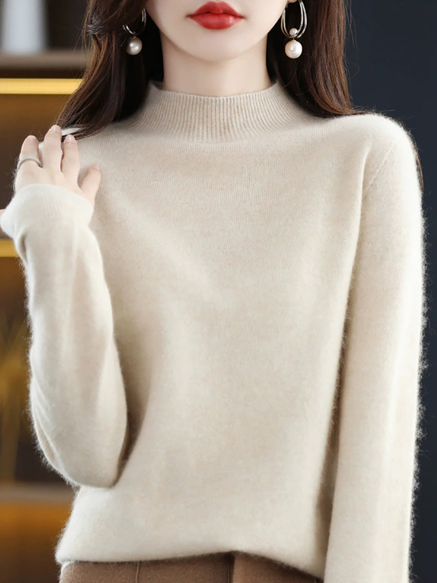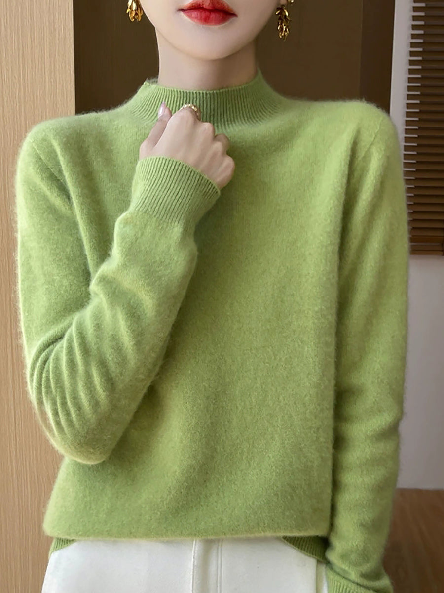 Women Winter Artsy Pure Color Wool Half-Turtleneck Sweater