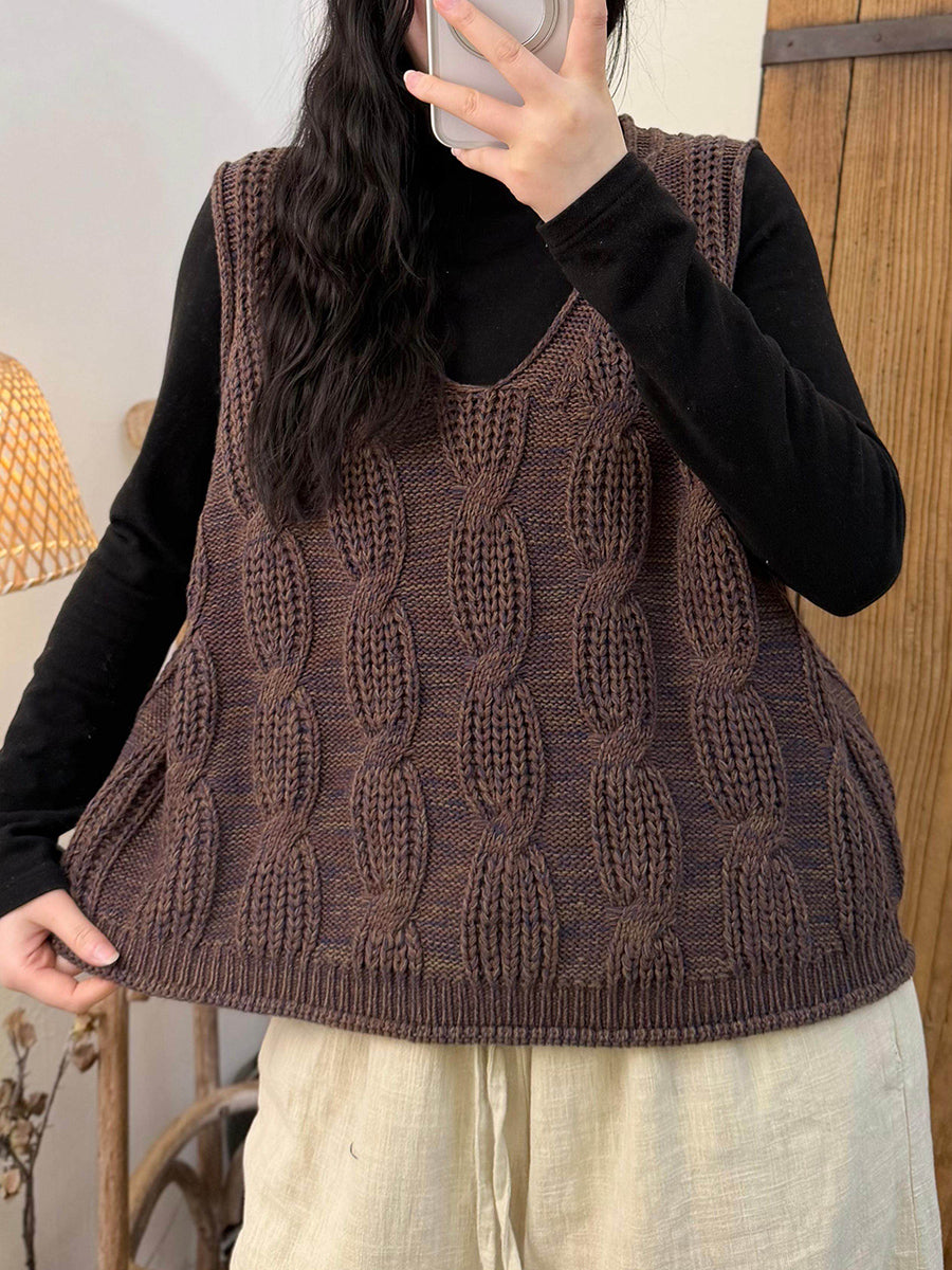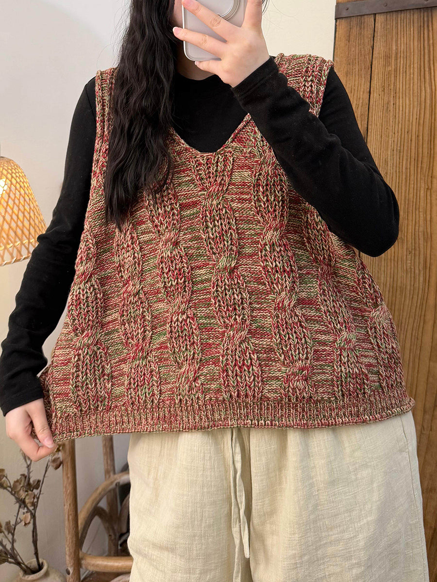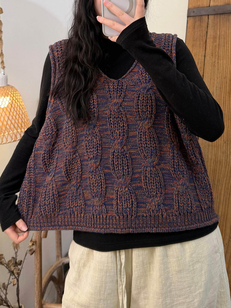 Women Winter Artsy V-Neck Cable-knit Vest