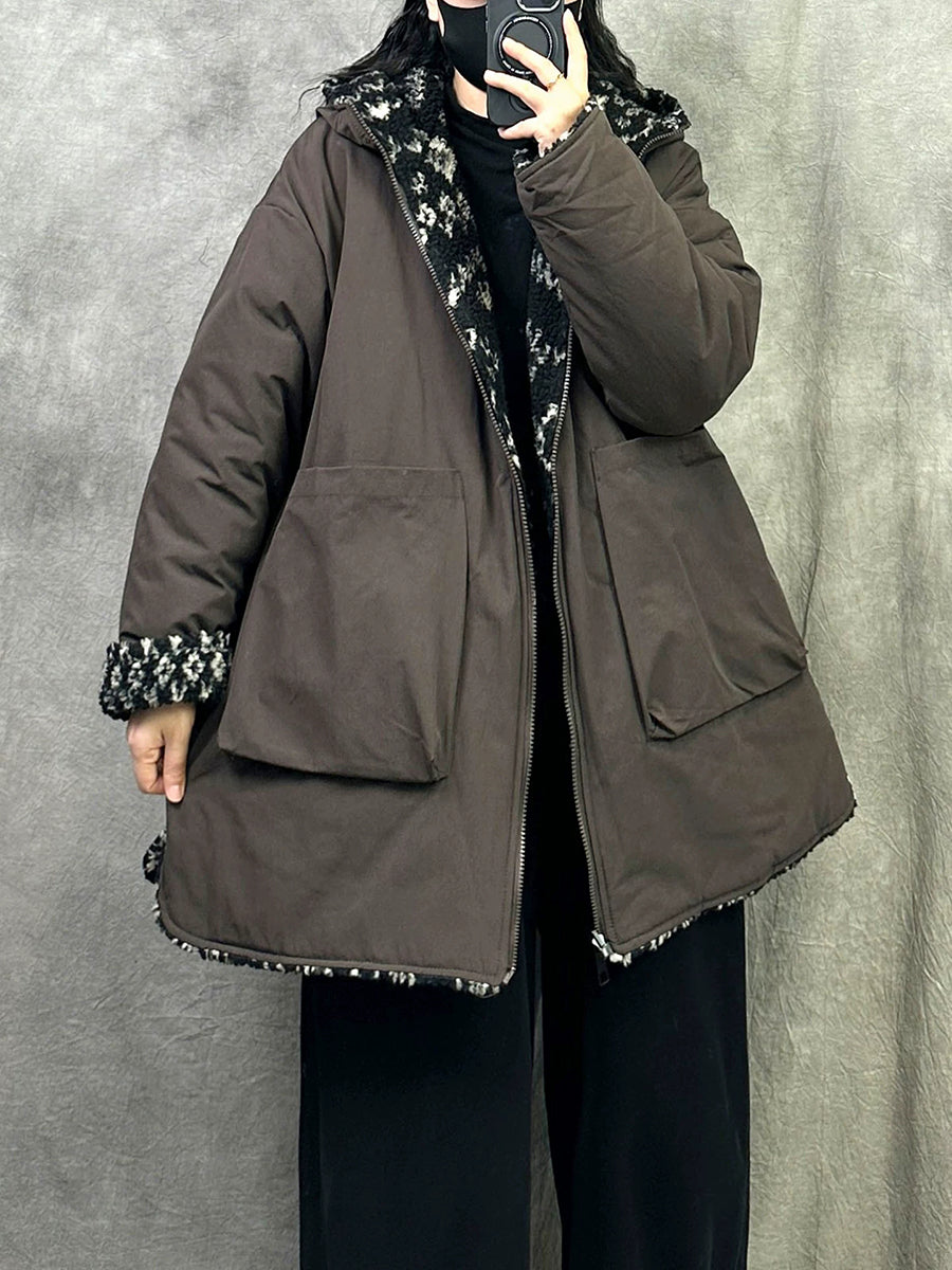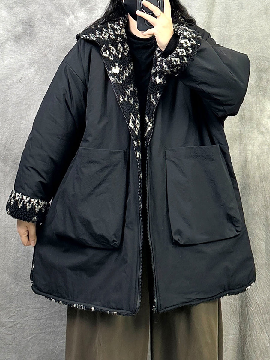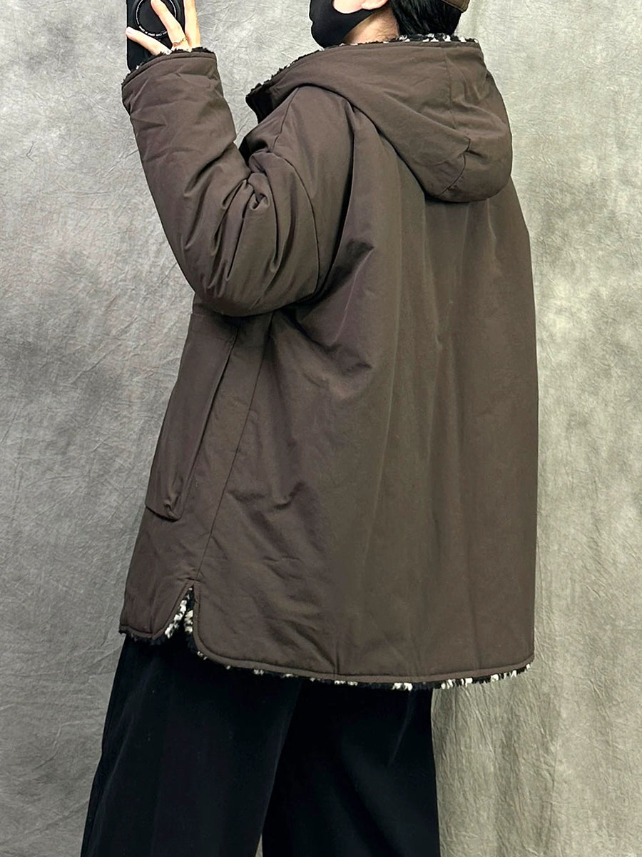 Women Winter Casual Fleece Both-side Wearing Hooded Coat
