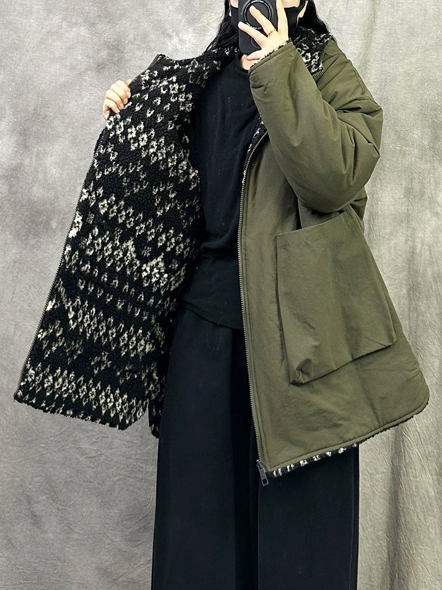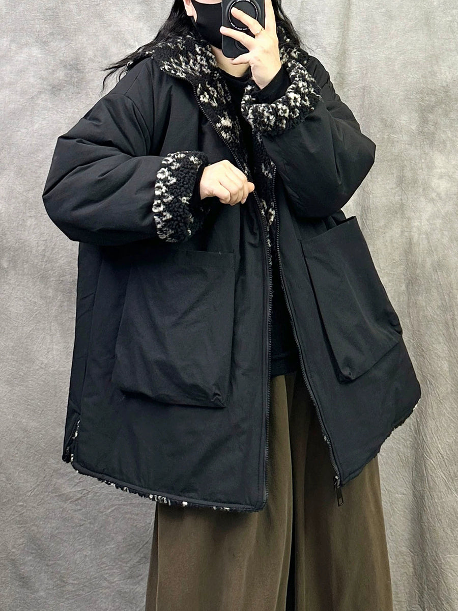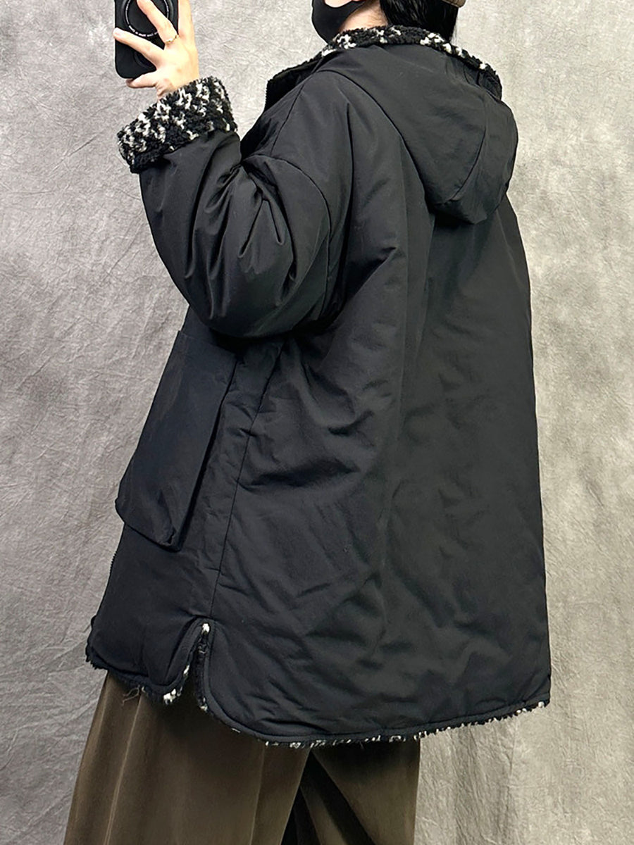 Women Winter Casual Fleece Both-side Wearing Hooded Coat