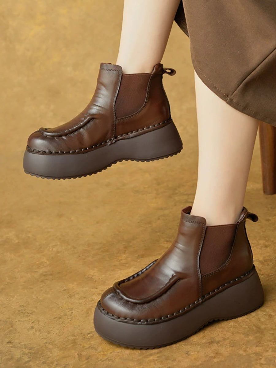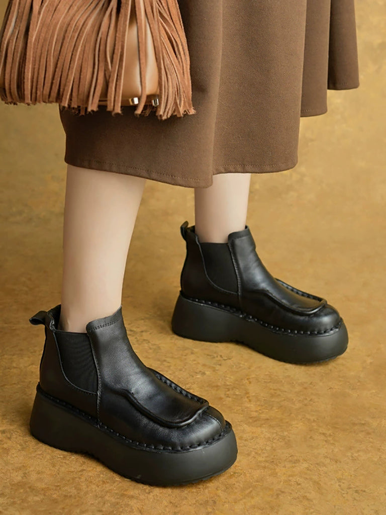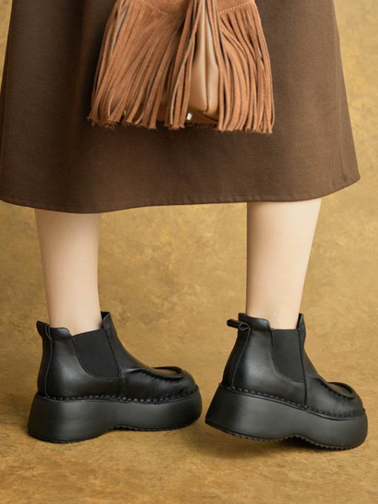 Women Winter Casual Genuine Leather Spliced Platform Boots
