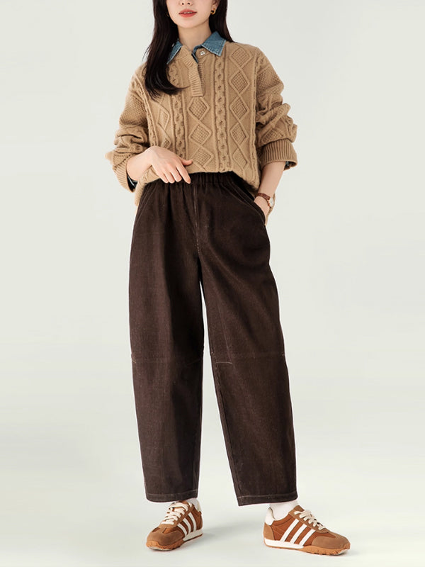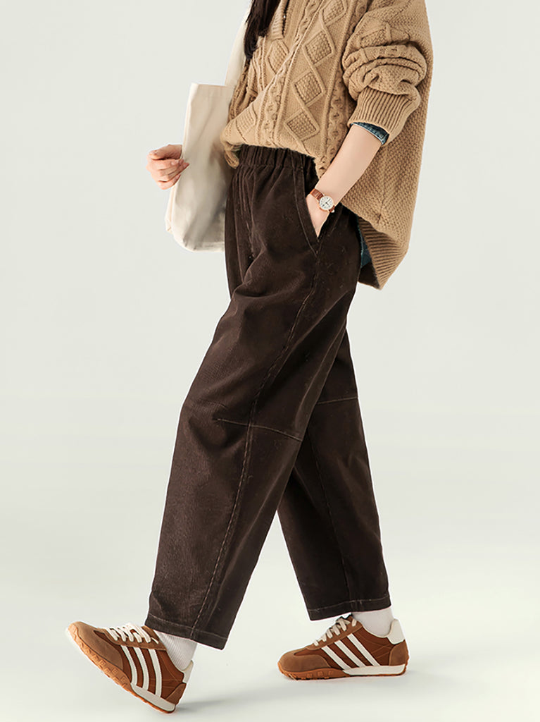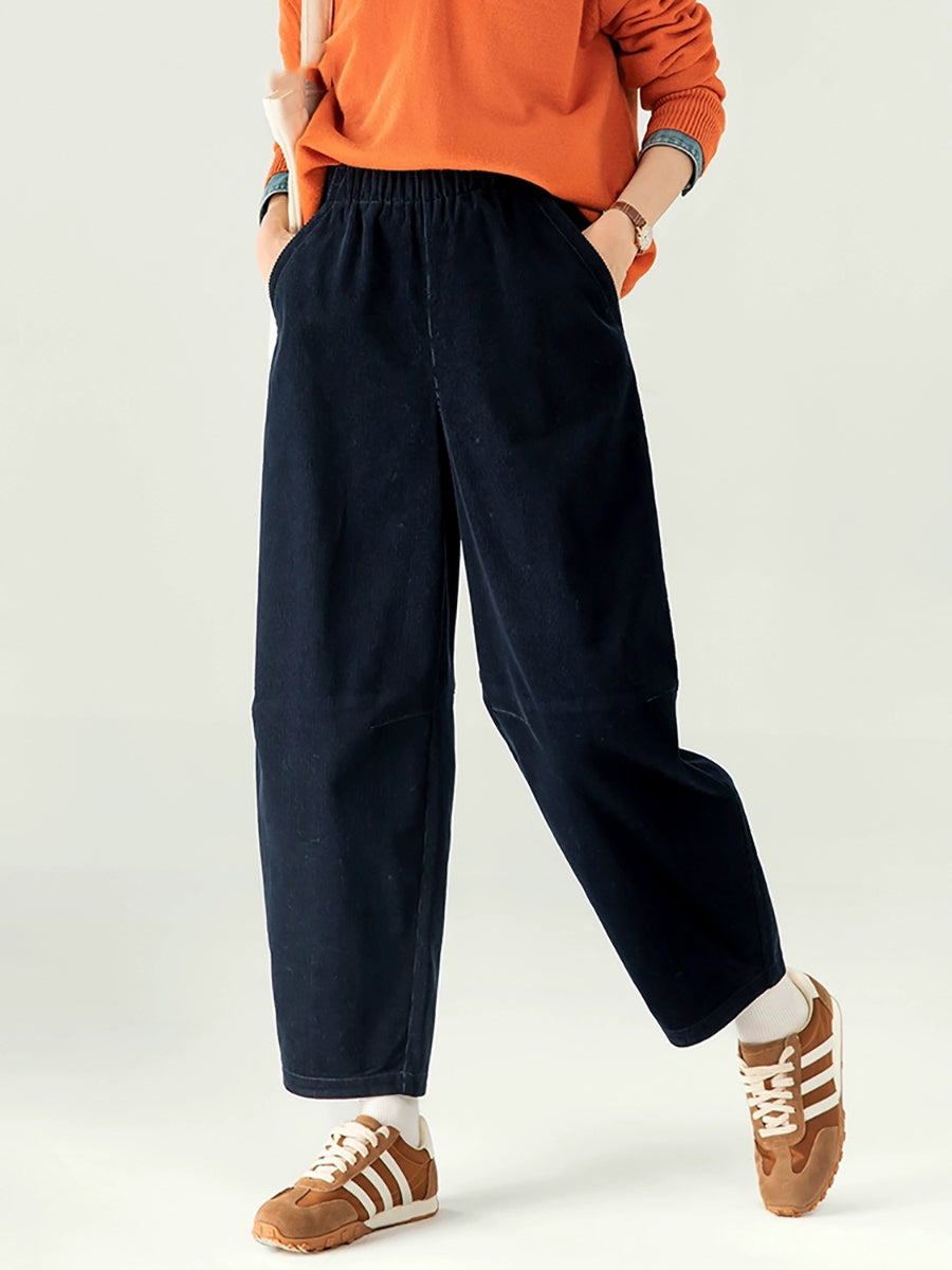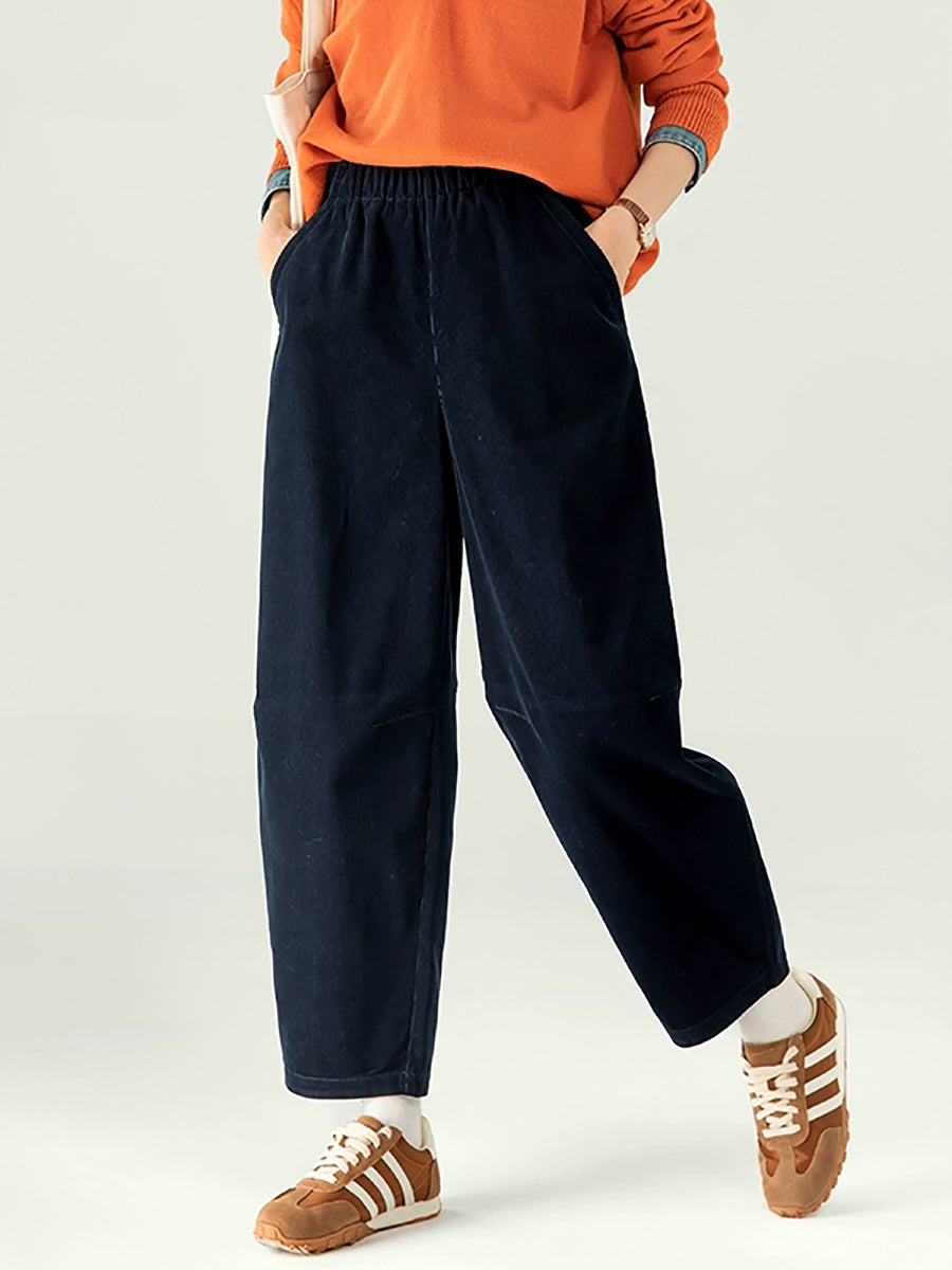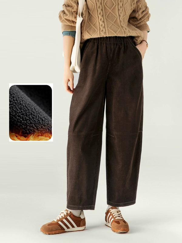 Women Winter Casual Pure Color Fleece-lined Harem Pants