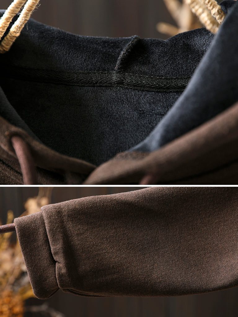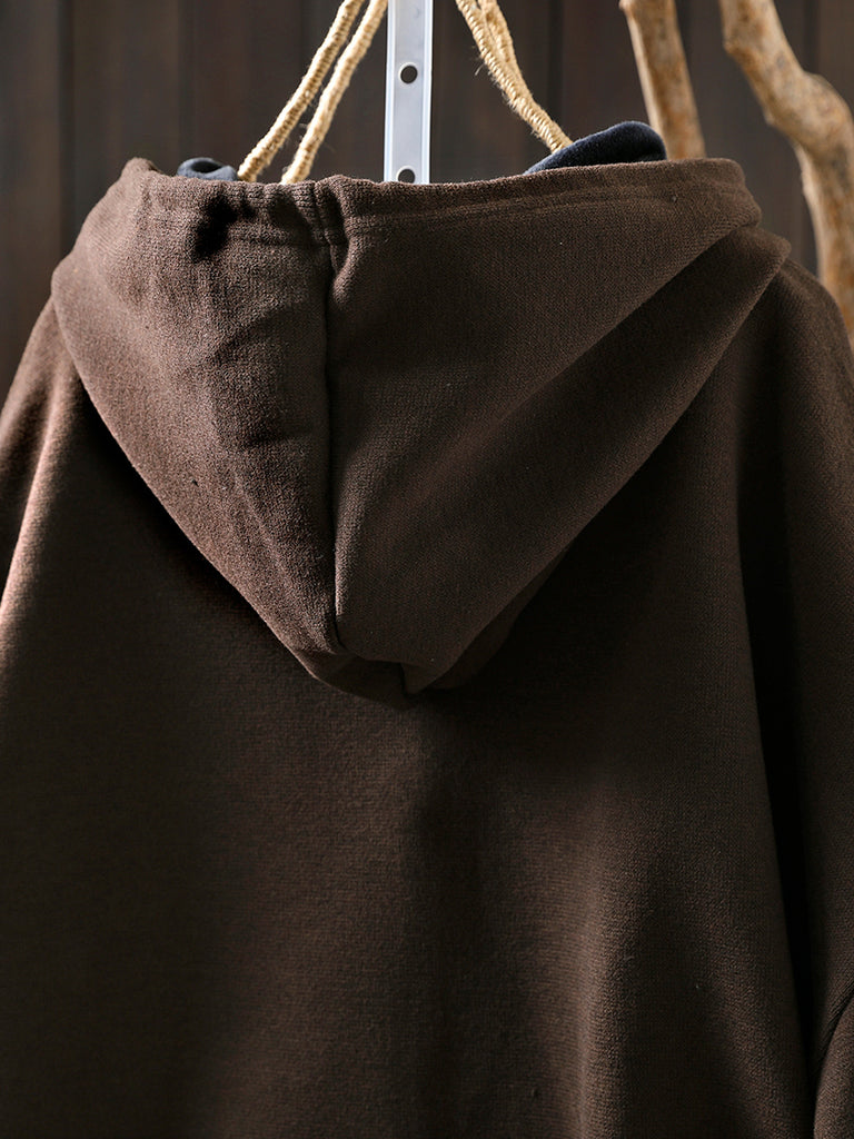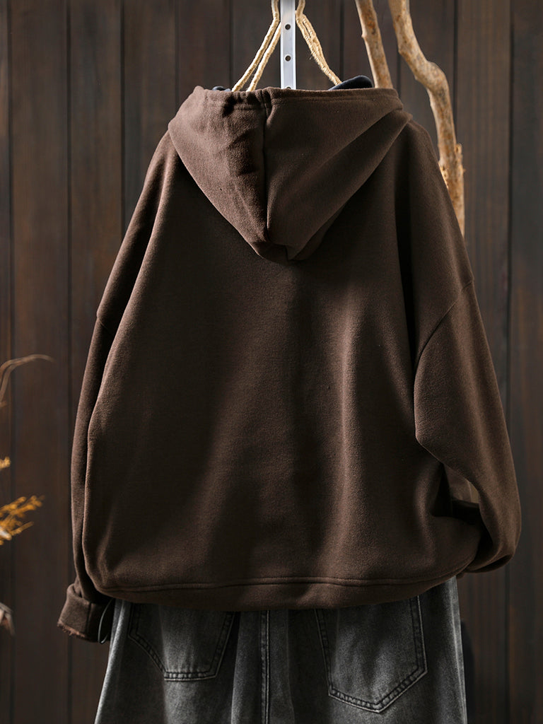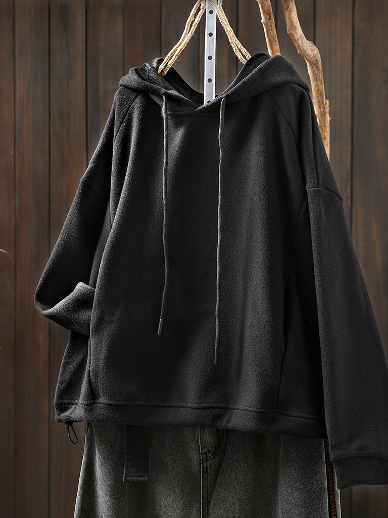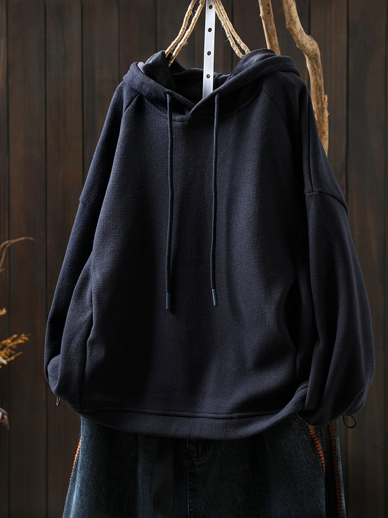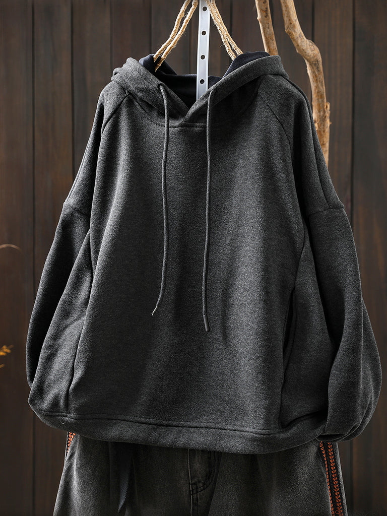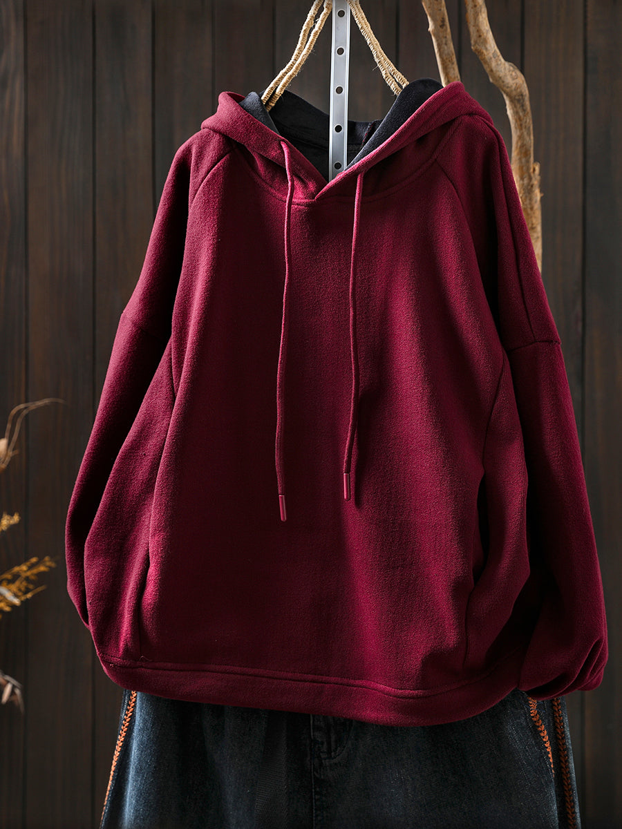 Women Winter Casual Pure Color Fleece-lined Hoodie