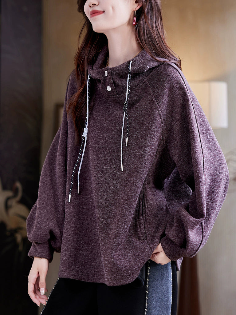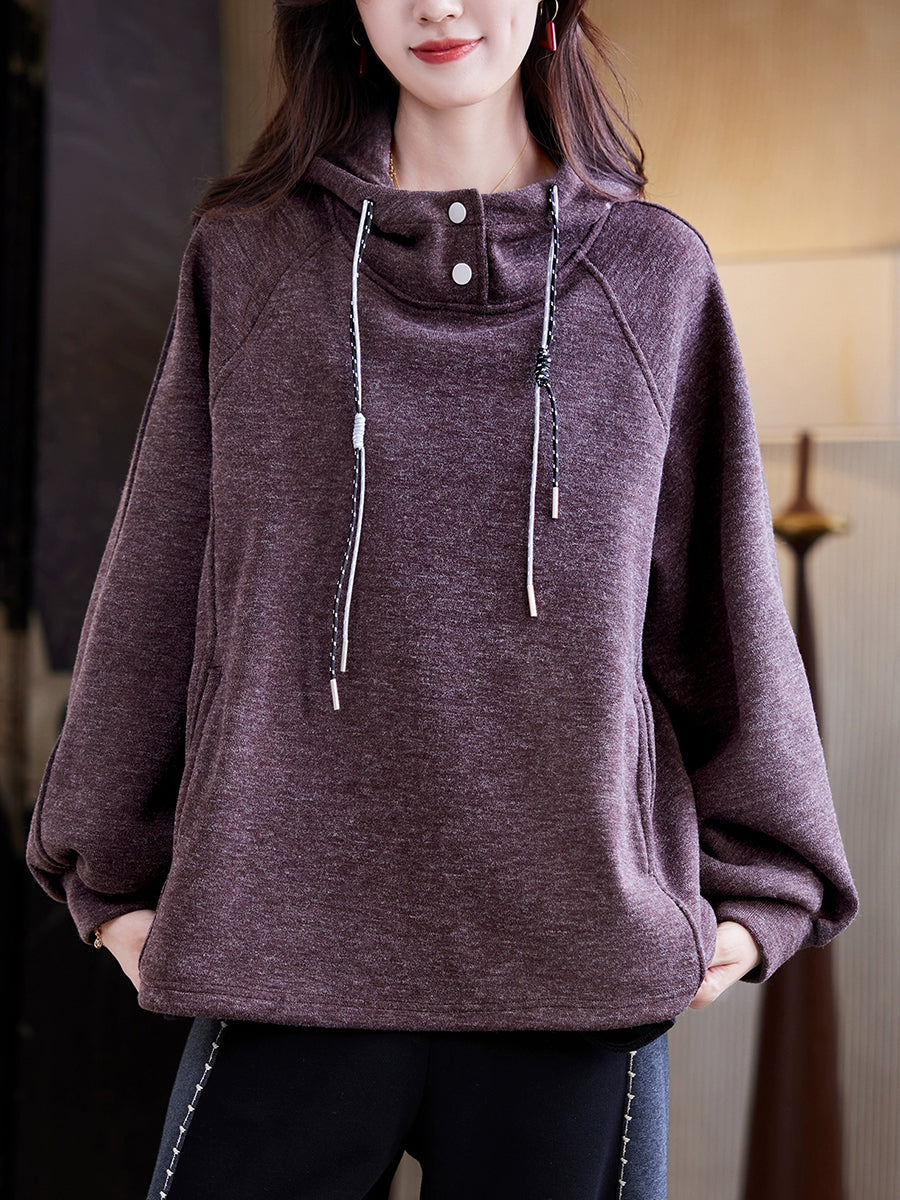 Women Winter Casual Pure Color Fleece-lined Hoodie