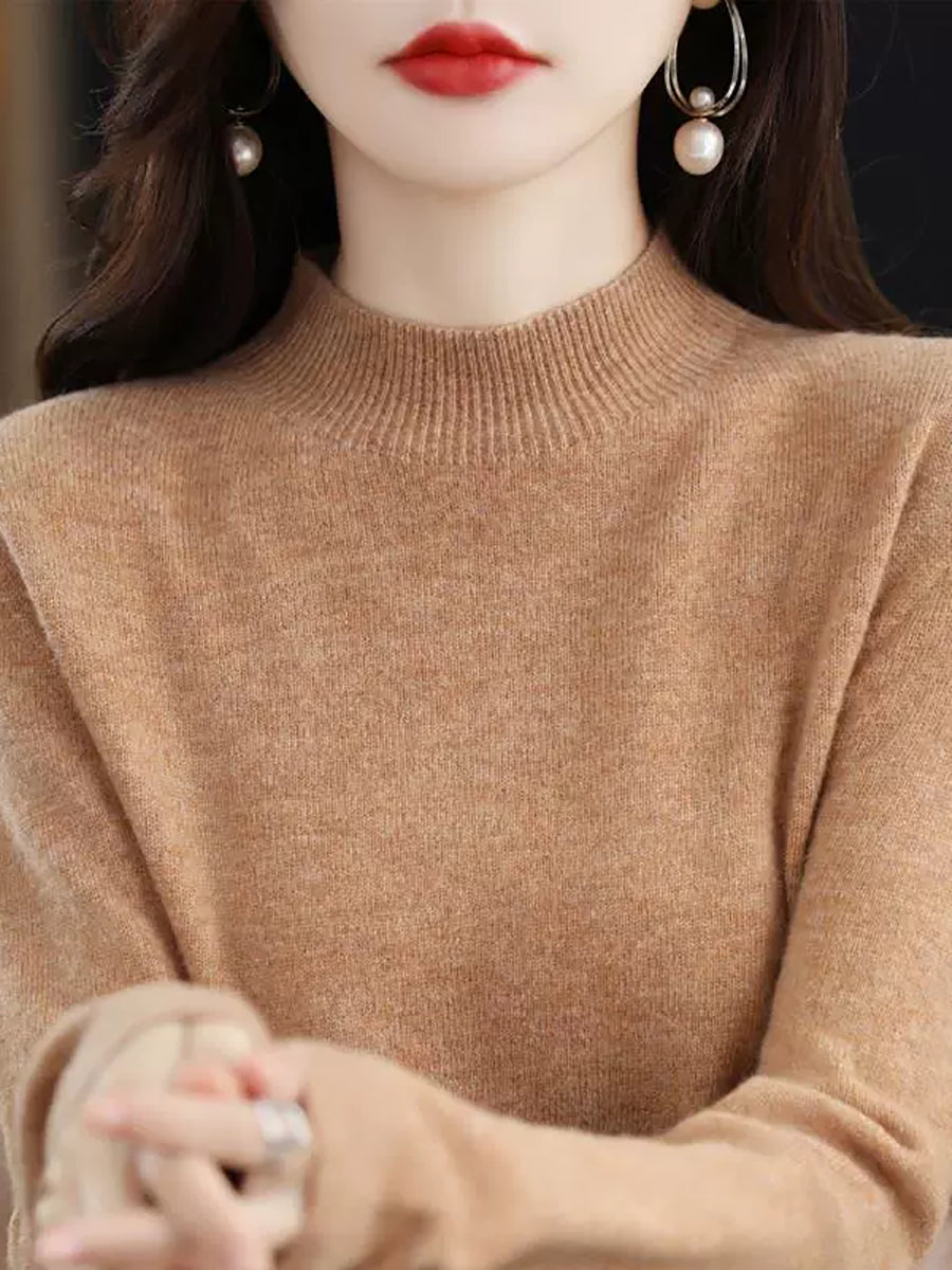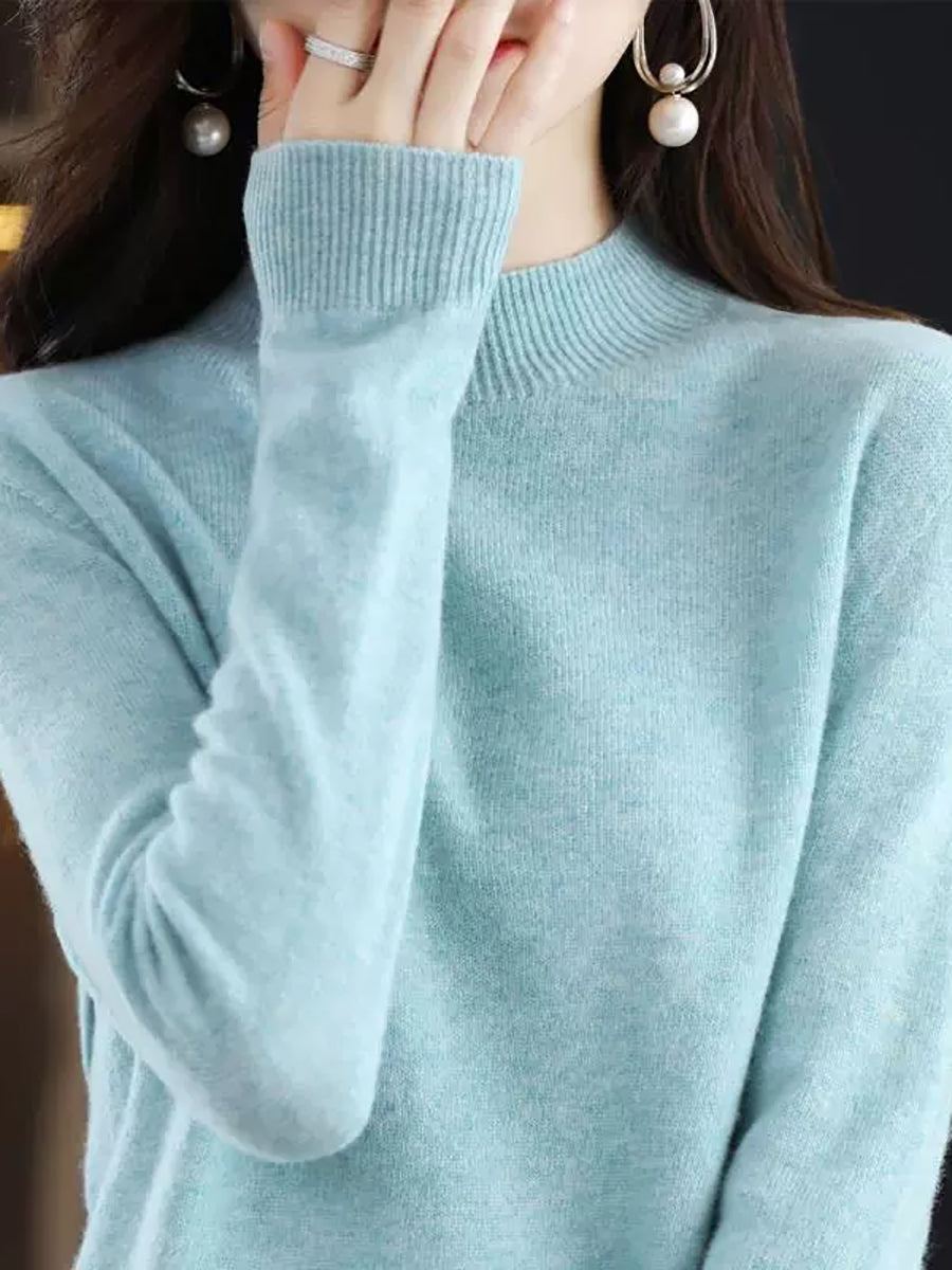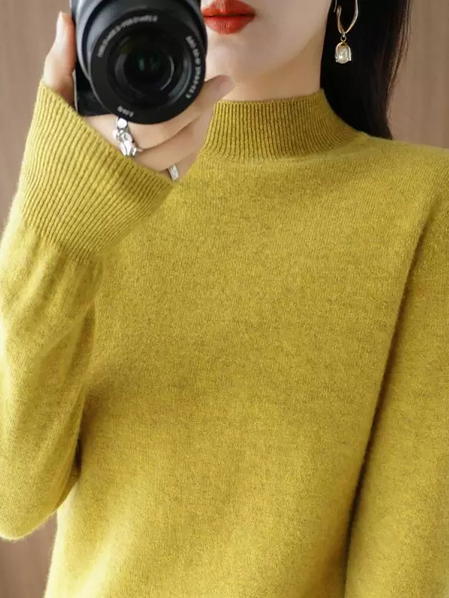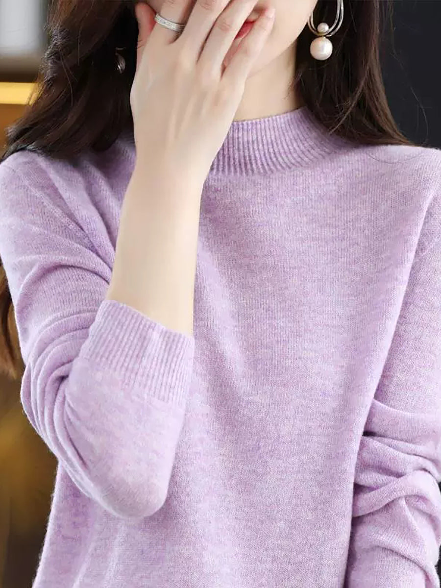 Women Winter Casual Pure Color Half-turtleneck Knitted Sweater