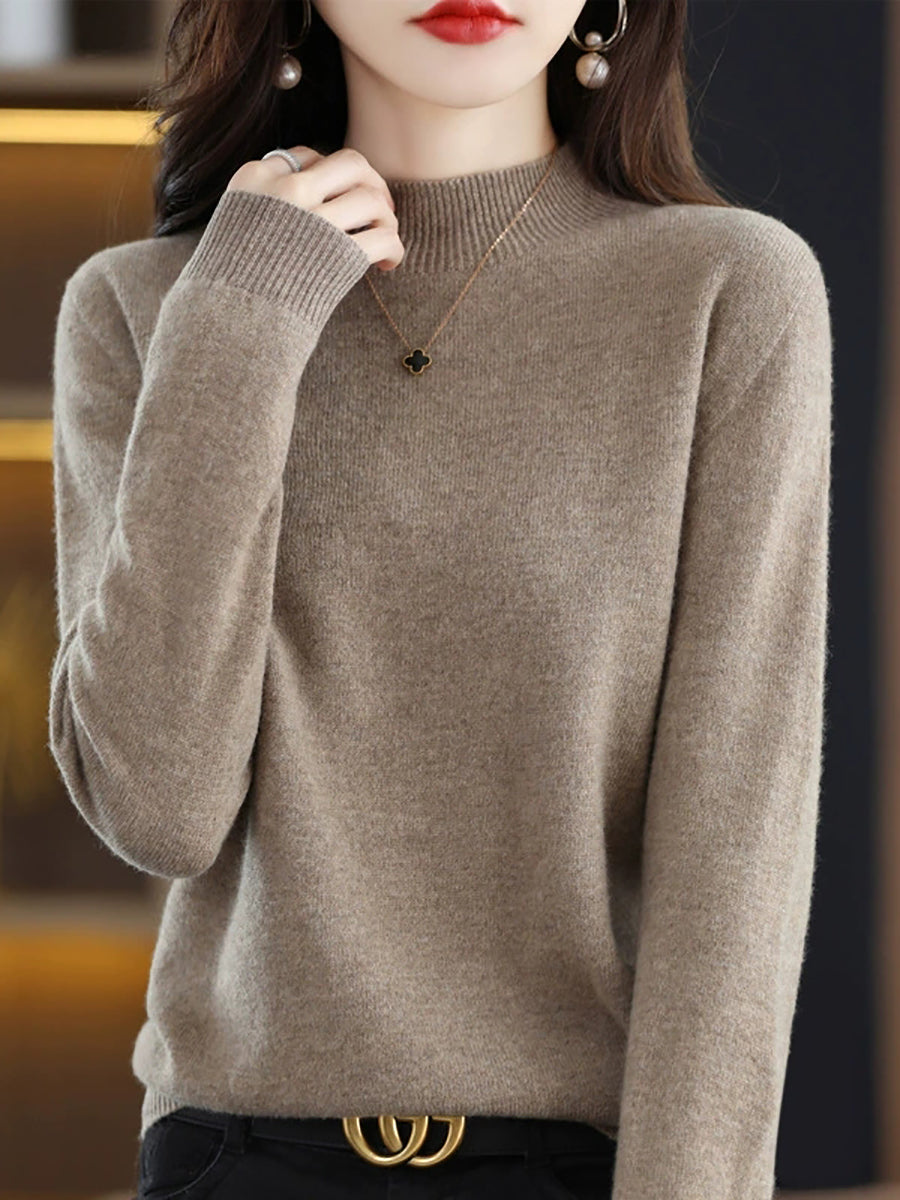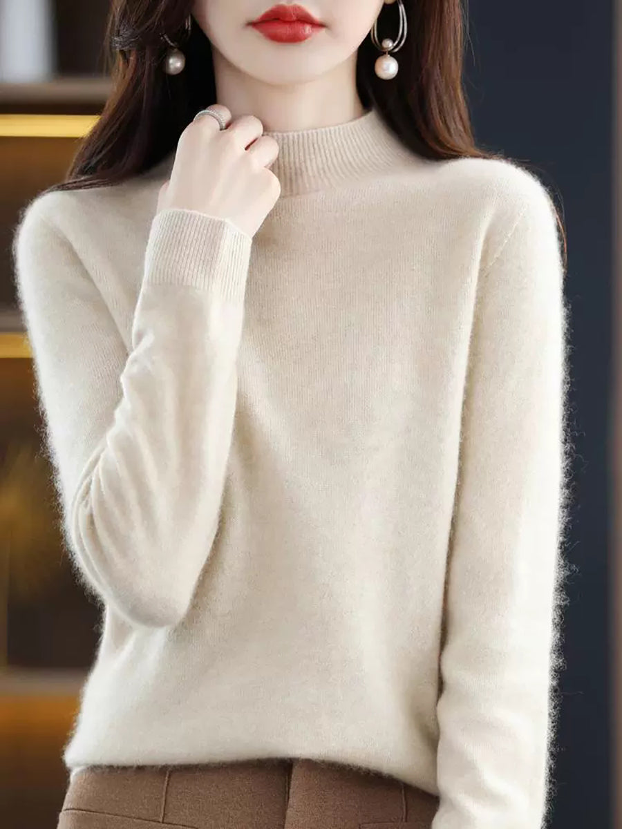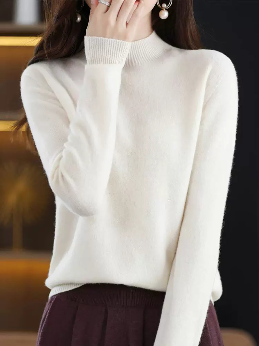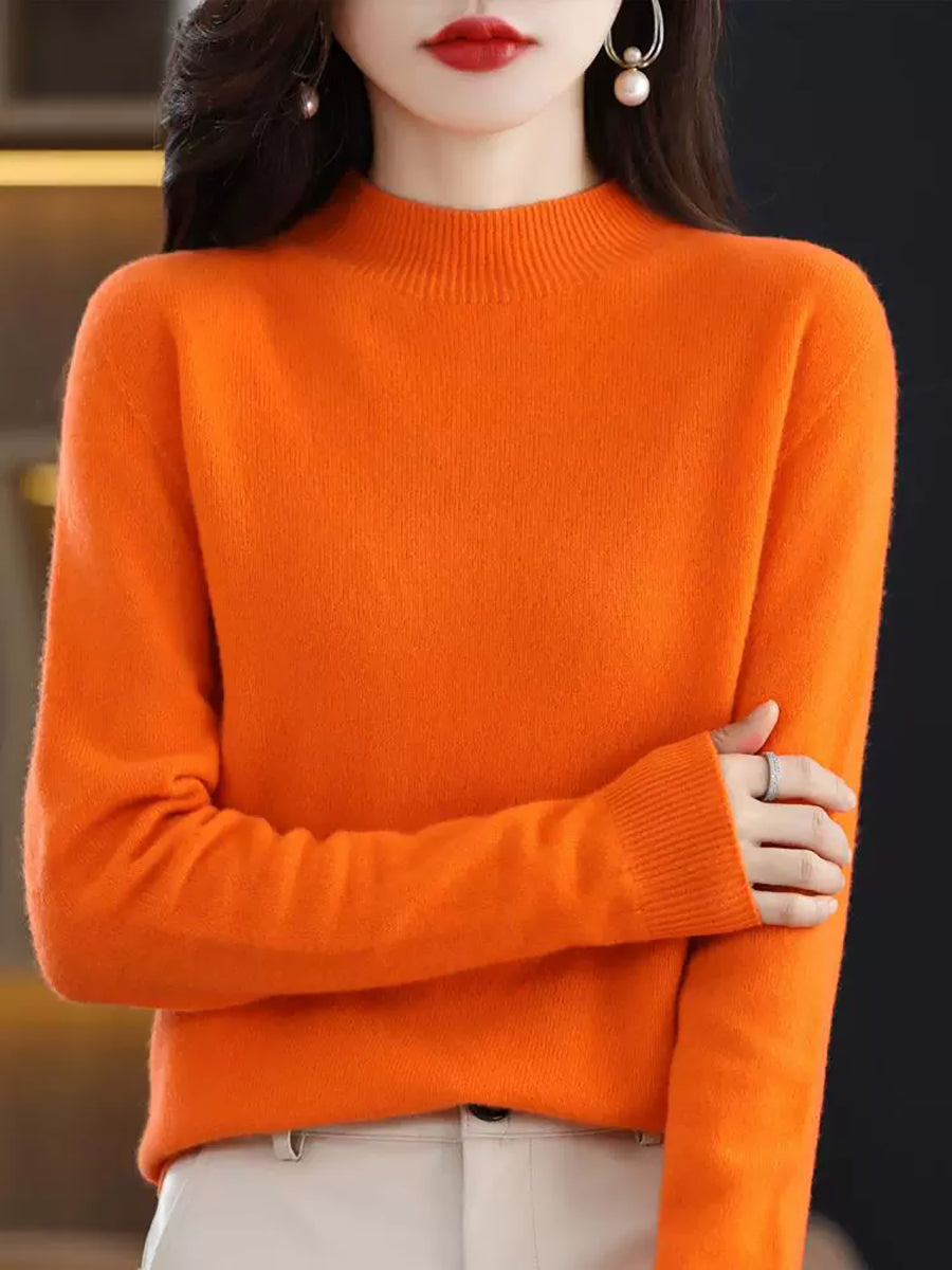 Women Winter Casual Pure Color Half-turtleneck Knitted Sweater
