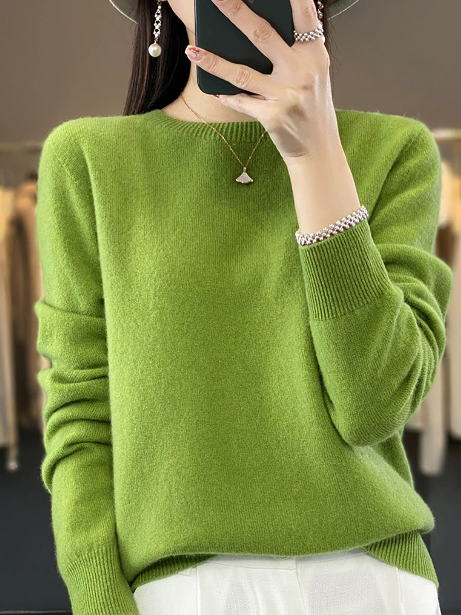 Women Winter Casual Pure Color O-Neck Knitted Sweater