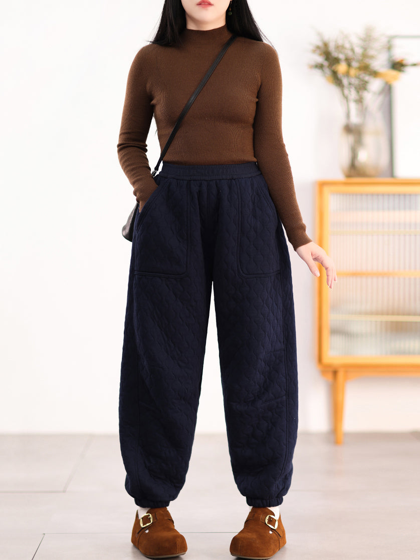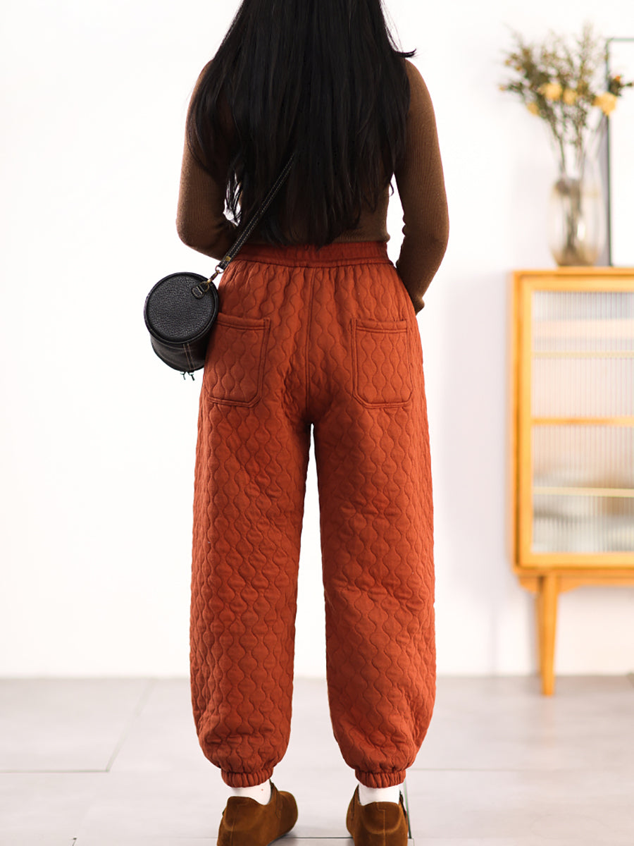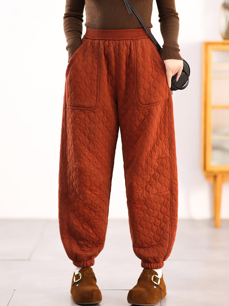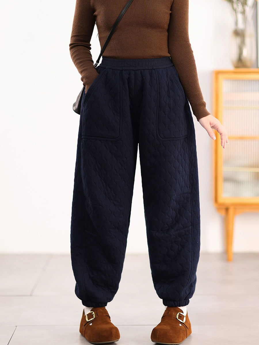 Women Winter Casual Pure Color Padded Harem Pants