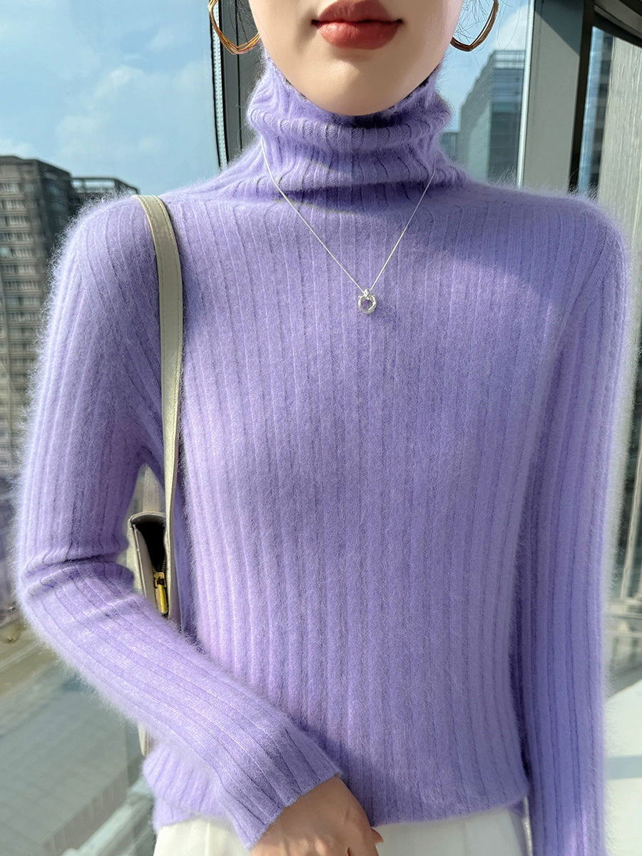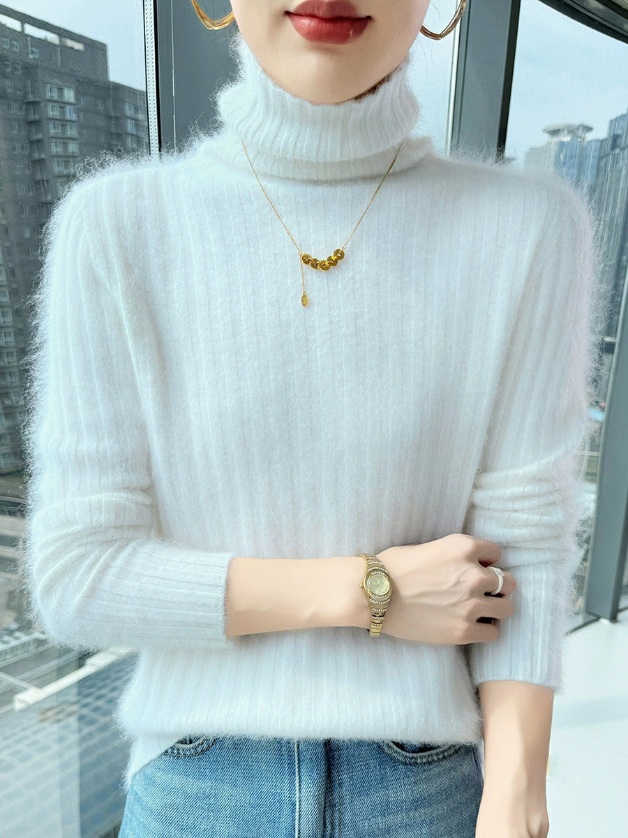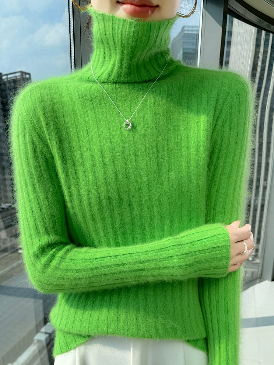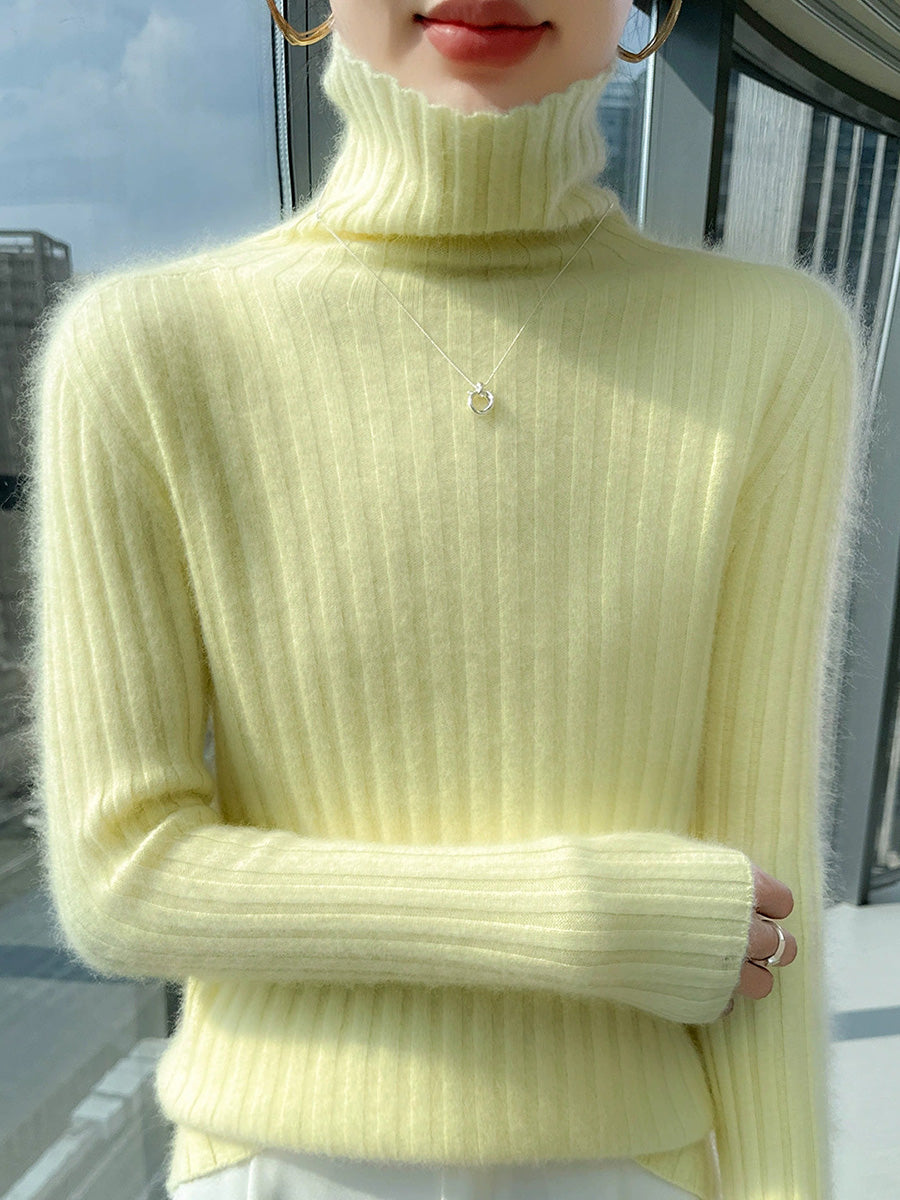 Women Winter Casual Turtleneck Pure Color Knitted Sweater
