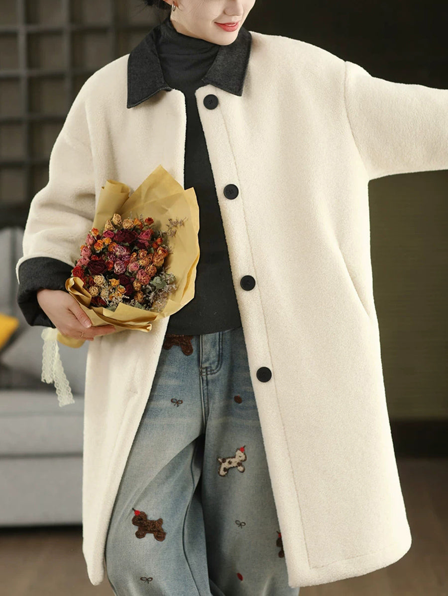 Women Winter Colorblock Turn-down Collar Fleece Coat
