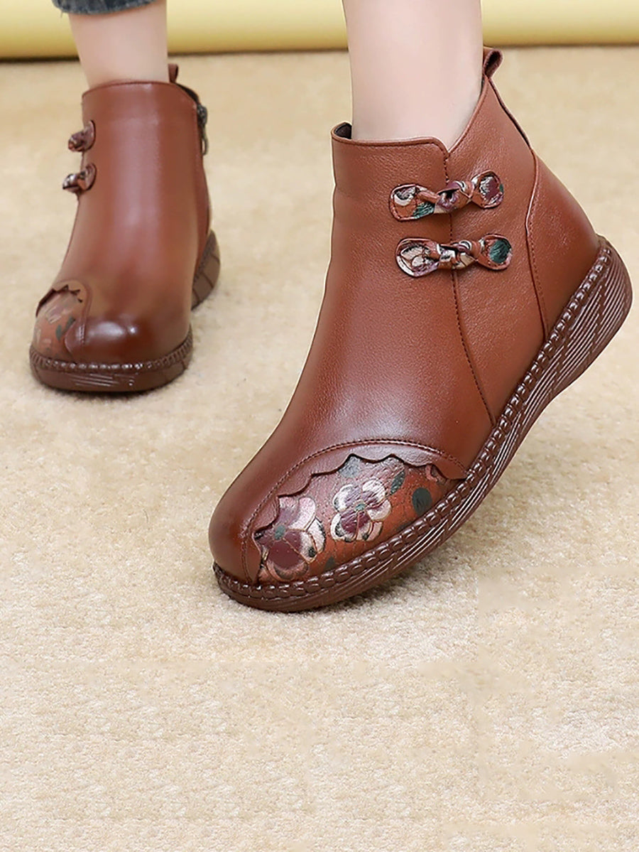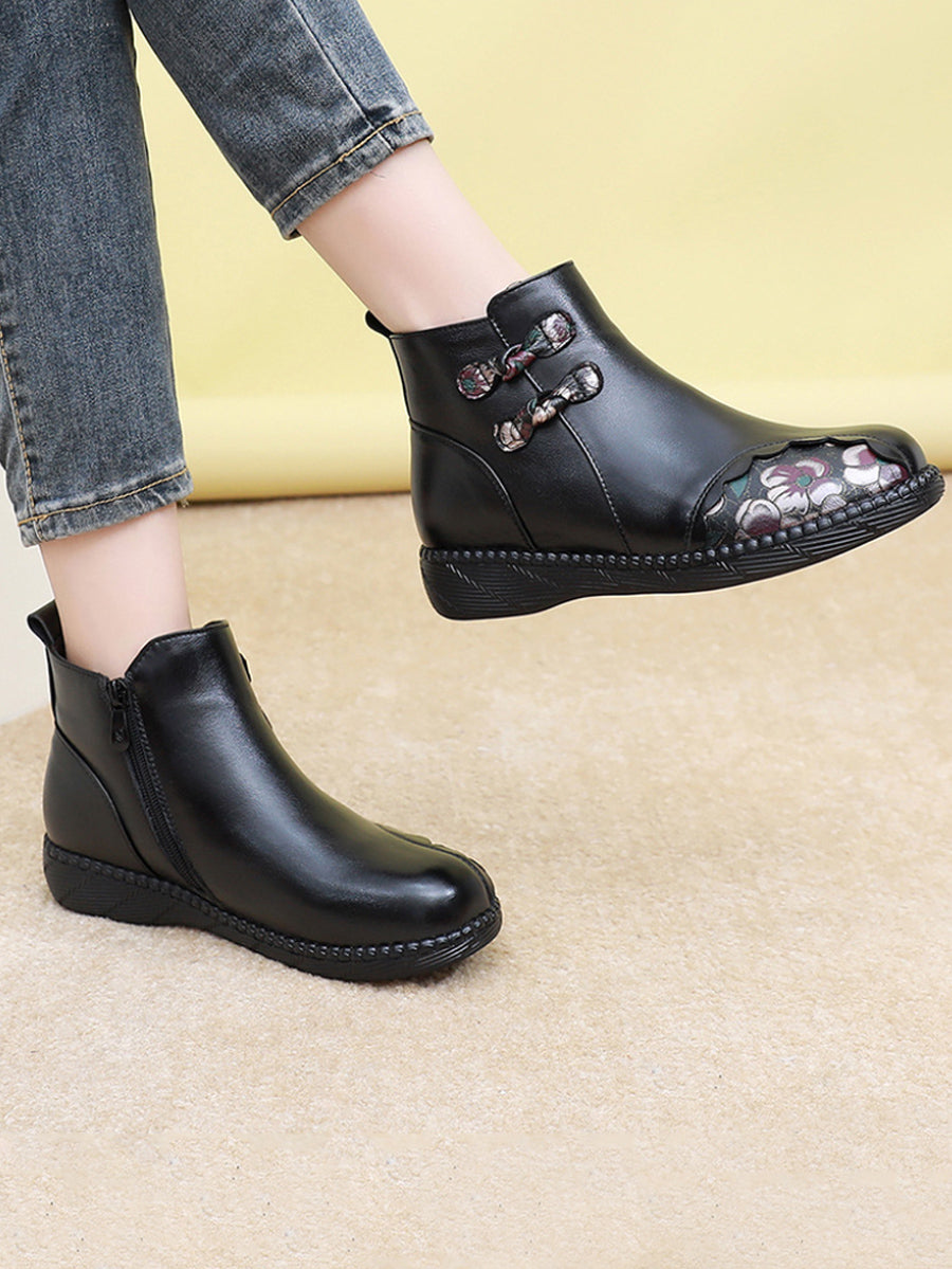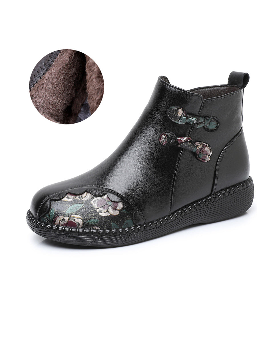 Women Winter Ethnic Flower Spliced Ankle Boots