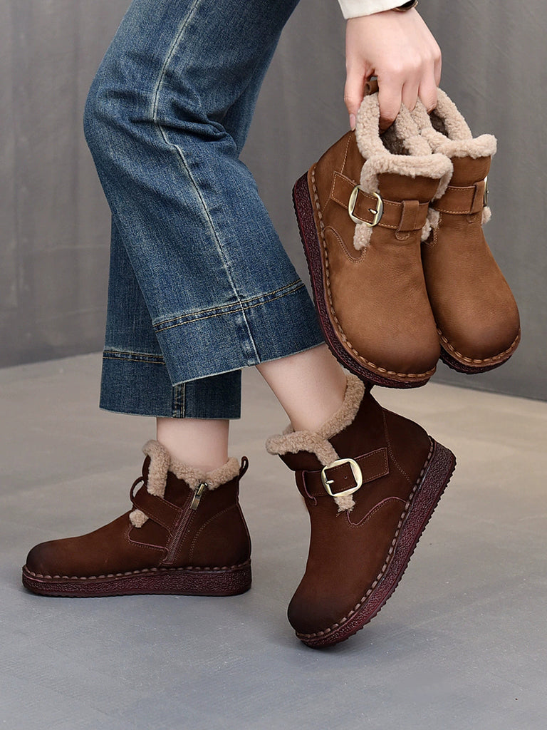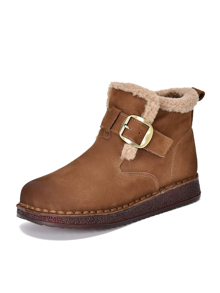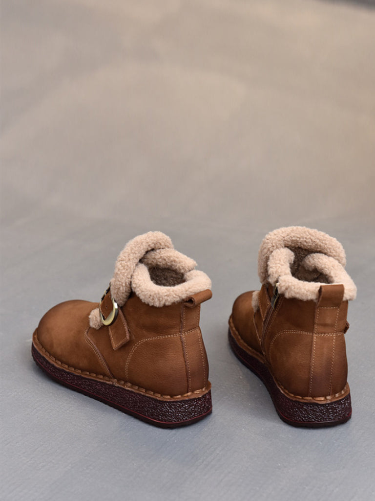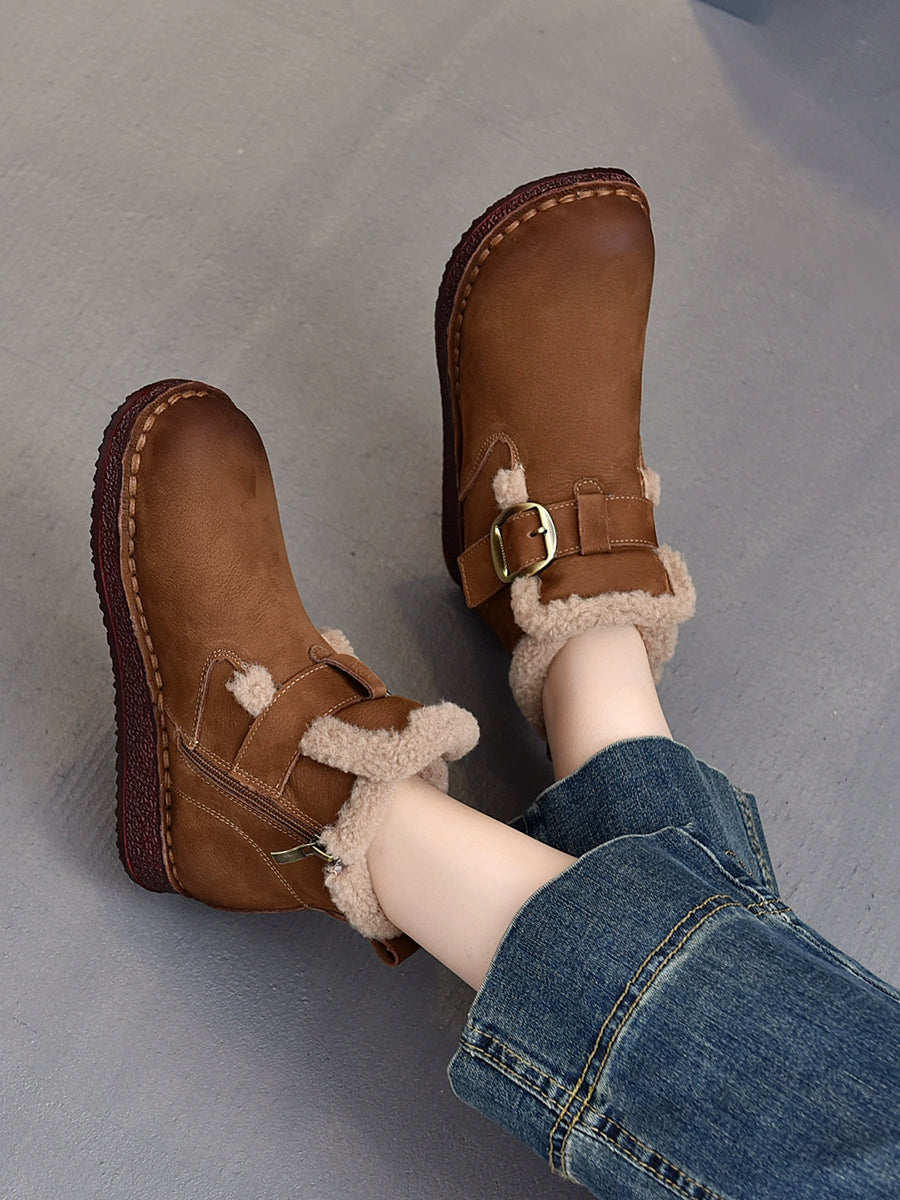 Women Winter Genuine Leather Fleece-lined Ankle Boots