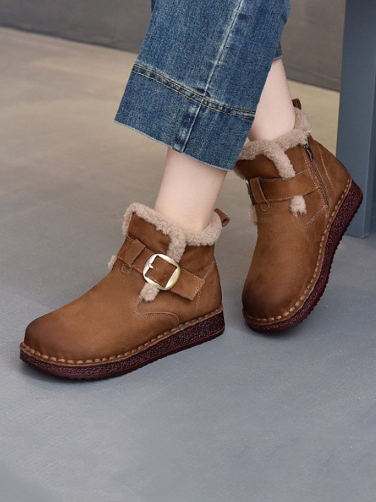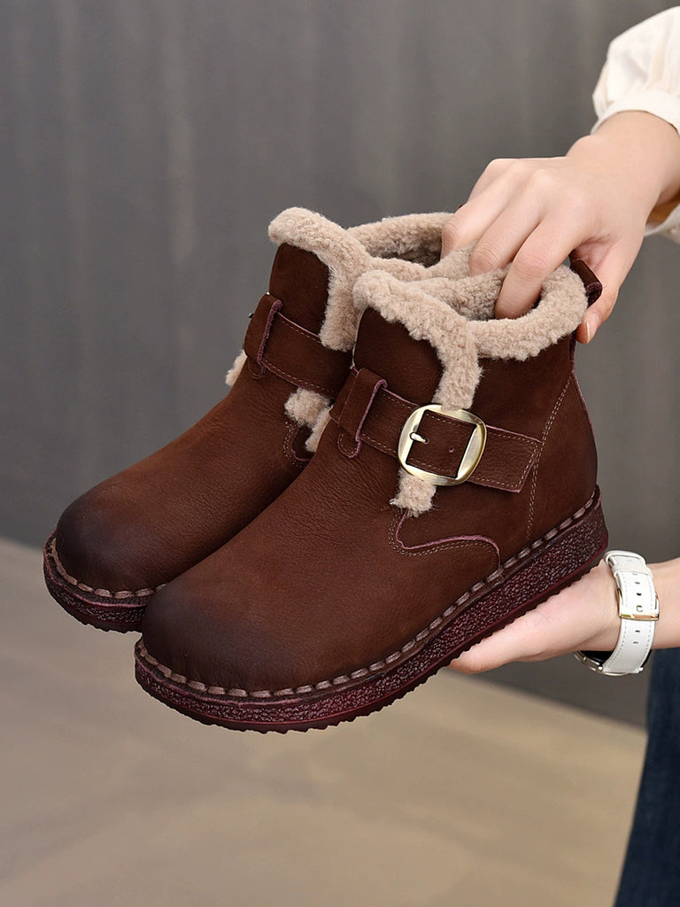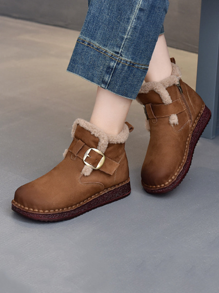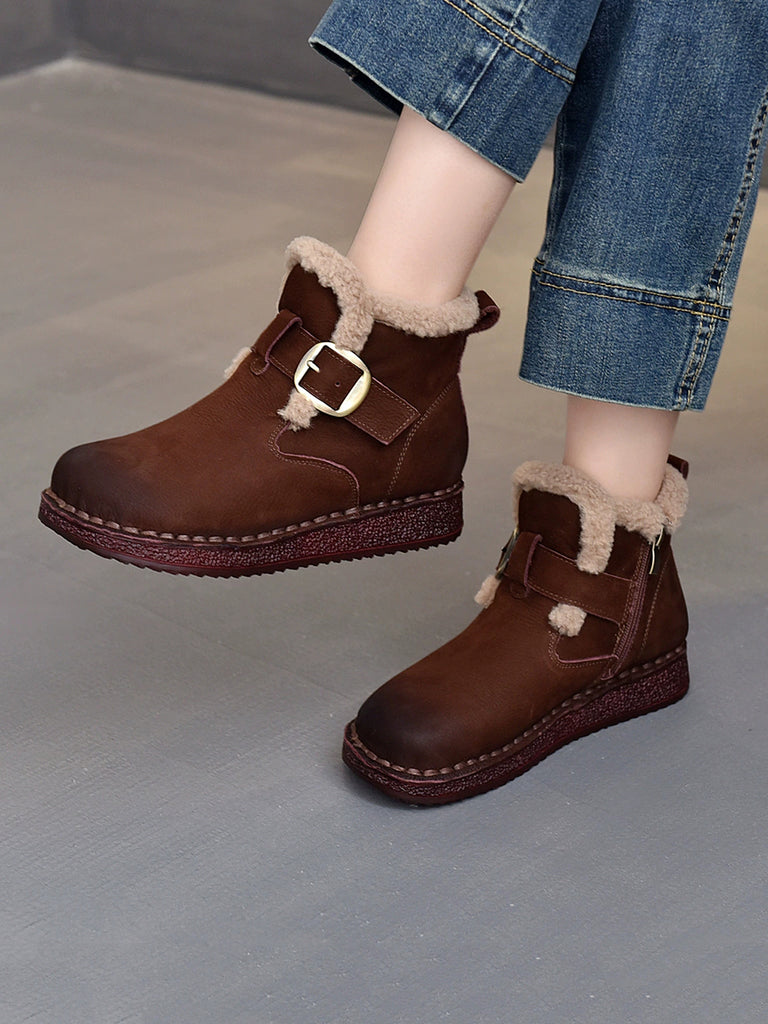 Women Winter Genuine Leather Fleece-lined Ankle Boots