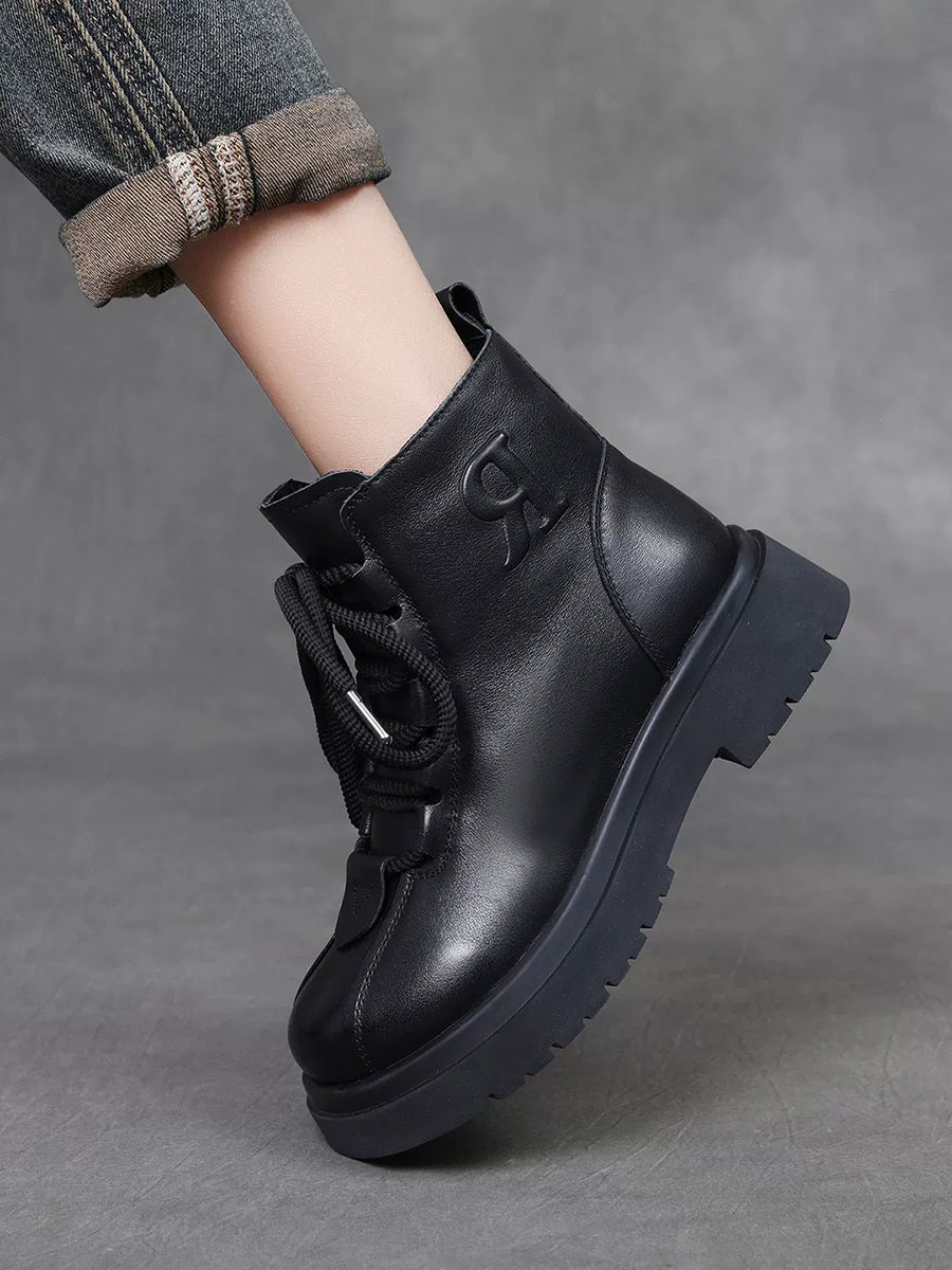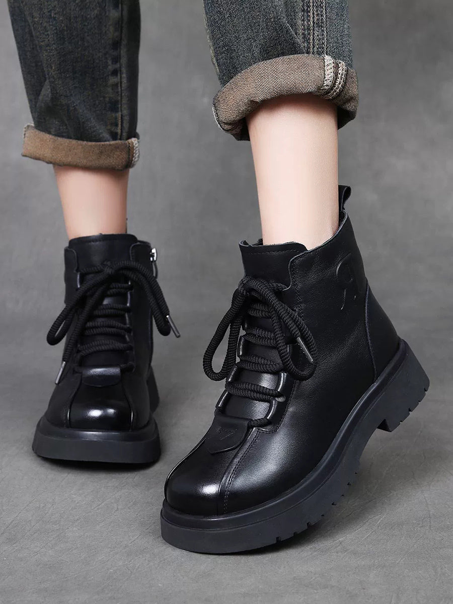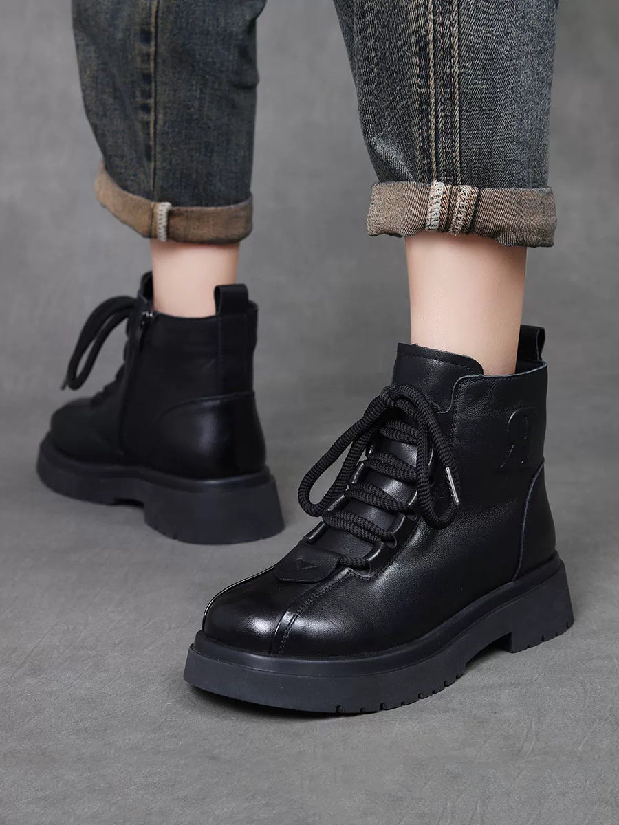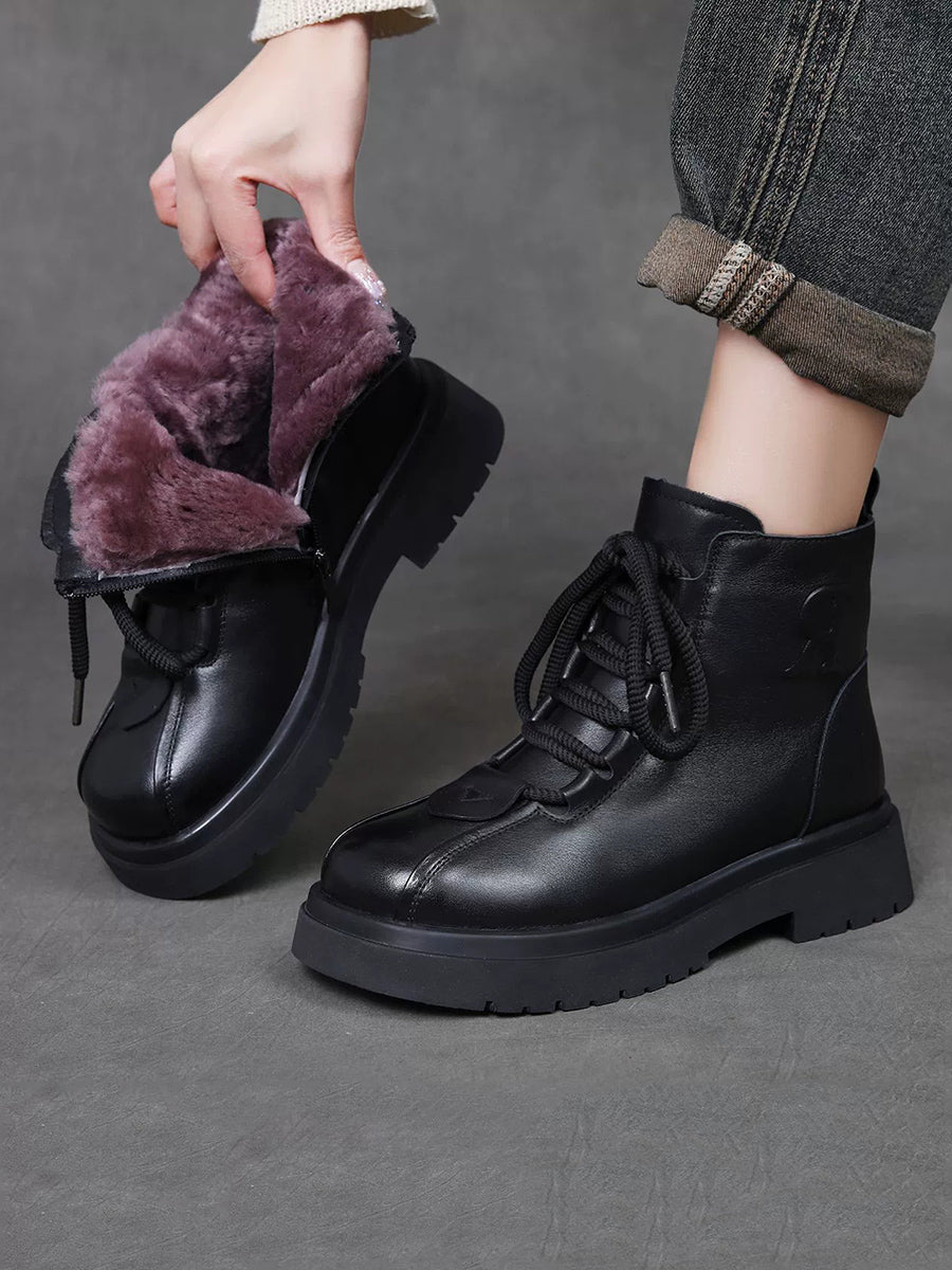 Women Winter Genuine Leather Fleece-lined Ankle Boots