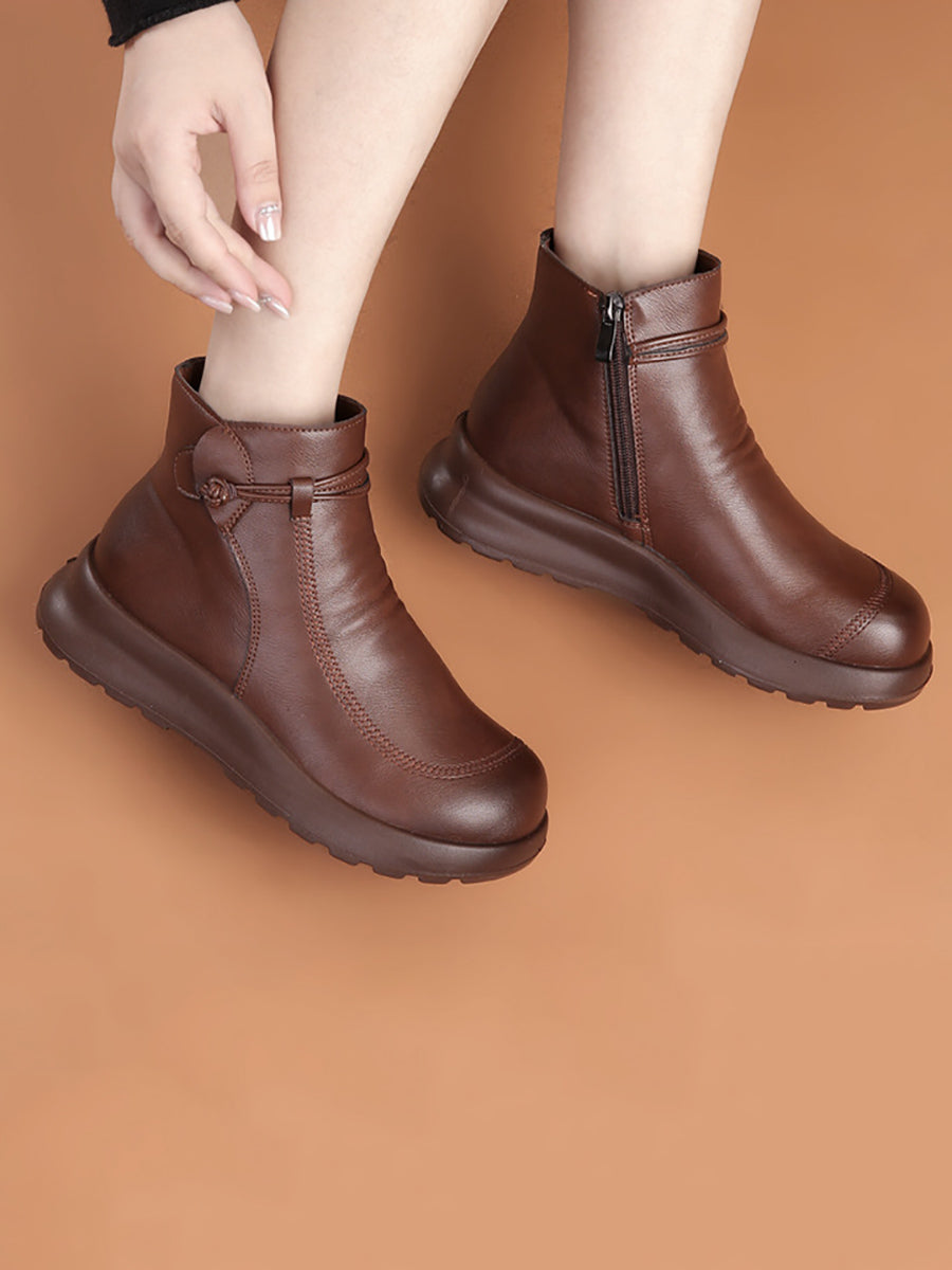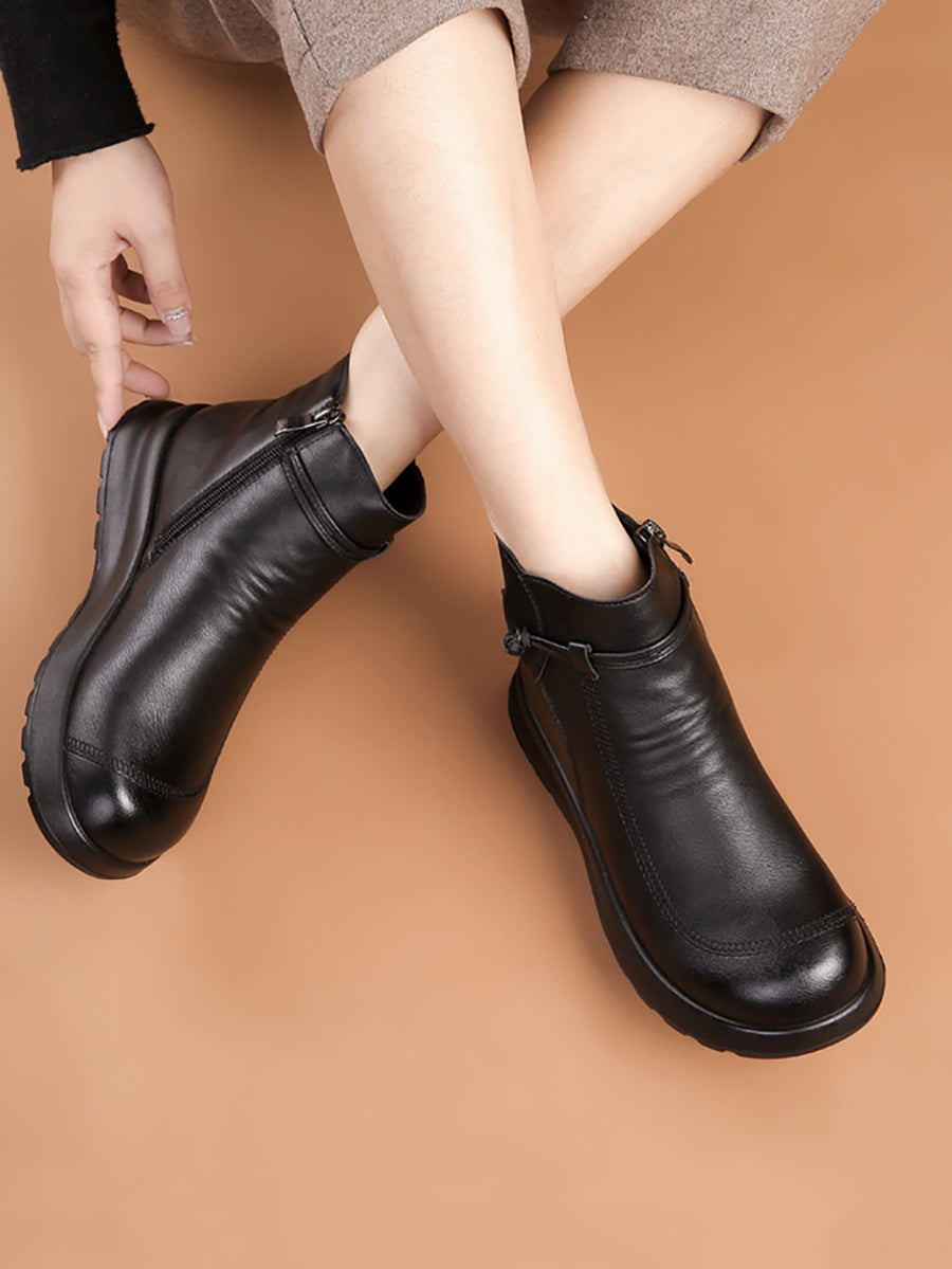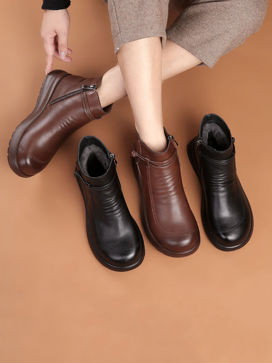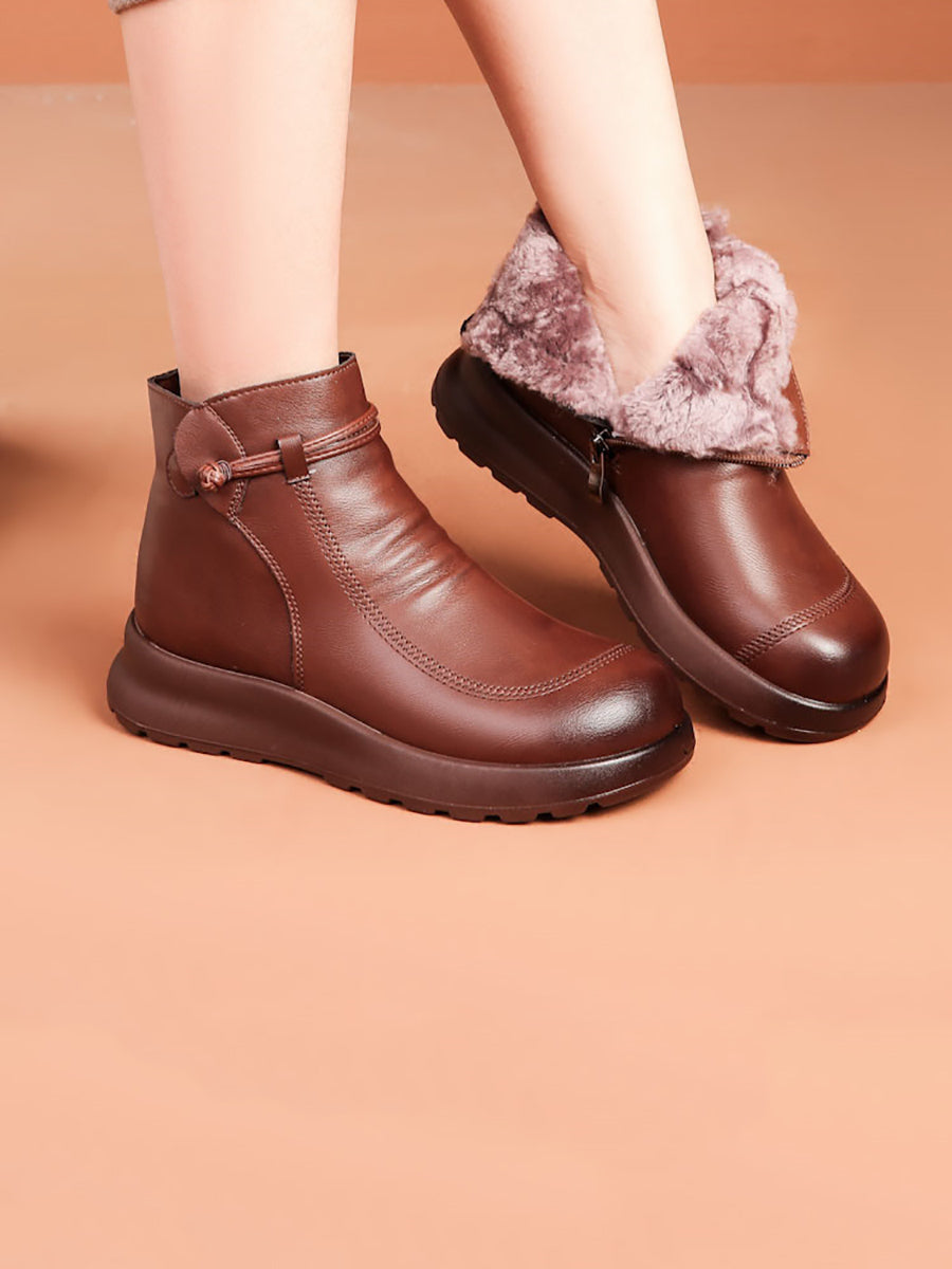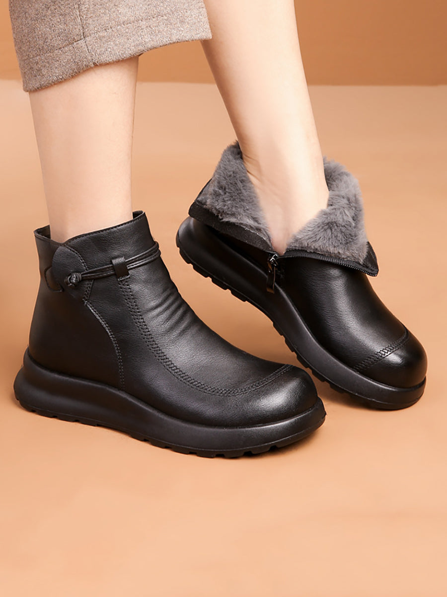 Women Winter Genuine Leather Fleece-lined Ankle Boots