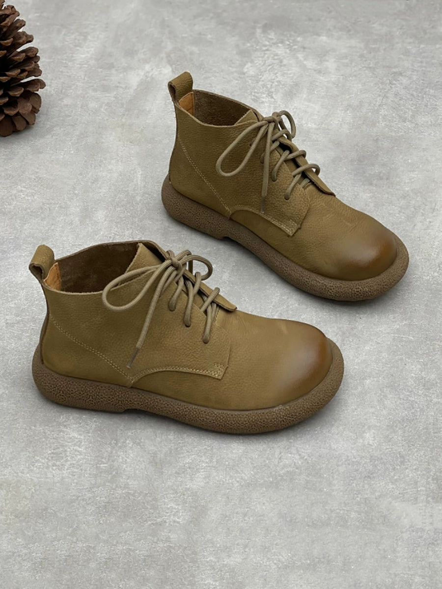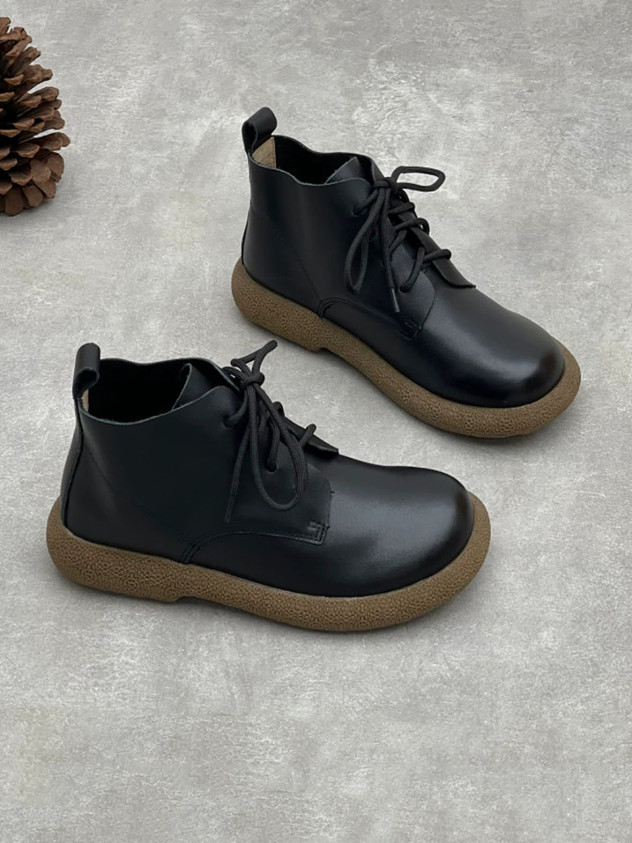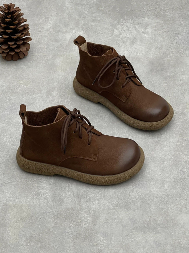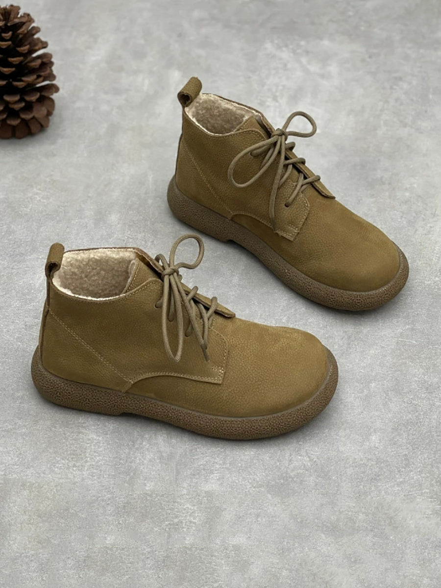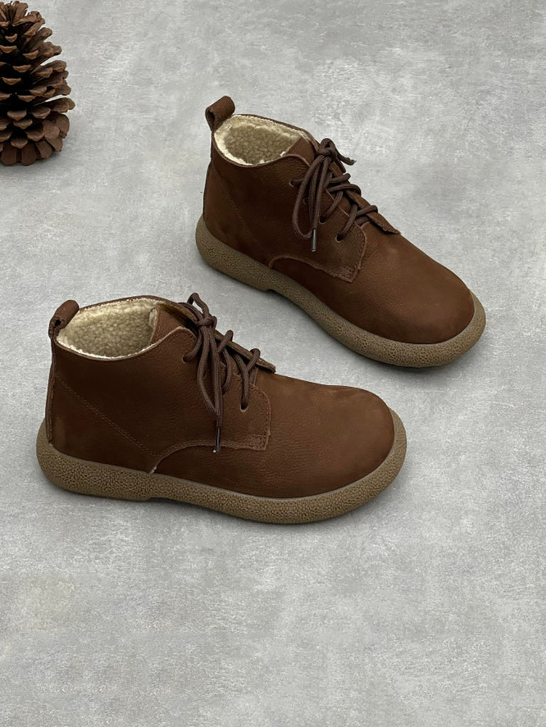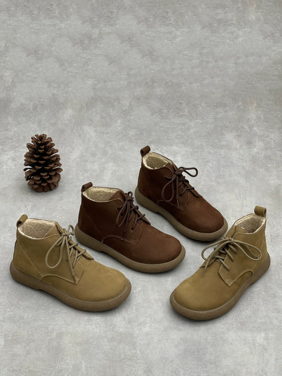 Women Winter Genuine Leather Fleece-lined Ankle Boots
