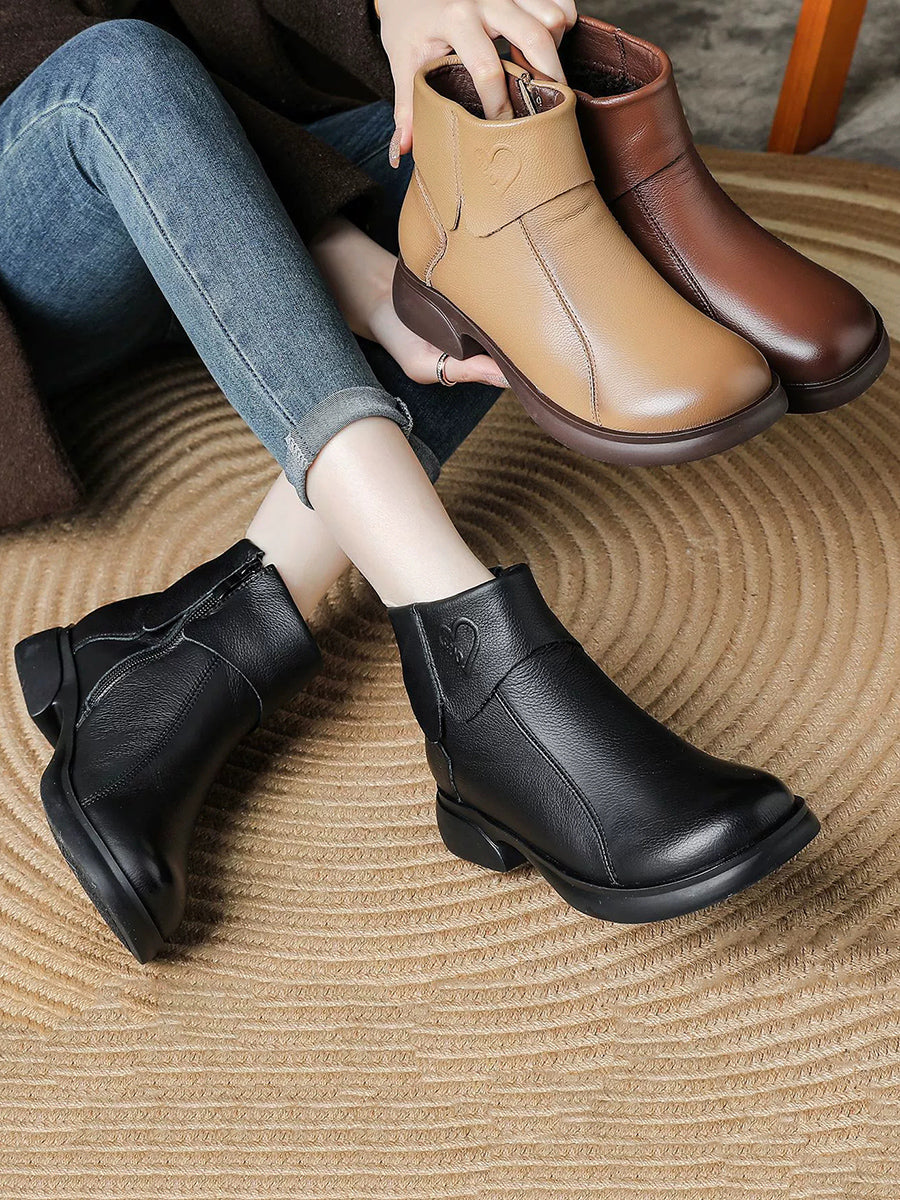Women Winter Genuine Leather Spliced Platform Boots