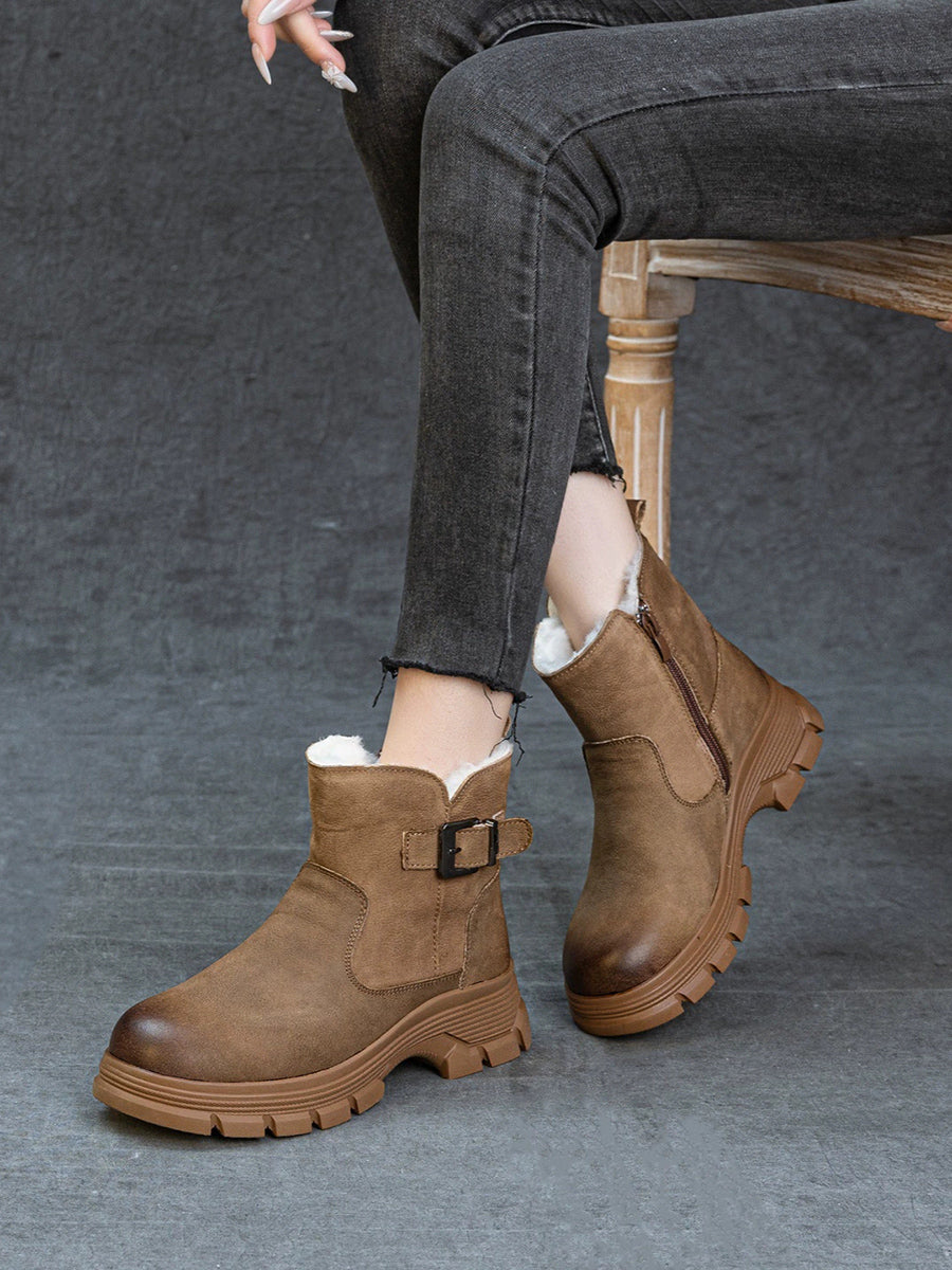 Women Winter Leather Fleece-lined Platform Boots