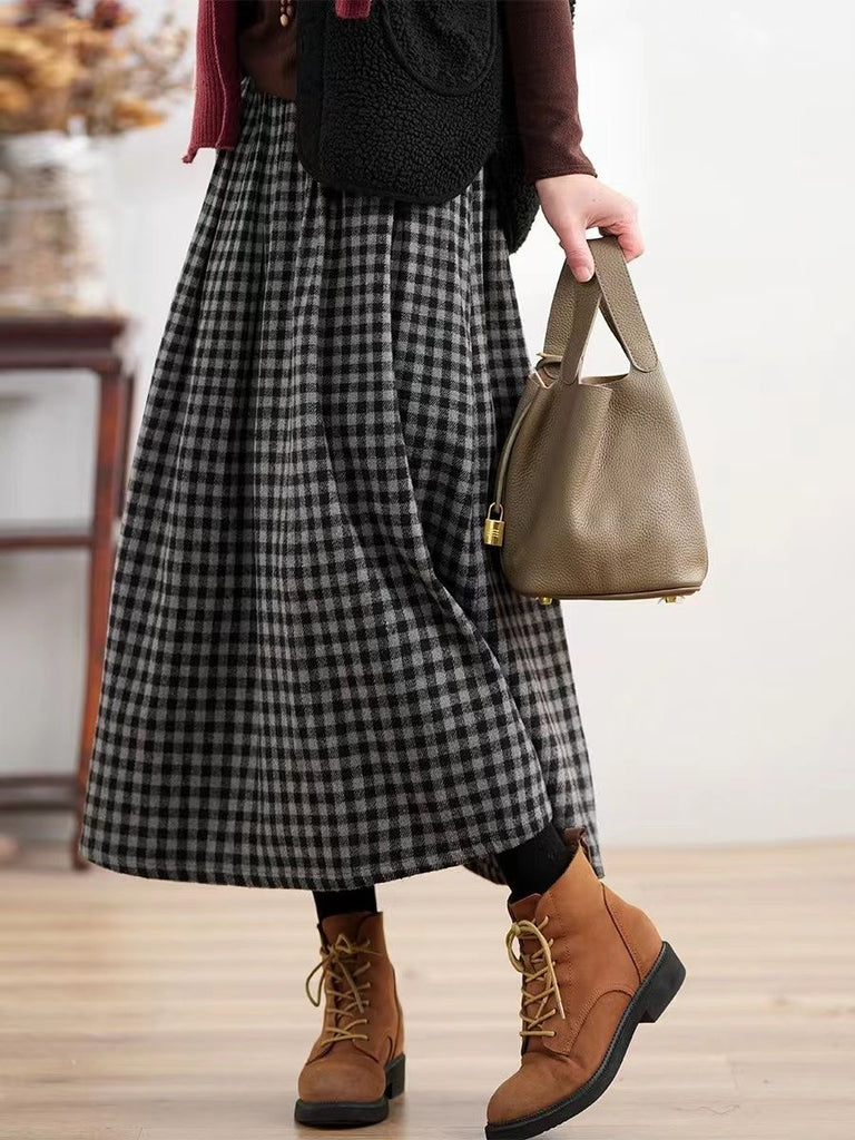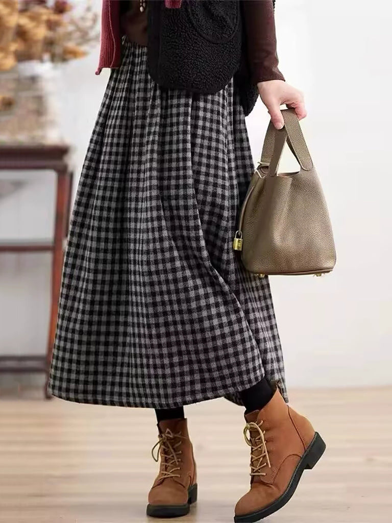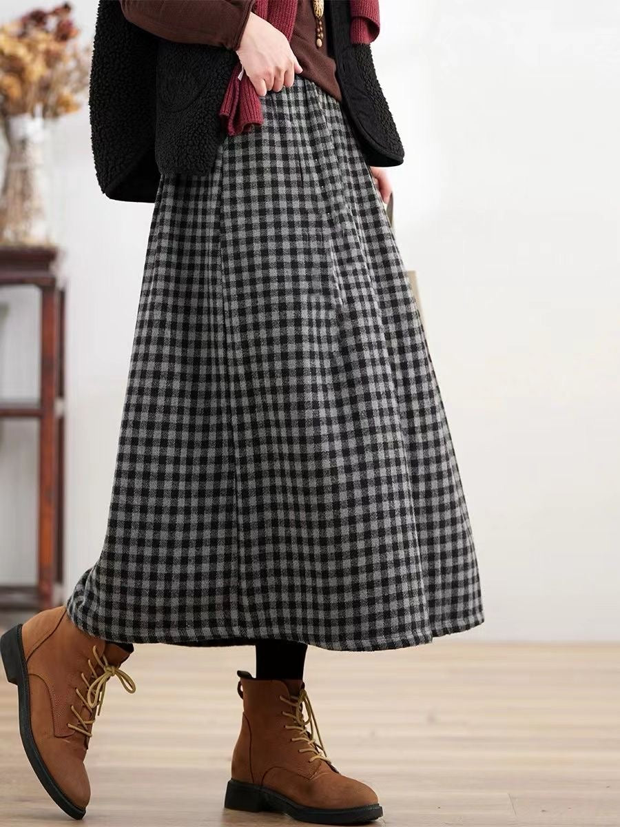 Women Winter Plaid Thick A-Shape Skirt