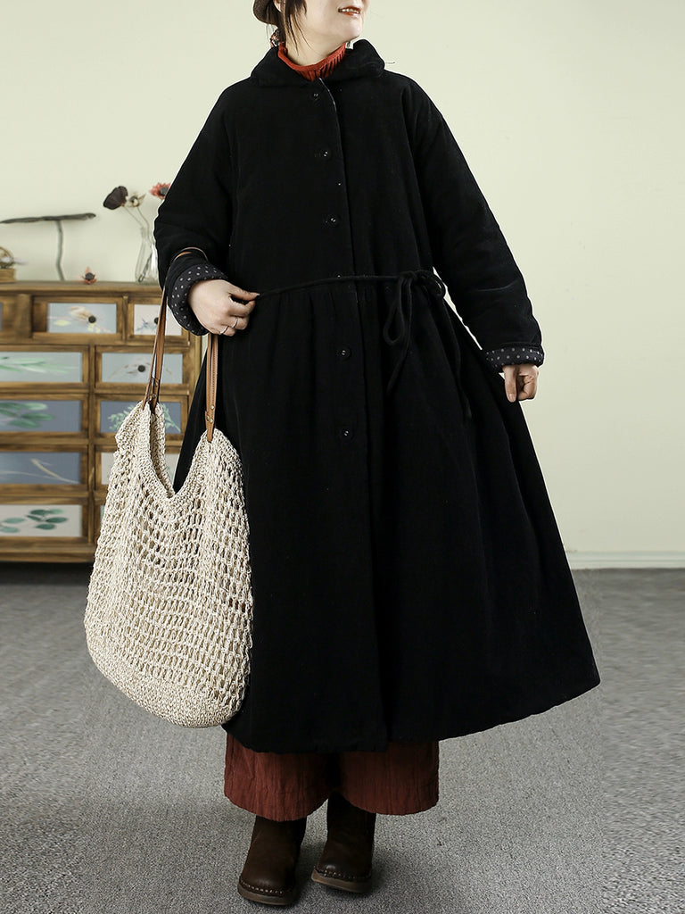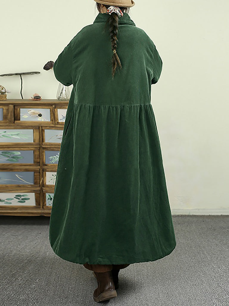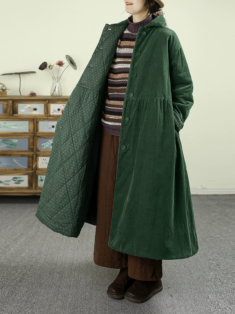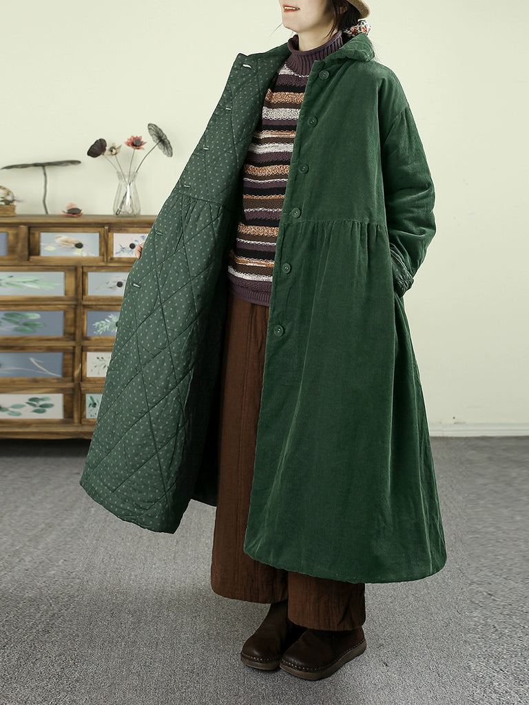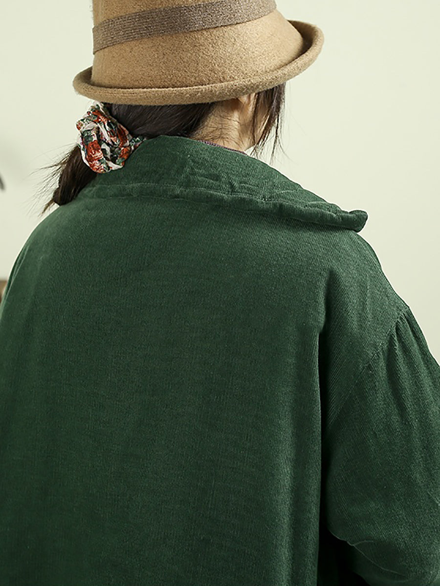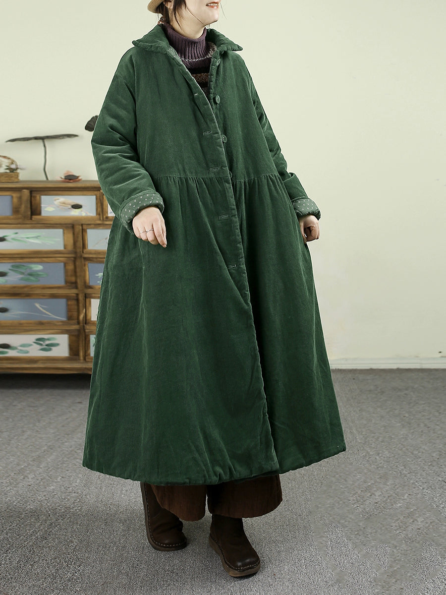 Women Winter Pure Color Dual-side Wearing Padded Corduroy Coat
