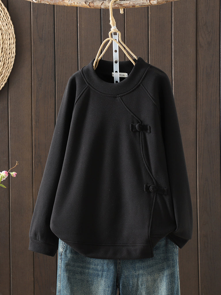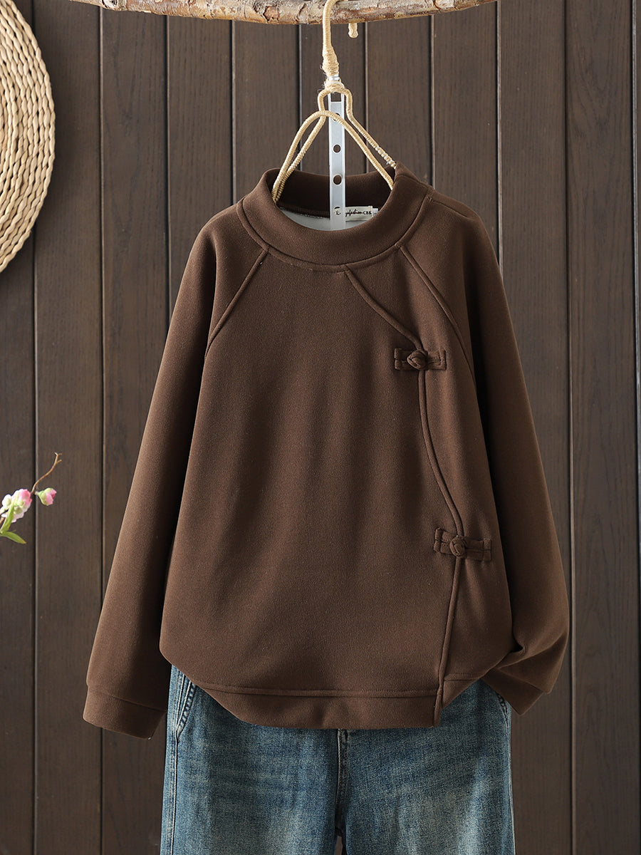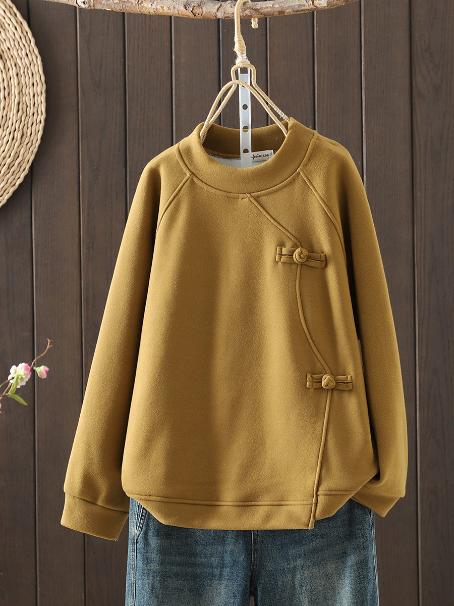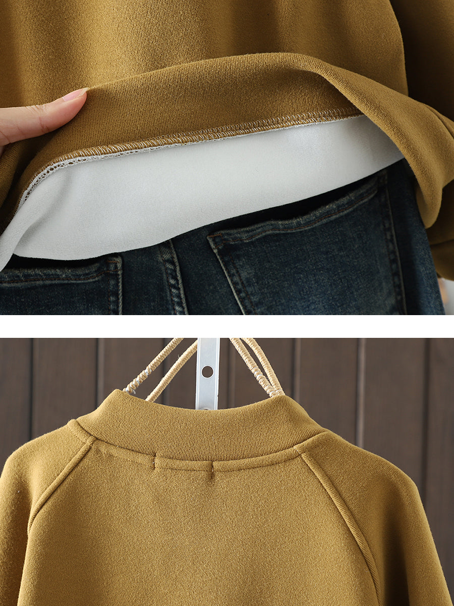 Crafted for cooler seasons, this women's blouse combines timeless design with practical warmth. The classic o-neck silhouette and full-length raglan sleeves deliver a retro aesthetic, while the fleece lining provides insulation without bulk. Its solid color palette ensures versatile styling across your autumn and winter wardrobe. An essential layering piece that balances vintage charm with contemporary comfort.