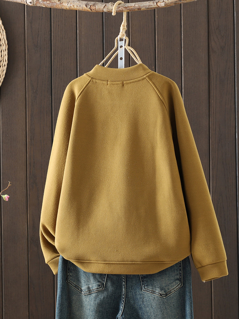 Women Winter Pure Color Fleece-lined O-Neck Blouse