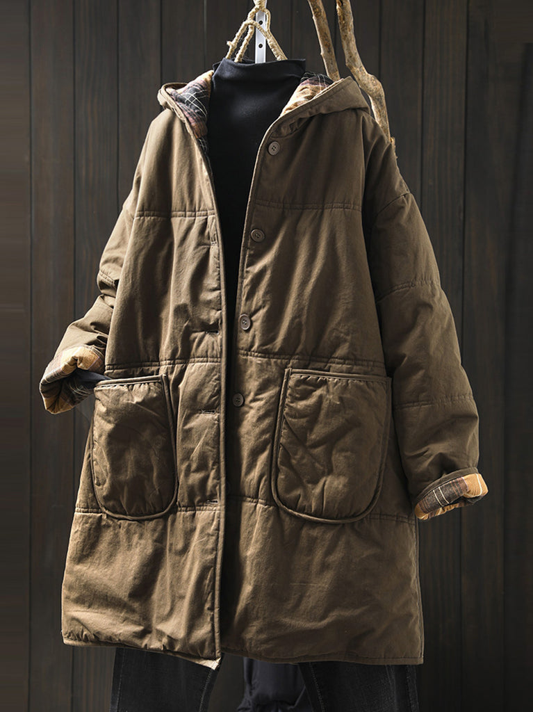 The product features a clean, solid color design, a hooded collar, and full raglan sleeves, combining classic and vintage styles, perfect for the winter and autumn seasons.