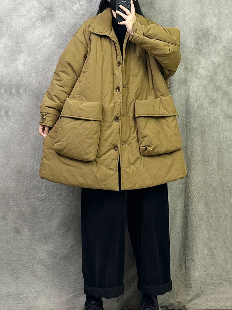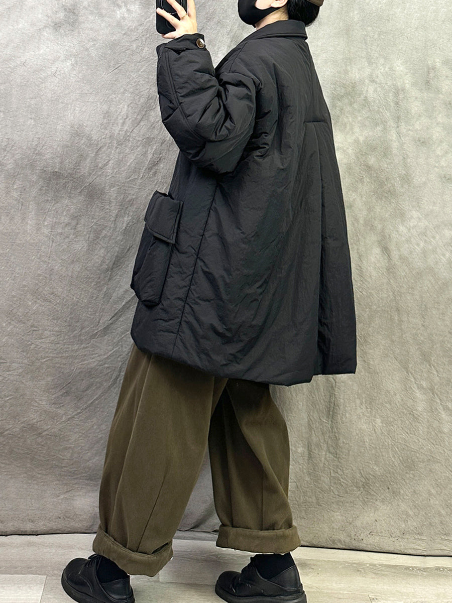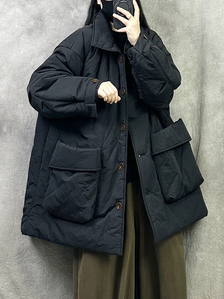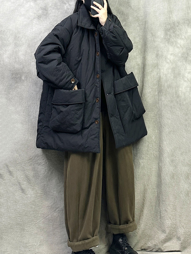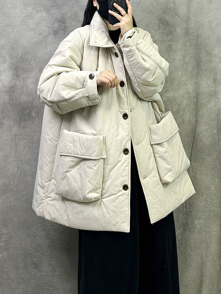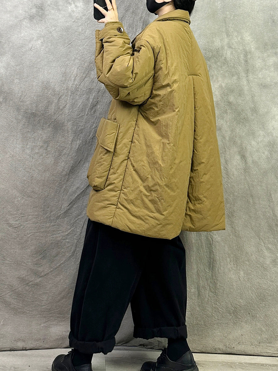 Women Winter Pure Color Padded Turn-down Collar Coat