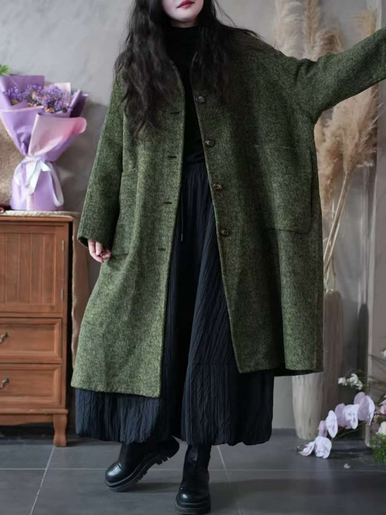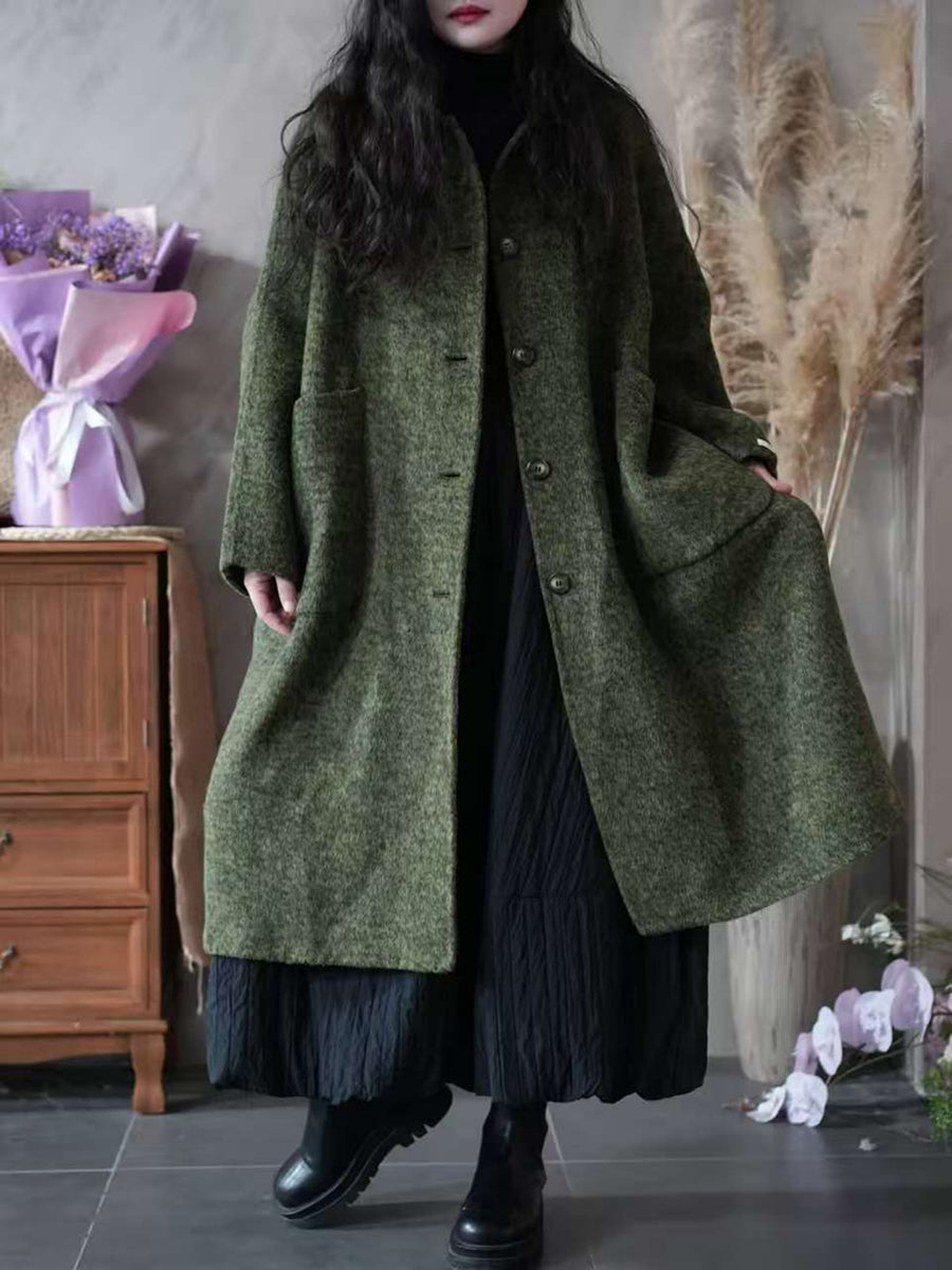 Women Winter Pure Color Turn-down Collar Fleece Overcoat