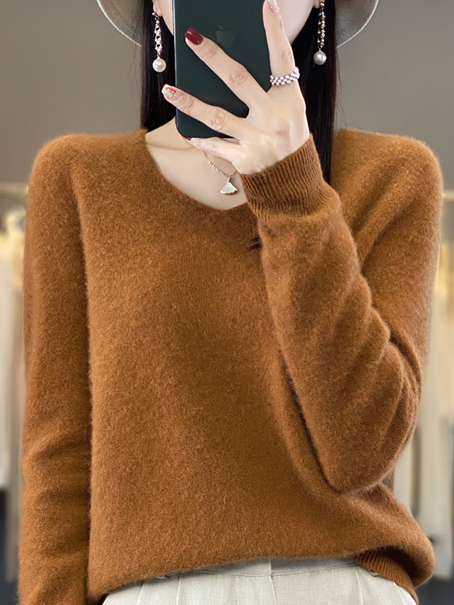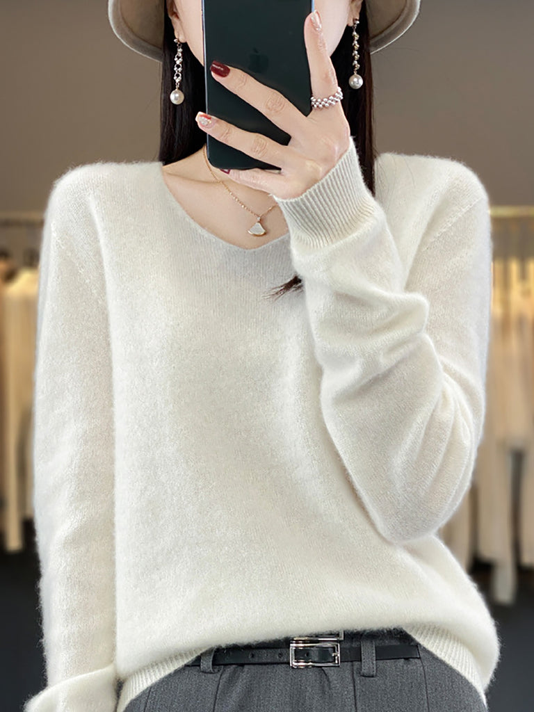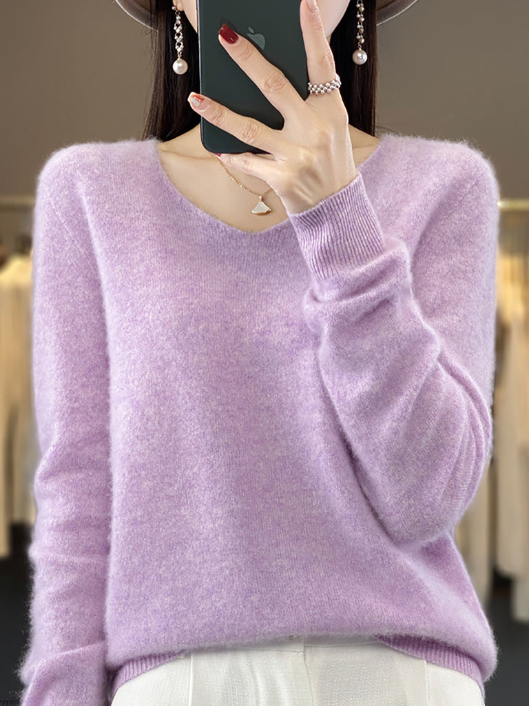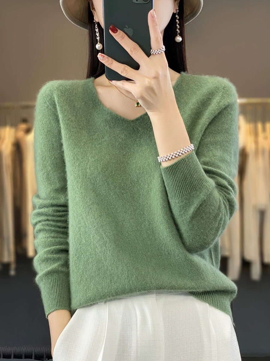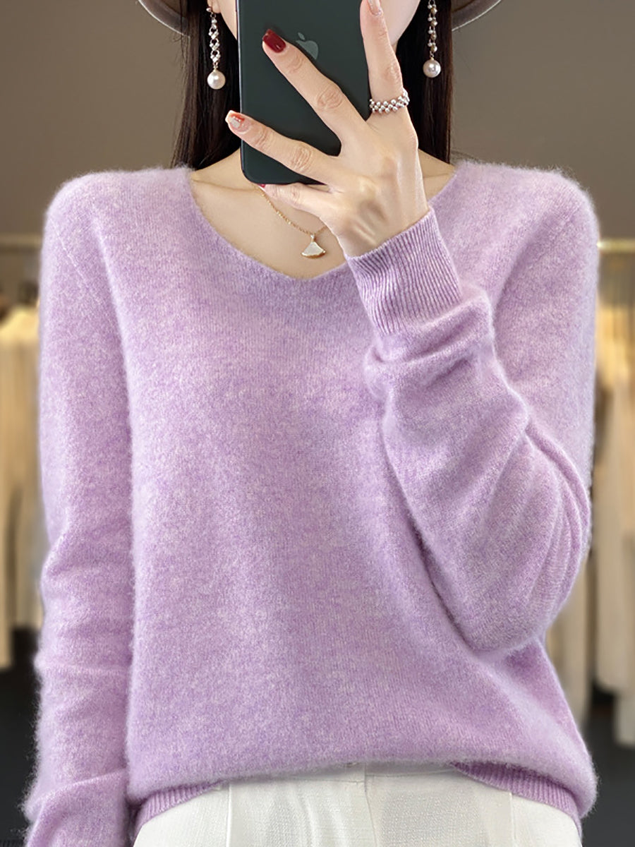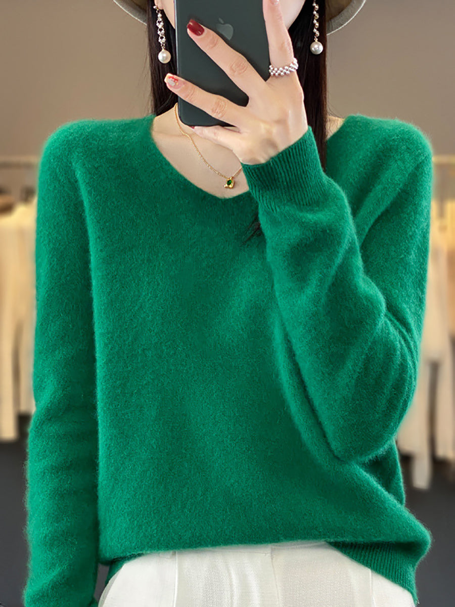 Women Winter Pure Color V-Neck Sweater