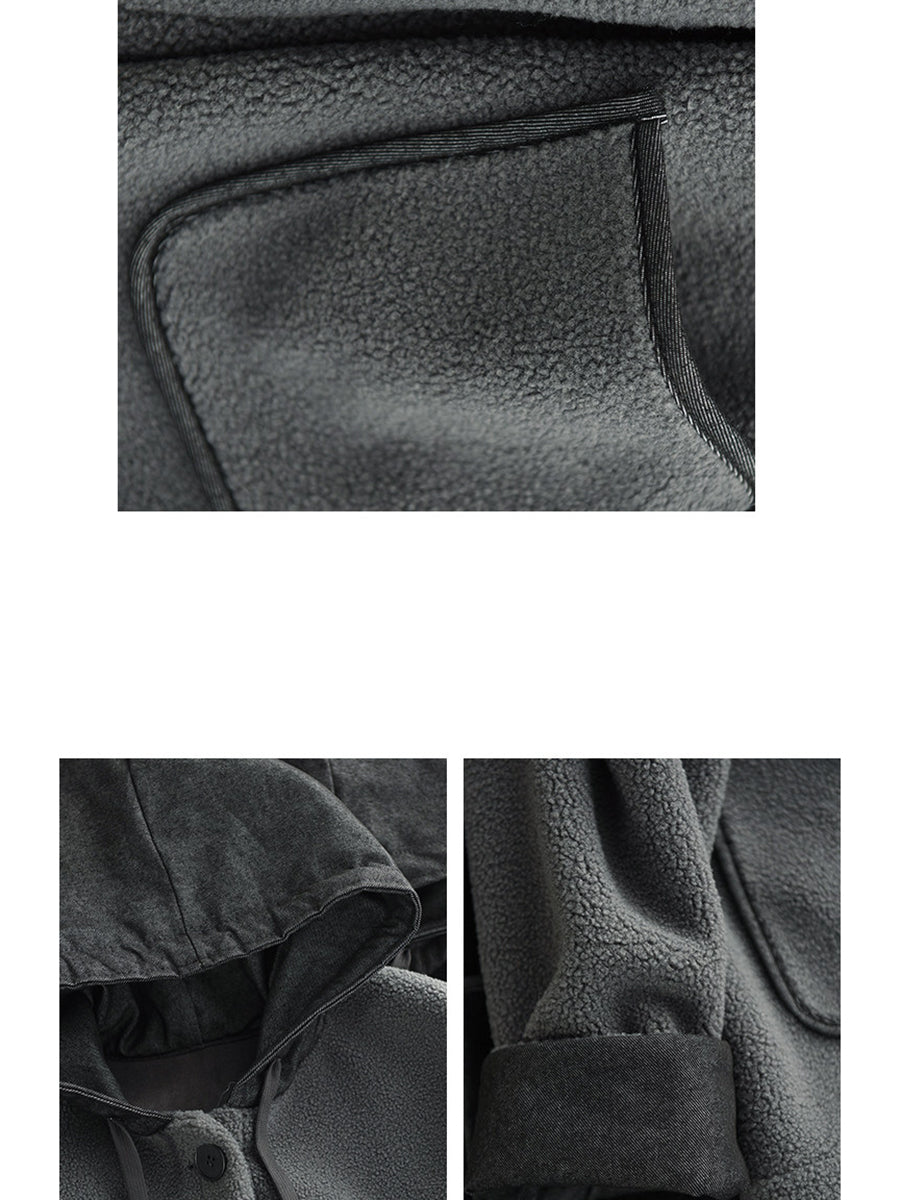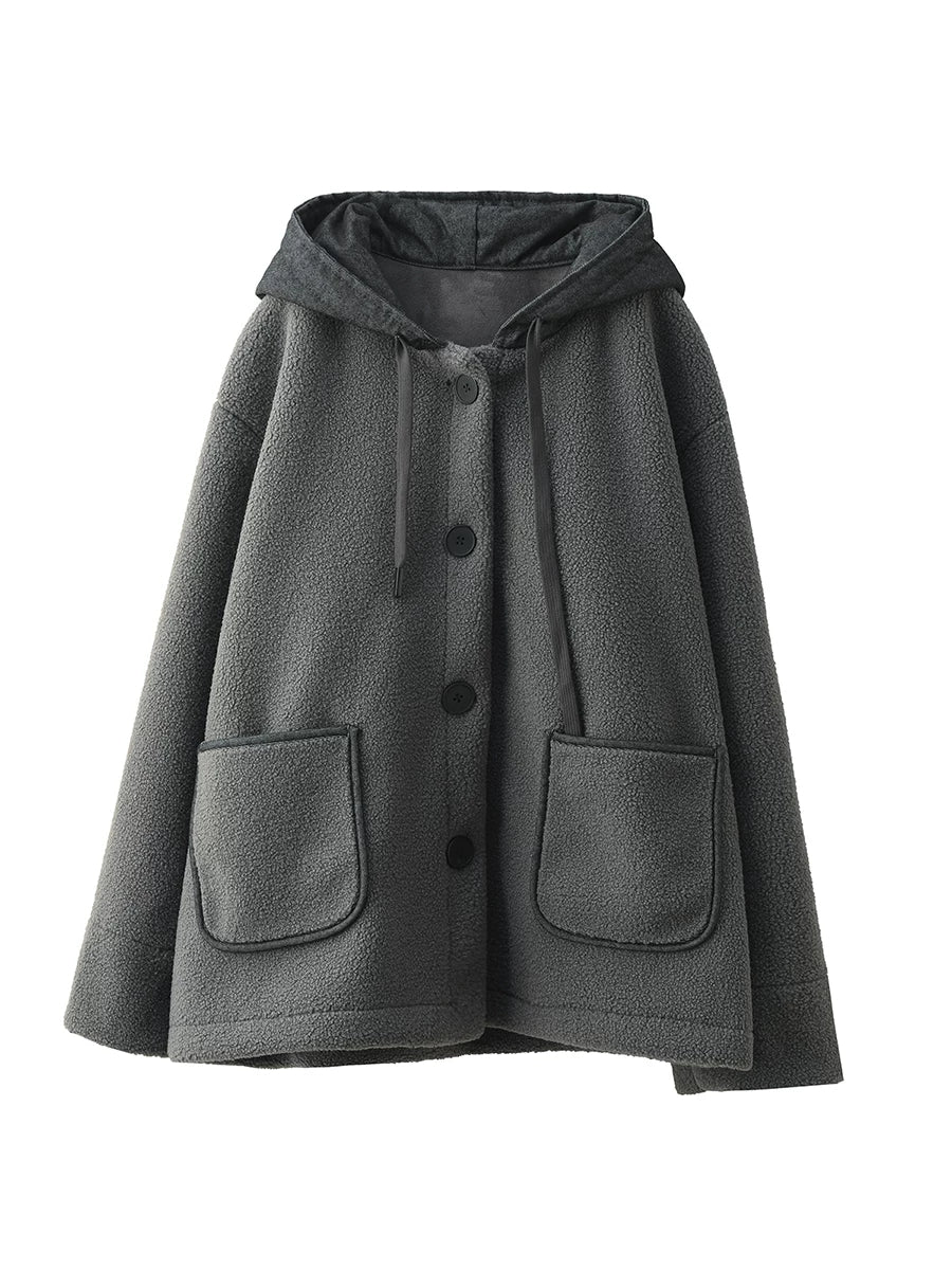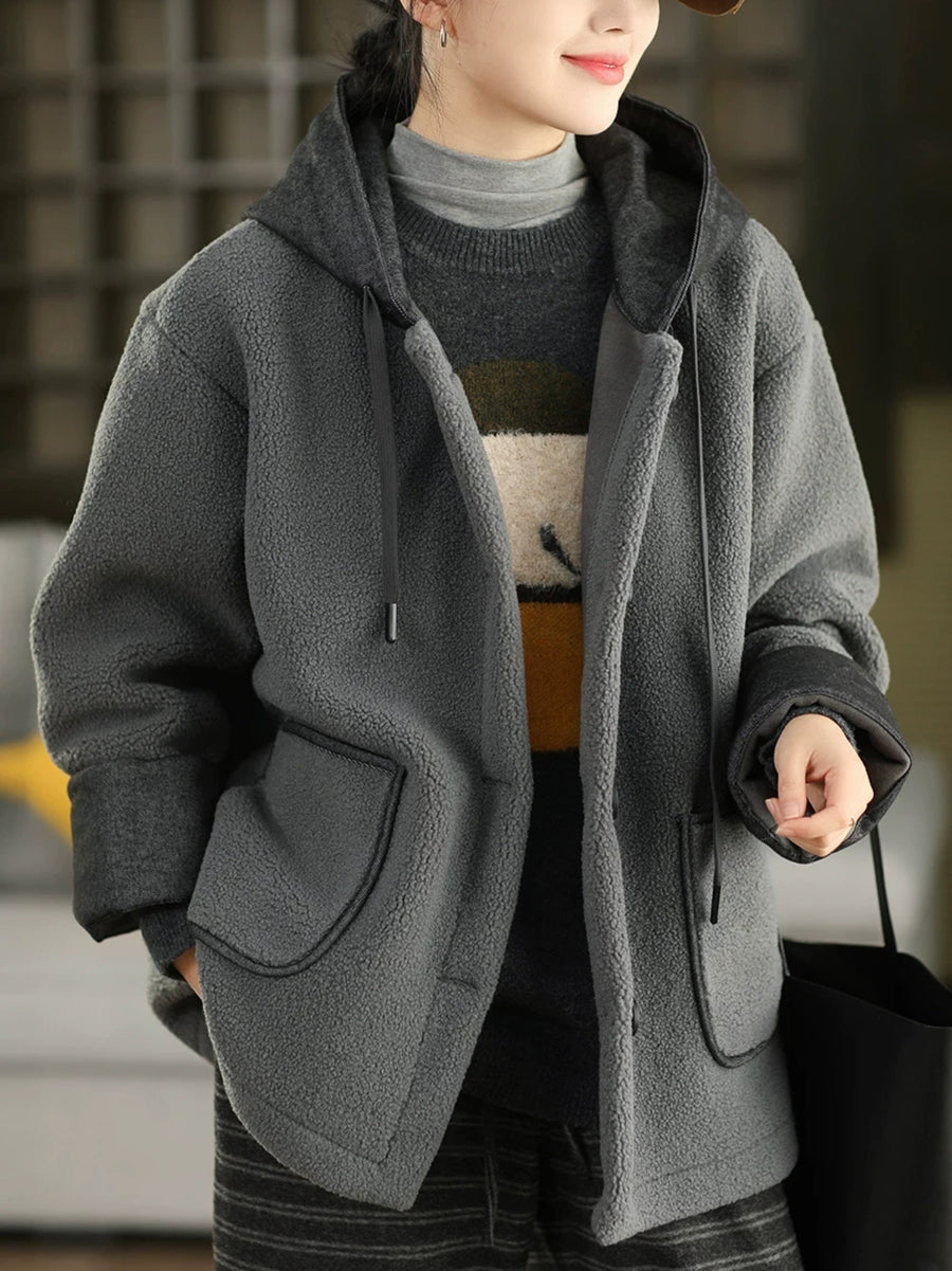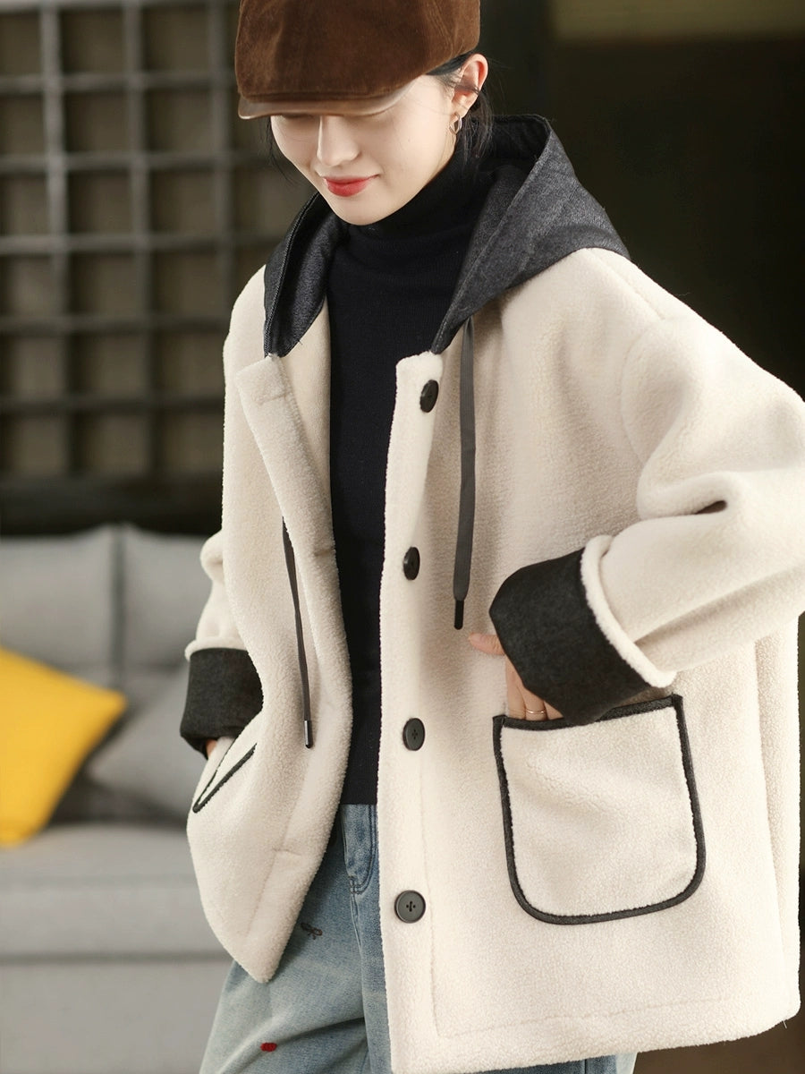 Women Winter Retro Colorblock Hooded Fleece Coat