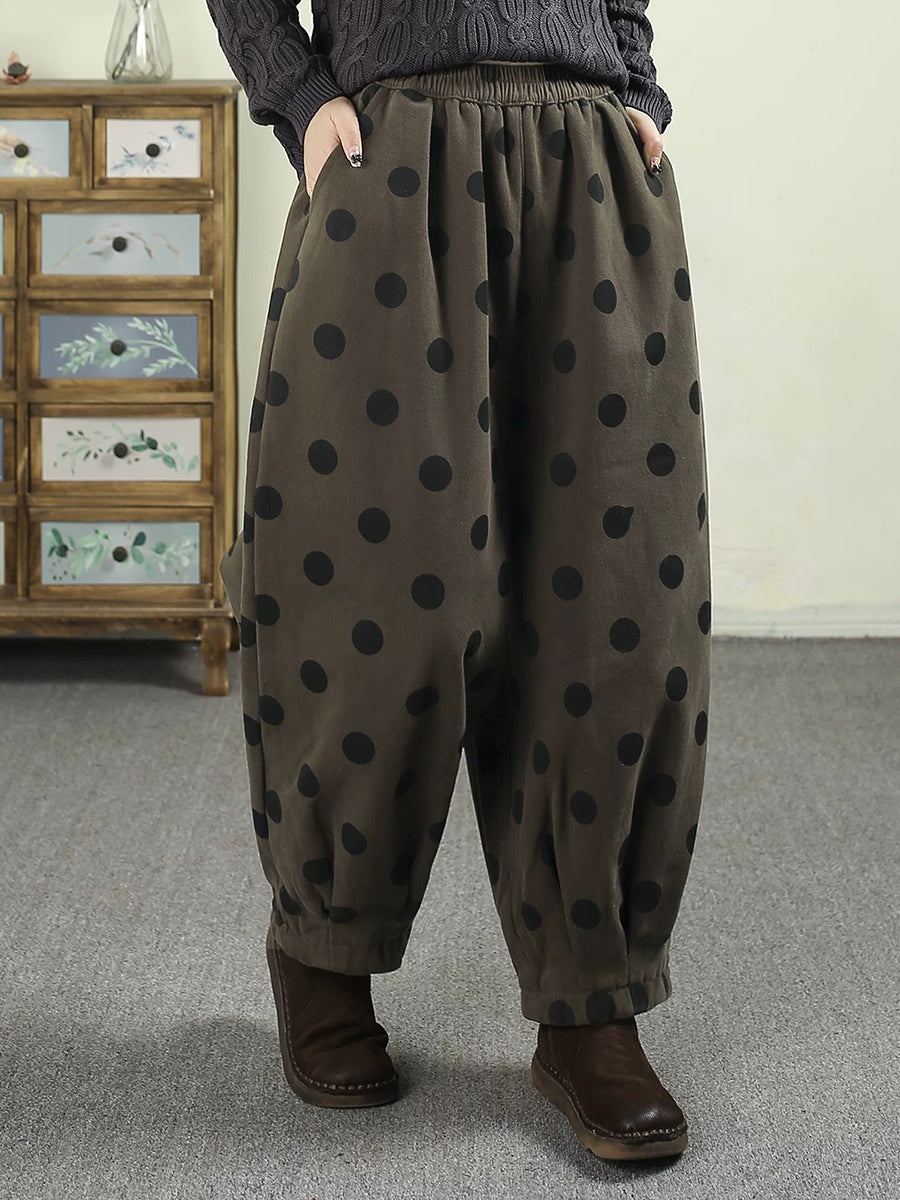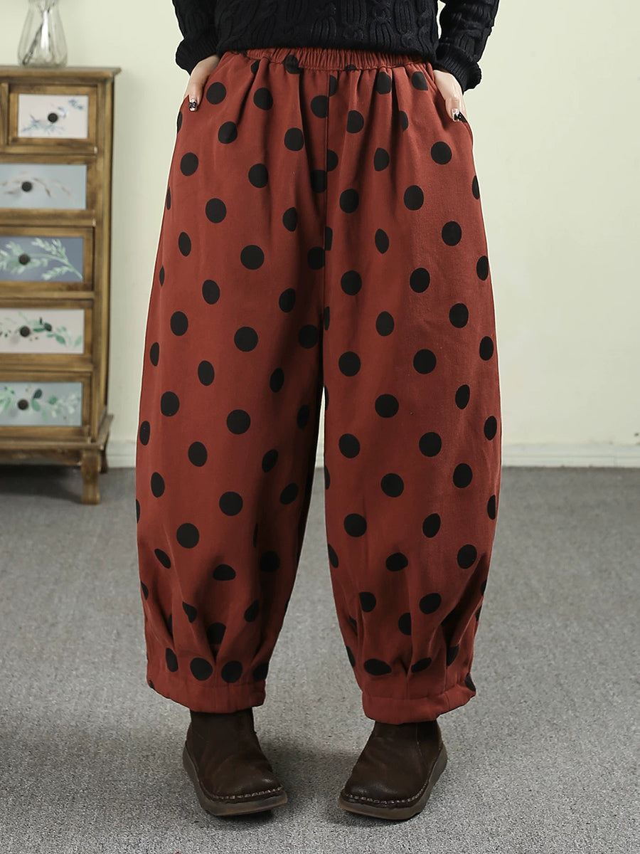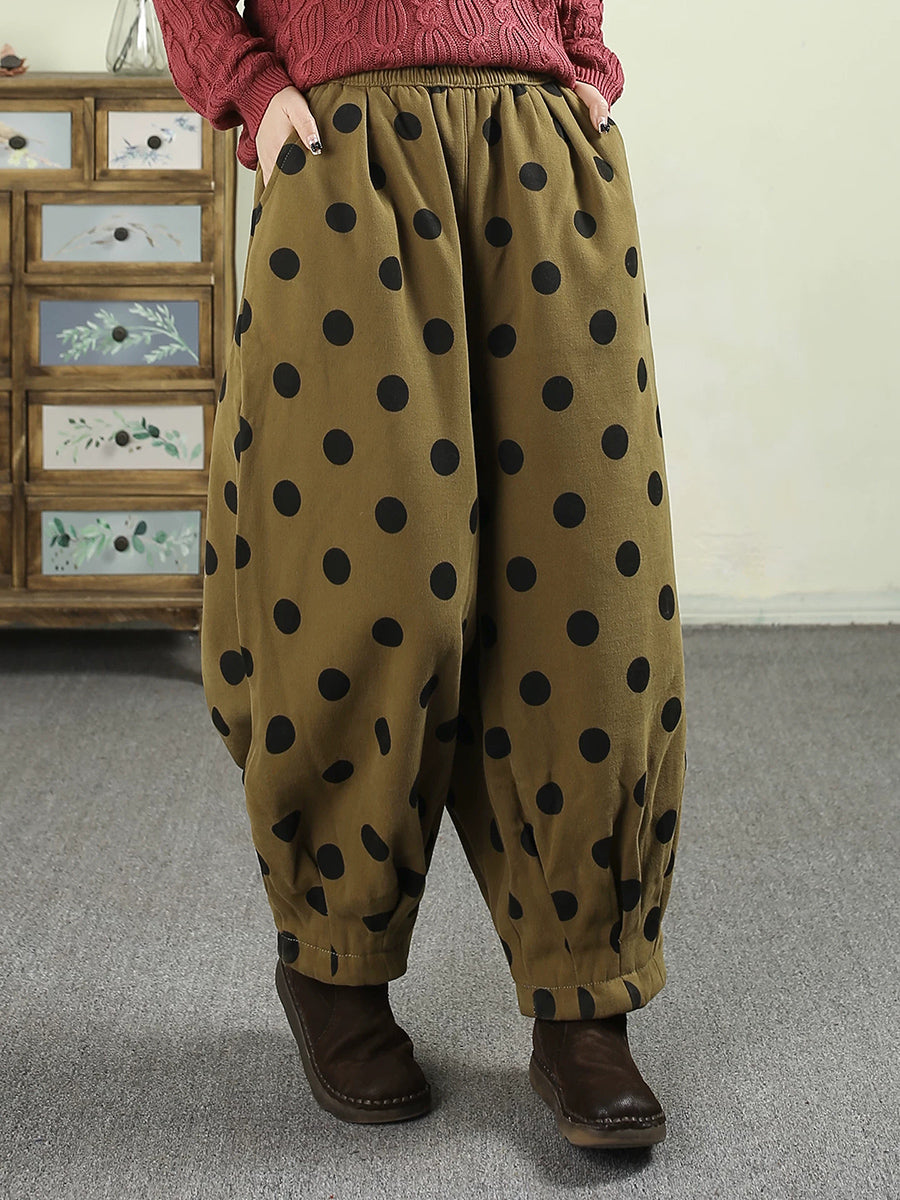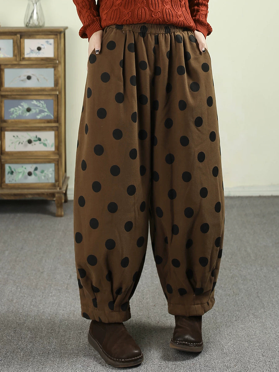 Women Winter Retro Dot Padded Harem Pants