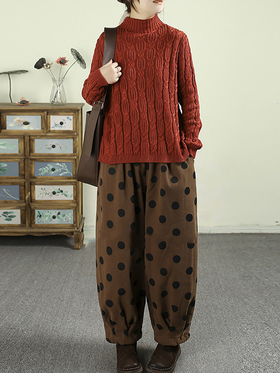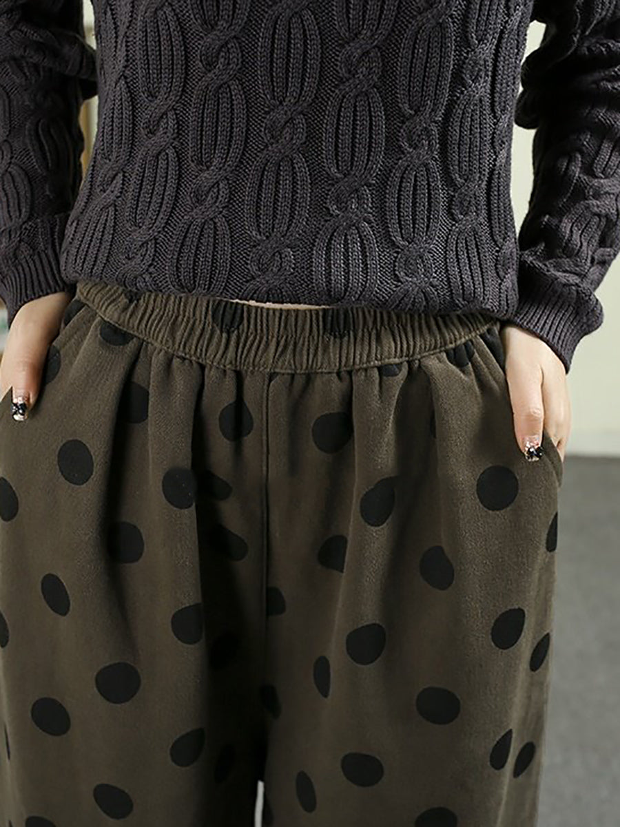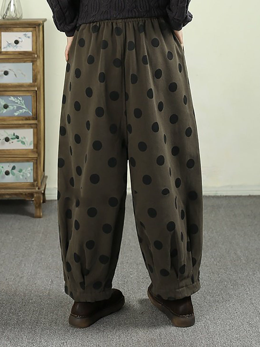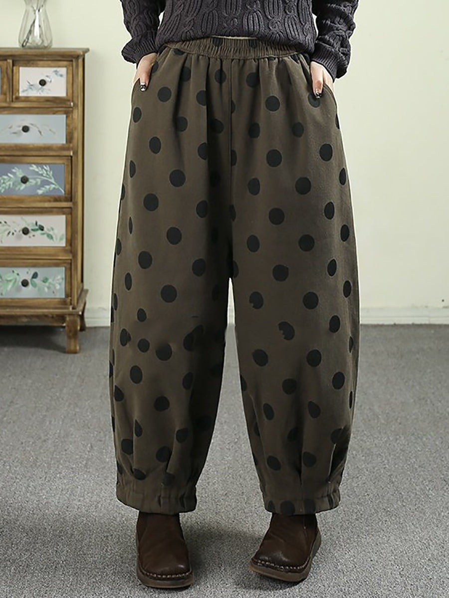Women Winter Retro Dot Padded Harem Pants