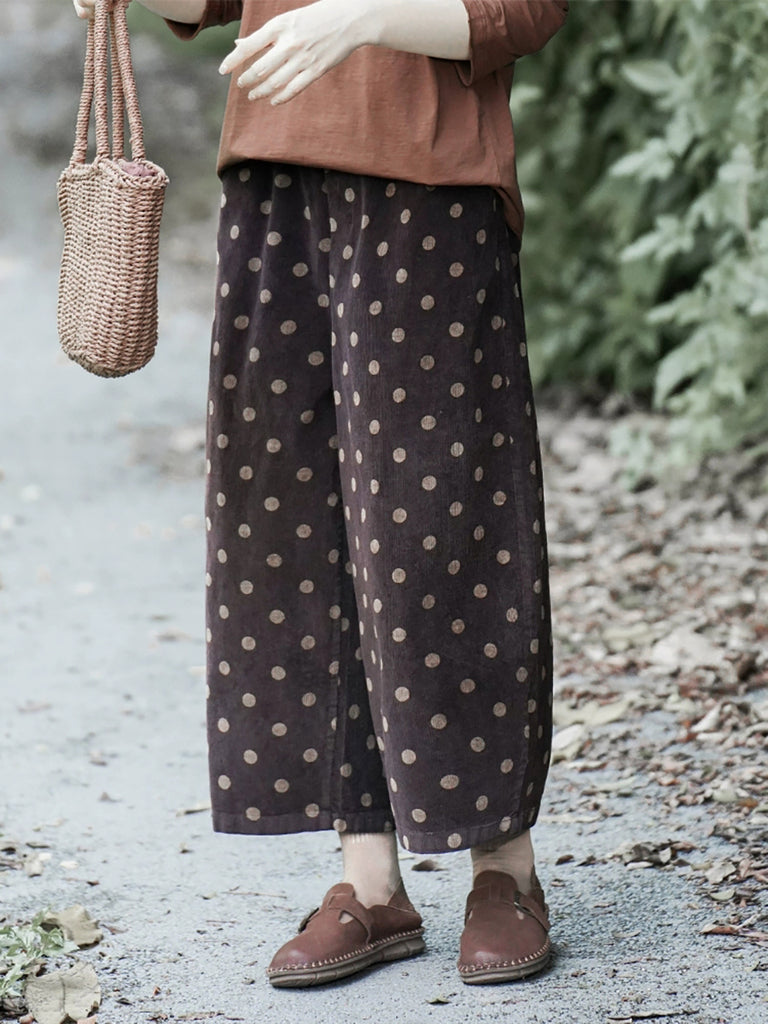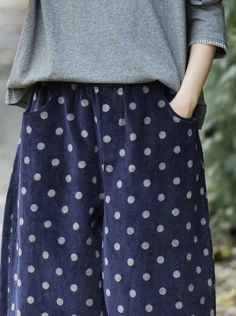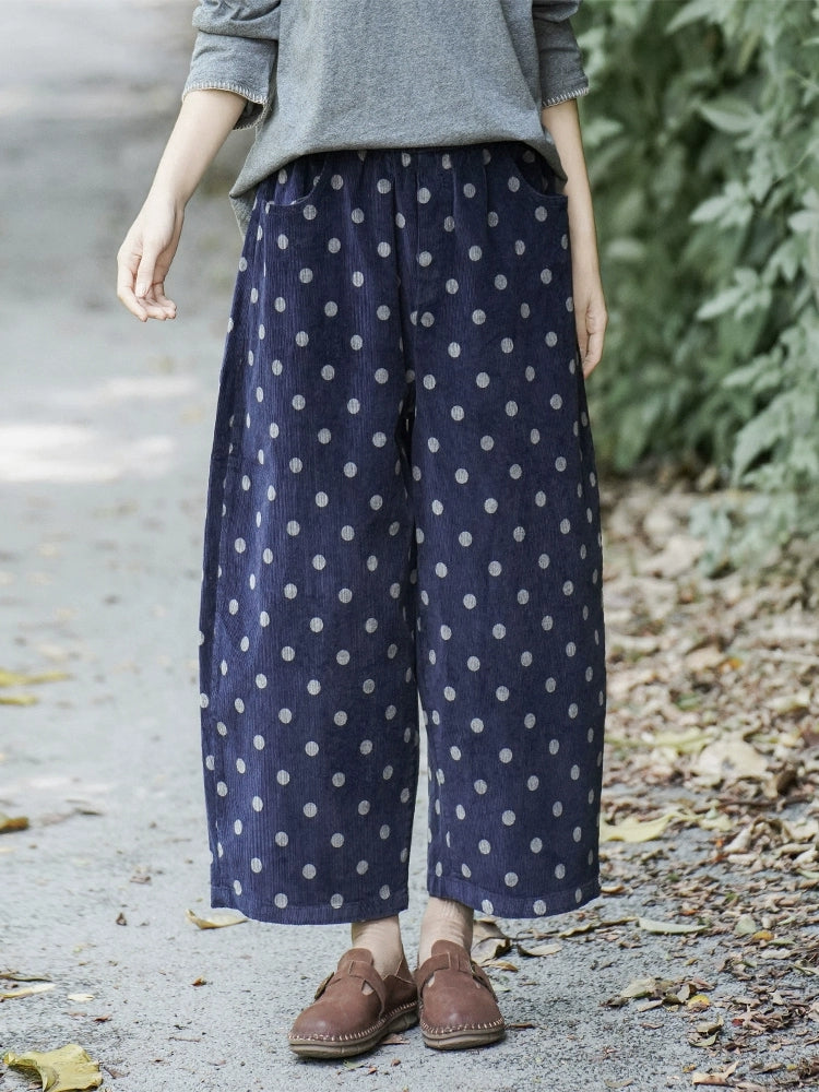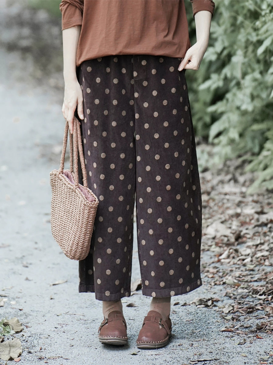 Women Winter Retro Dot Wide-leg Cotton Pants