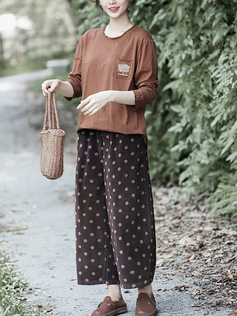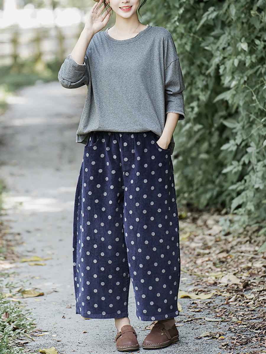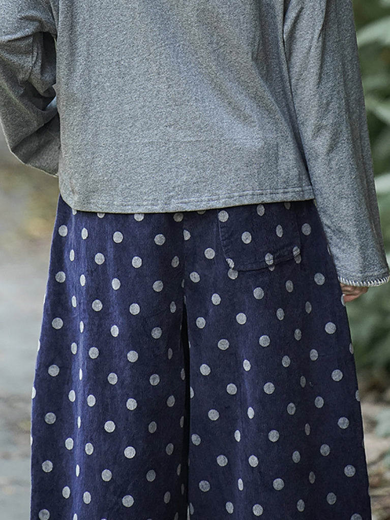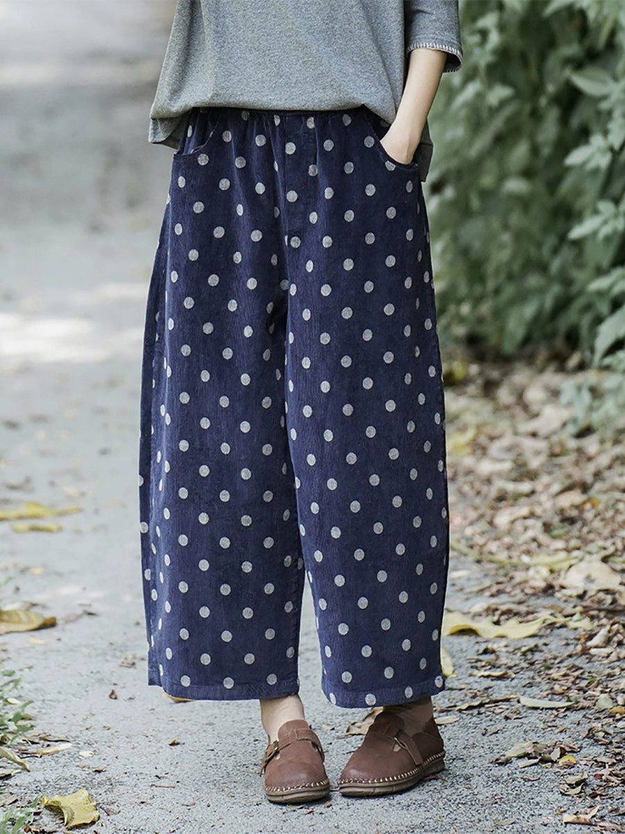 Women Winter Retro Dot Wide-leg Cotton Pants