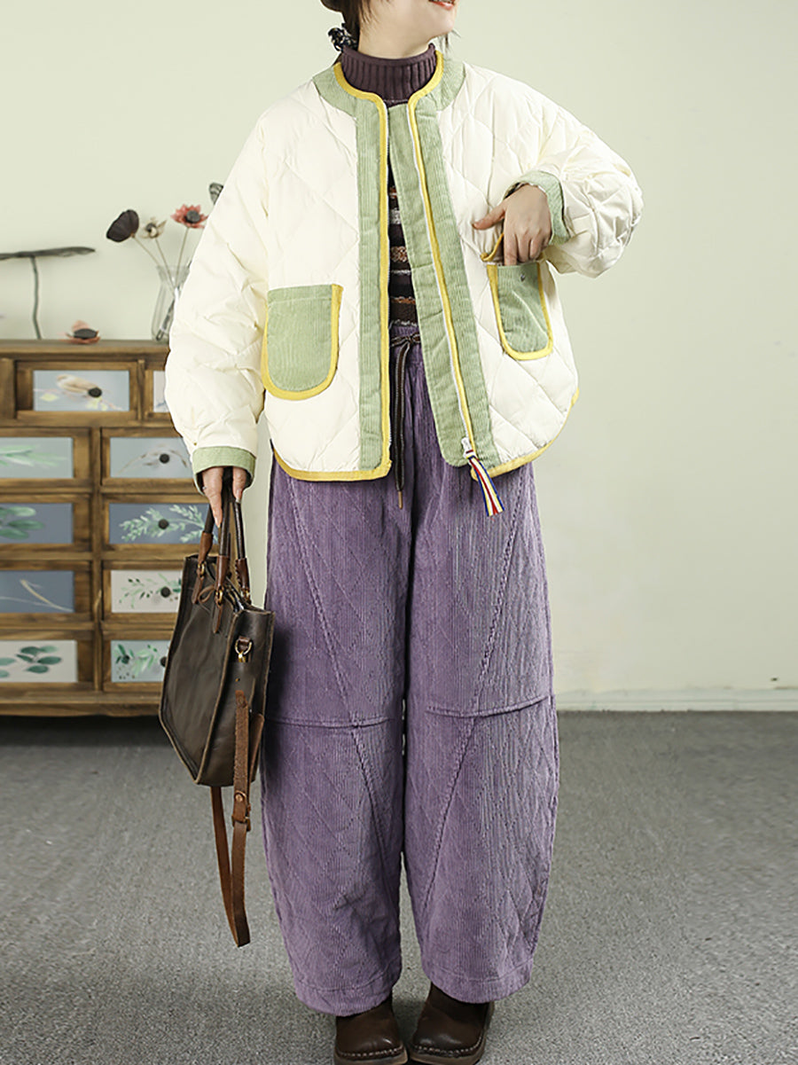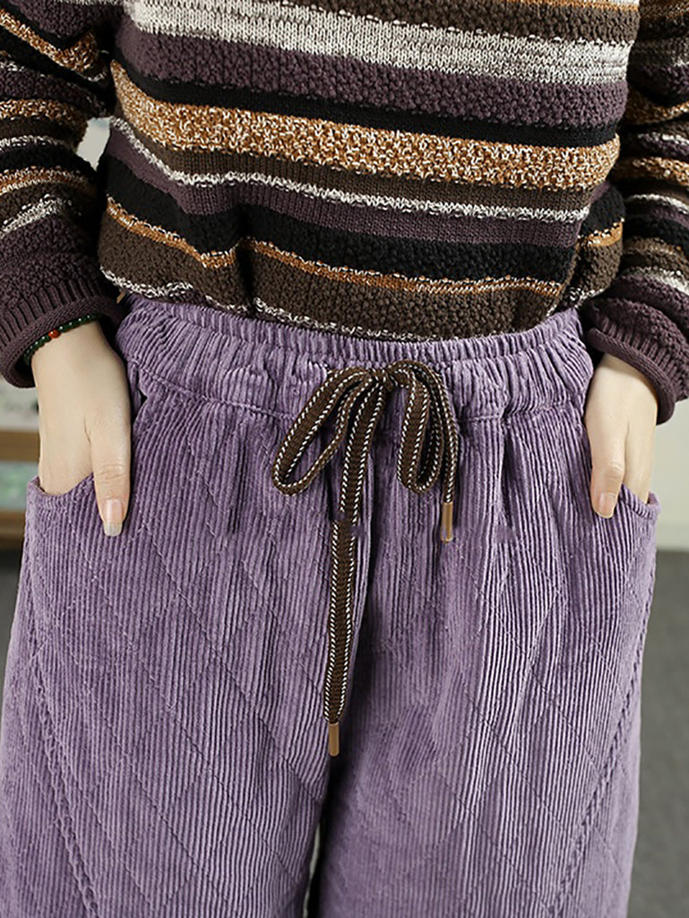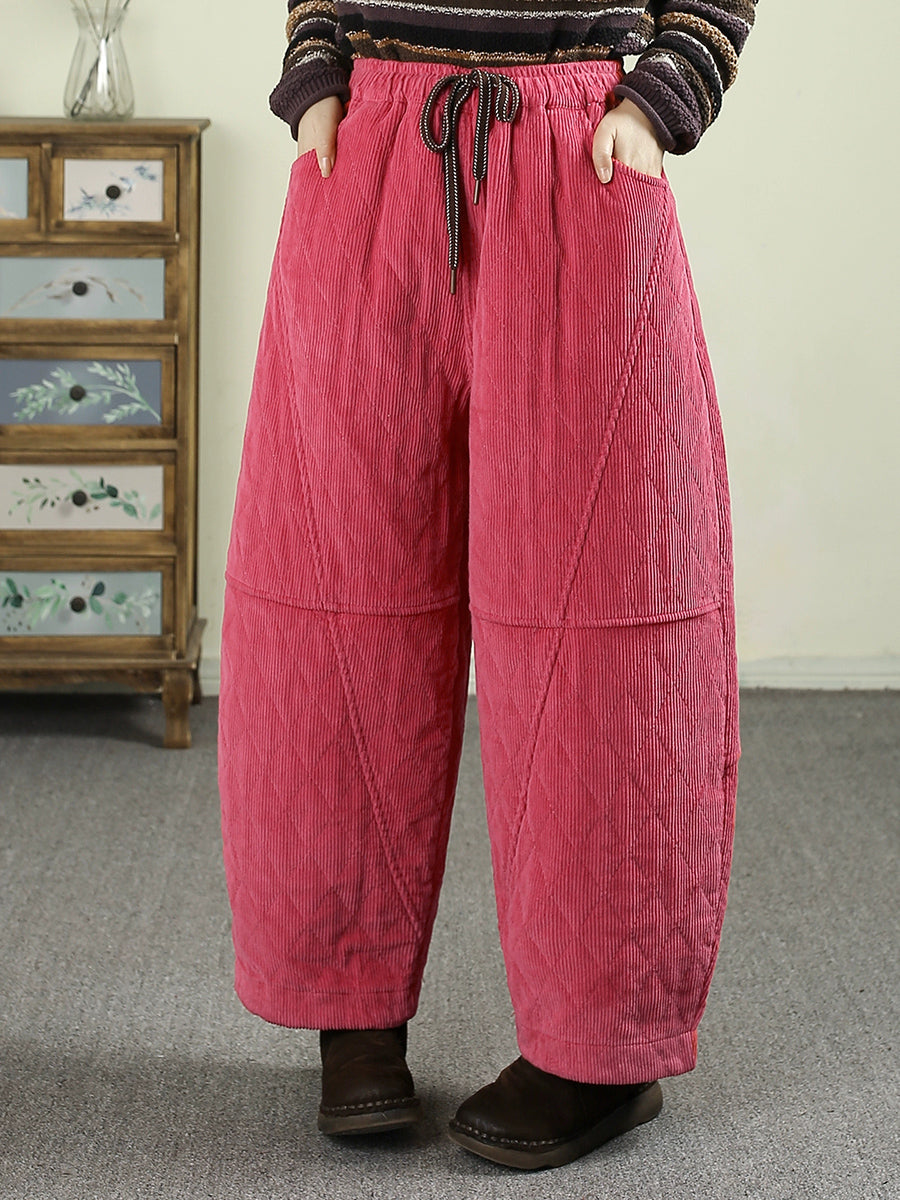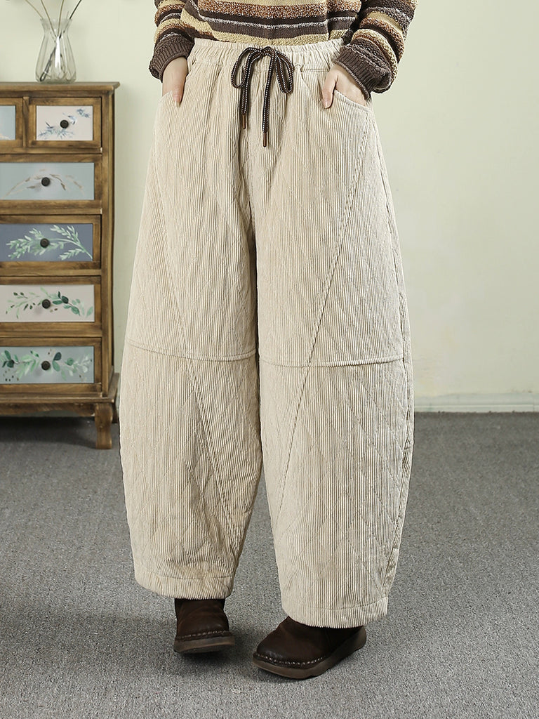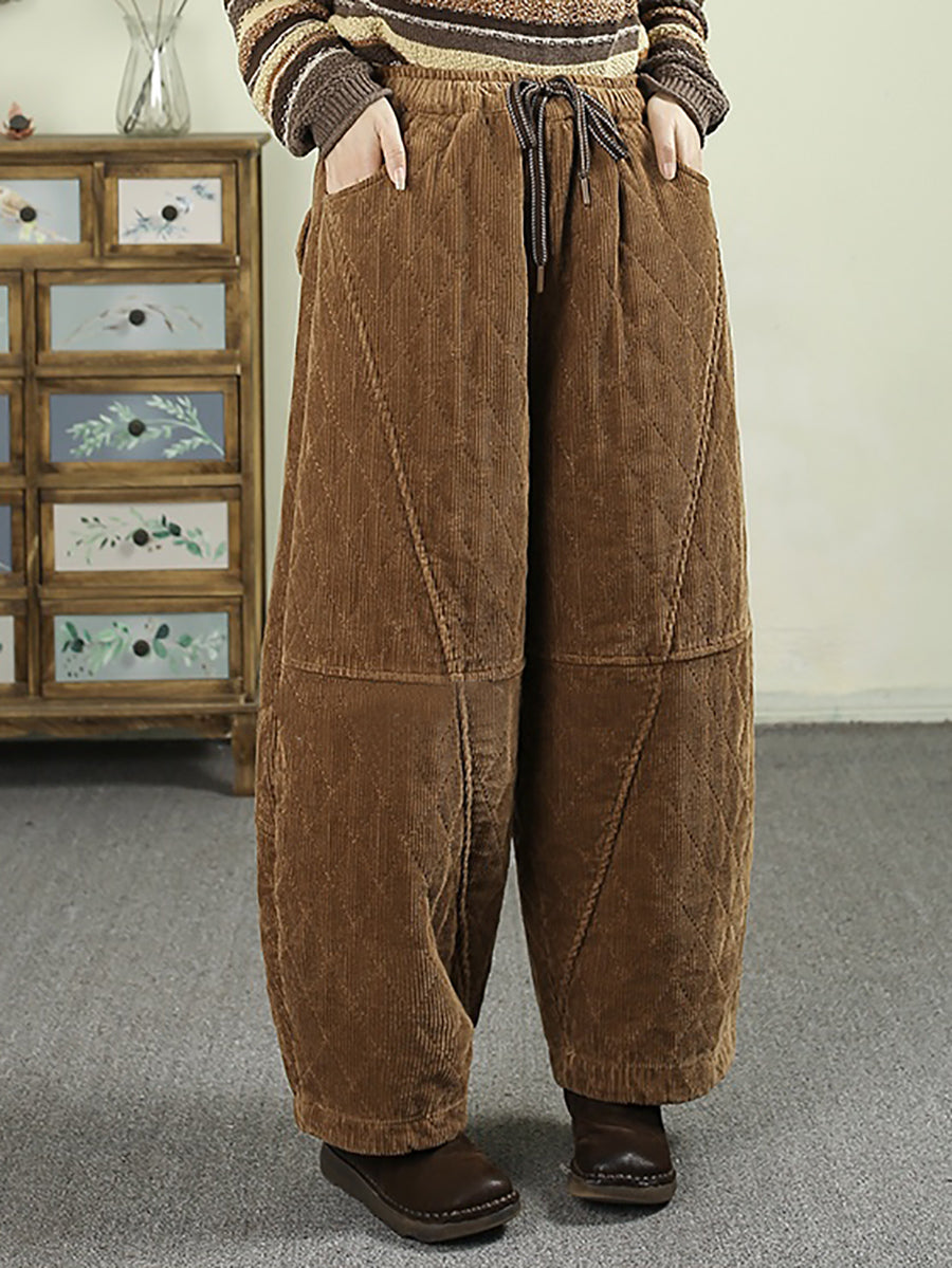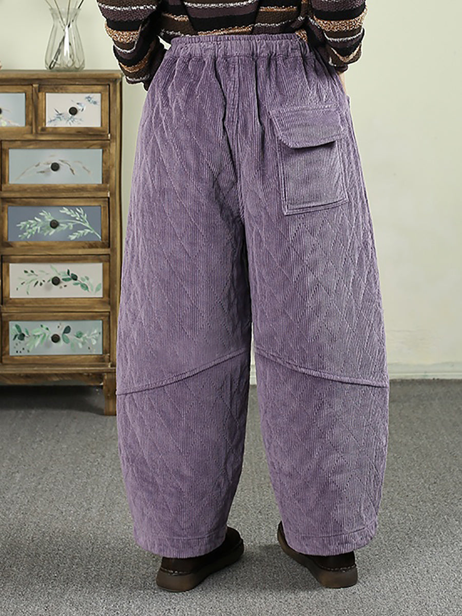 Women Winter Retro Pure Color Corduroy Padded Harem Pants