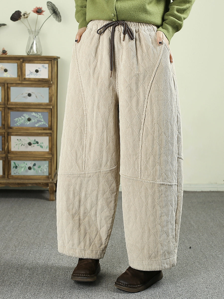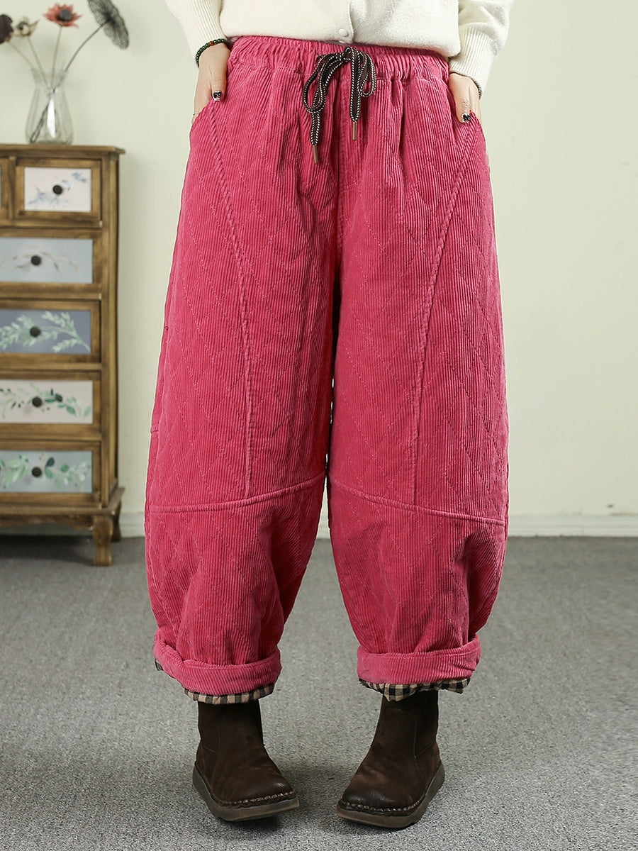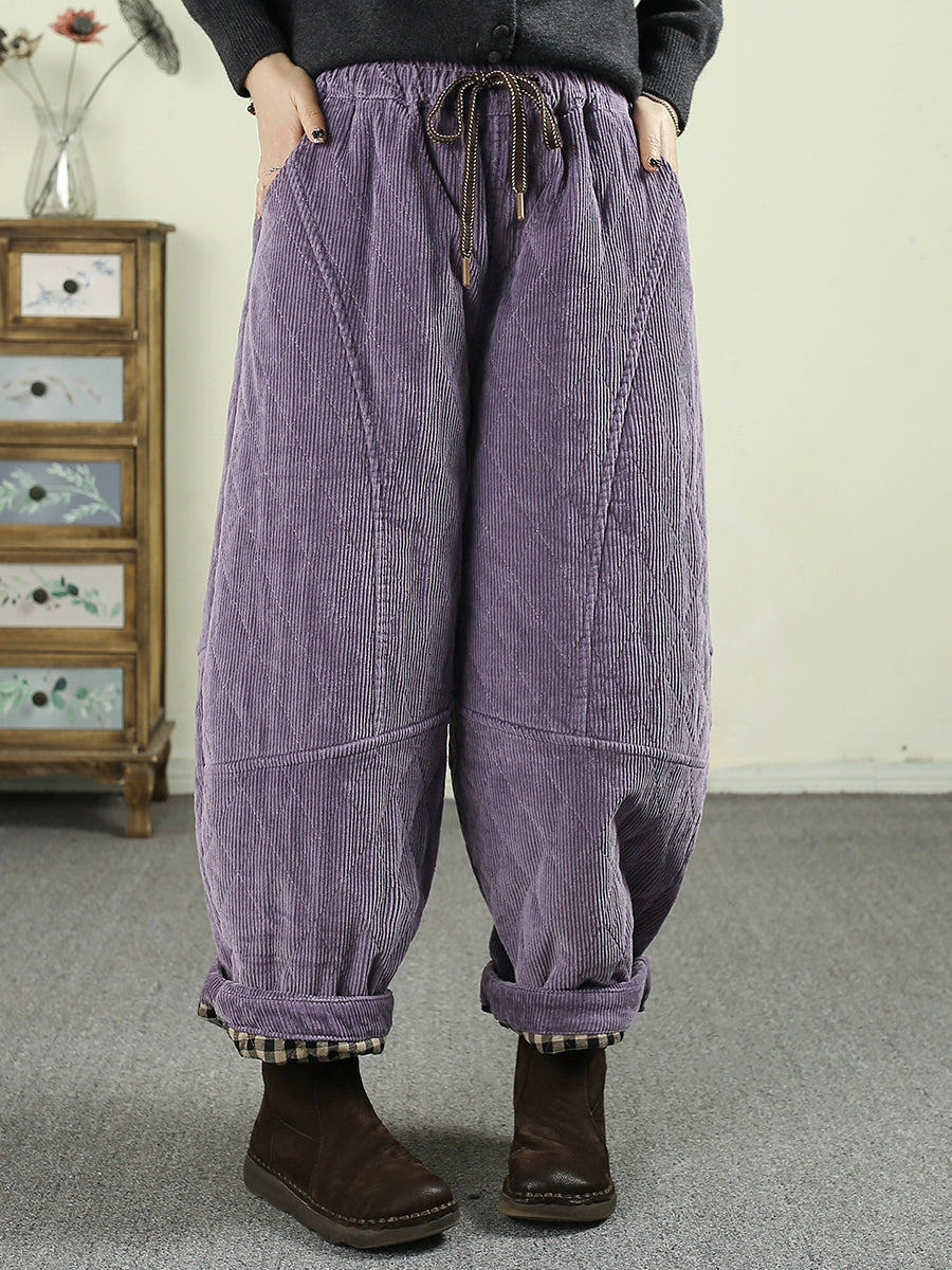 Women Winter Retro Pure Color Corduroy Padded Harem Pants