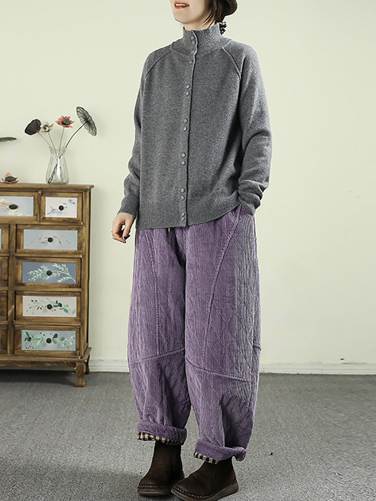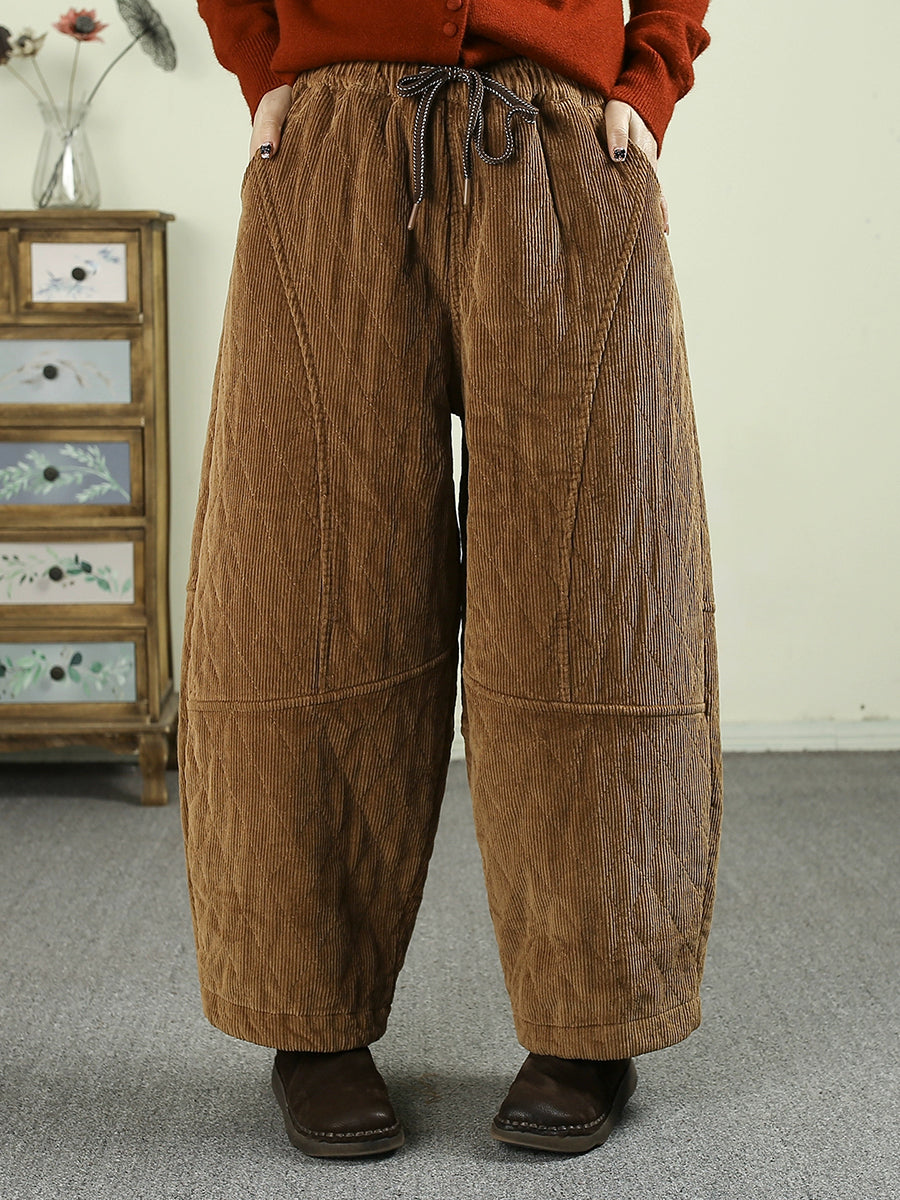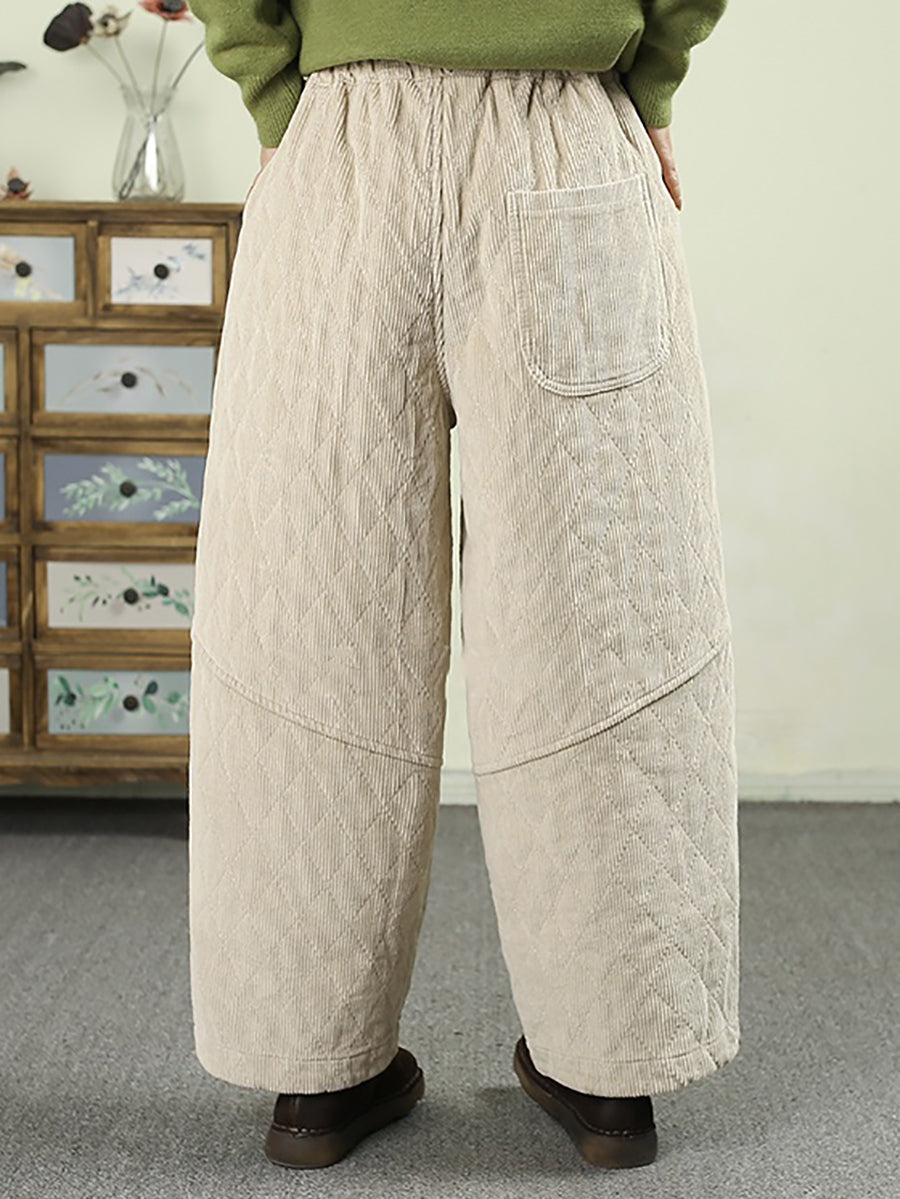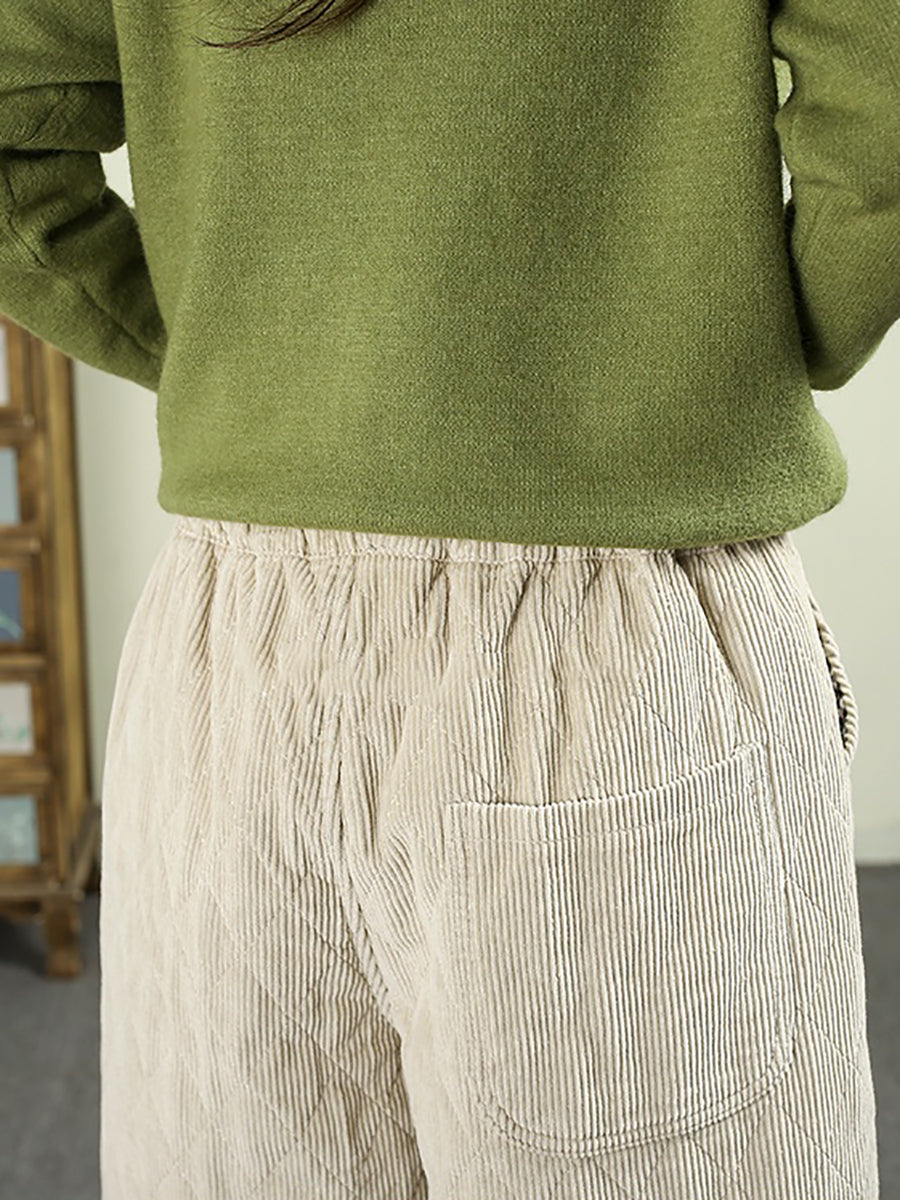 Women Winter Retro Pure Color Corduroy Padded Harem Pants