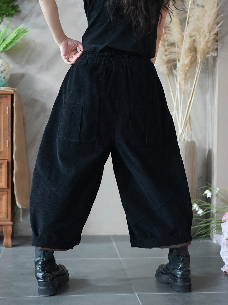 Women Winter Retro Pure Color Corduroy Wide-leg Pants