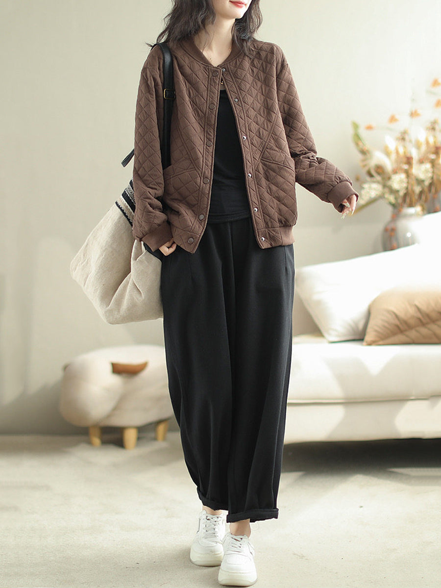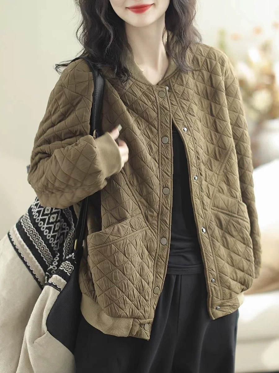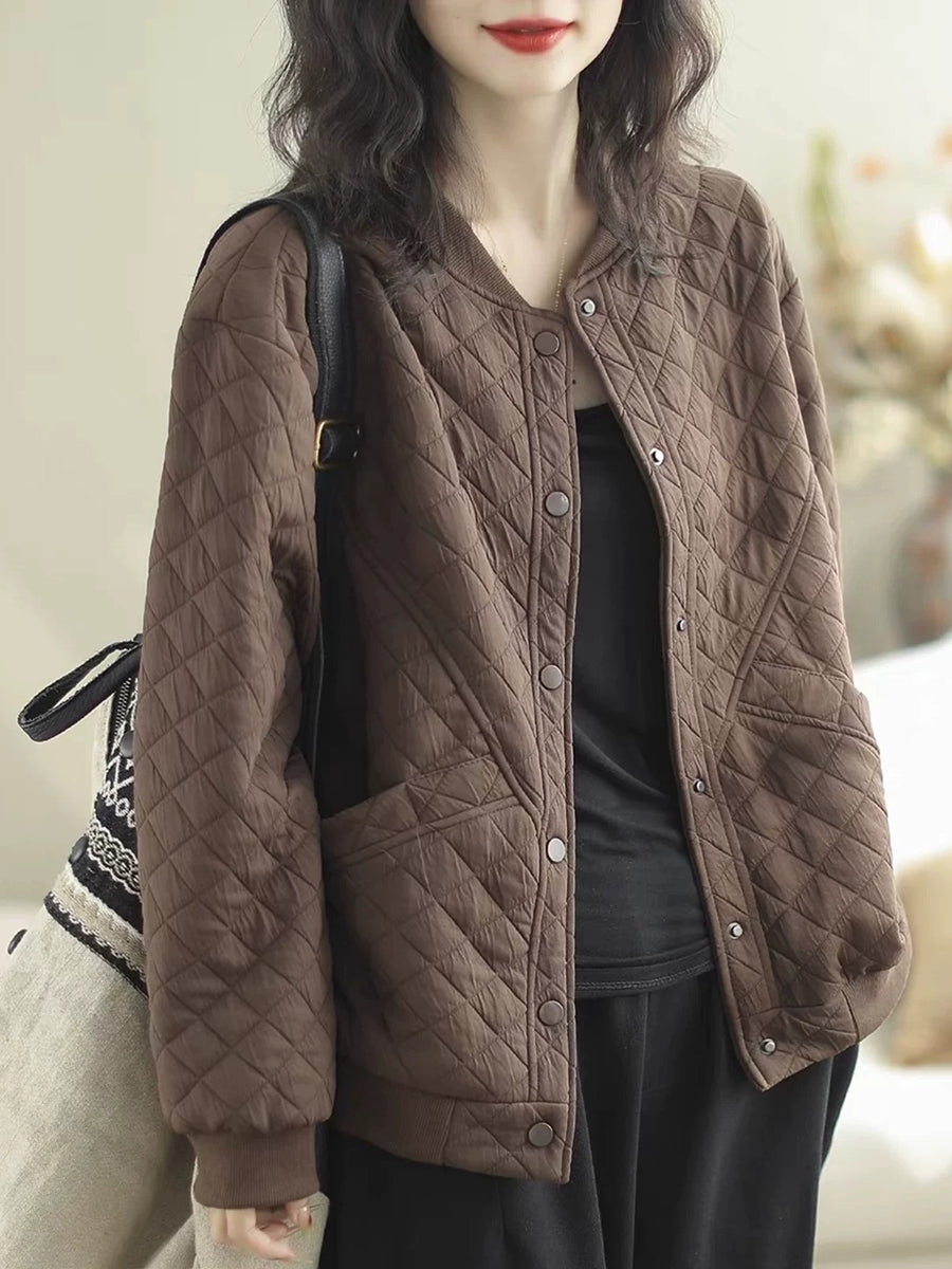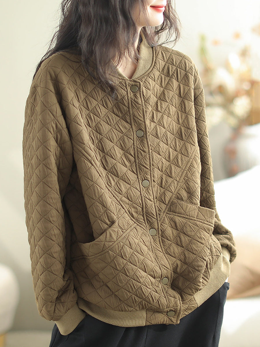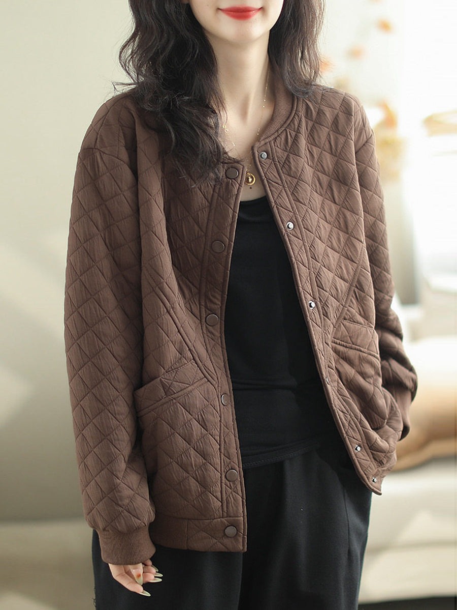 Women Winter Retro Pure Color O-Neck Padded Coat