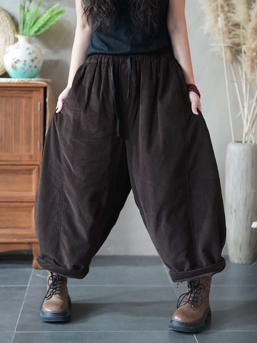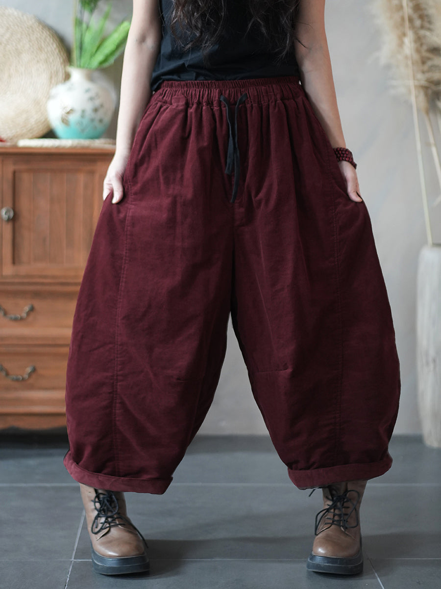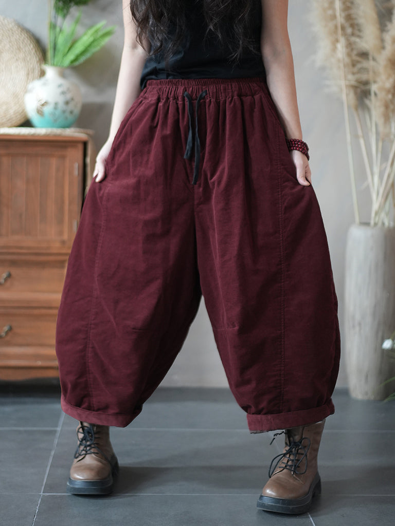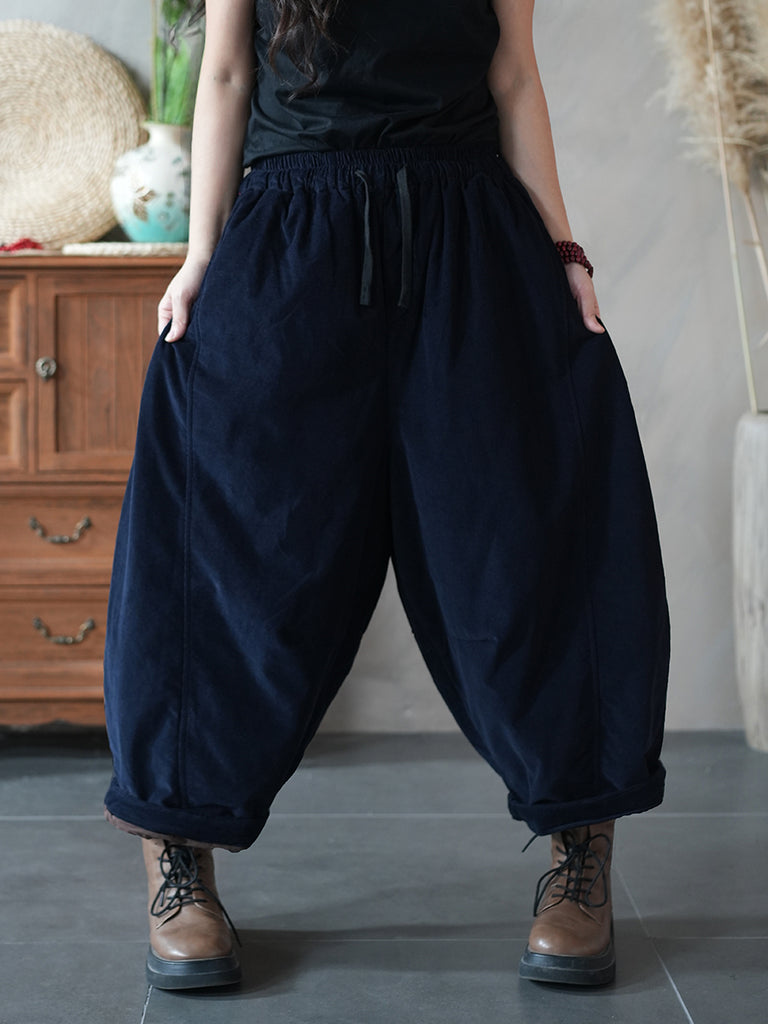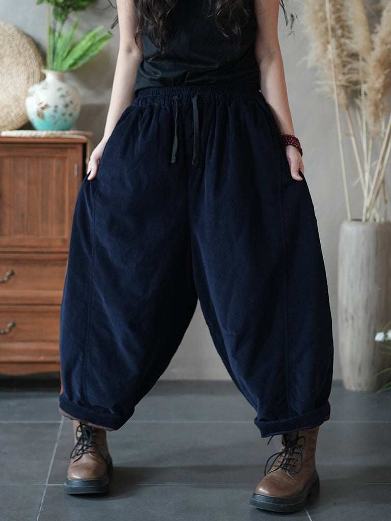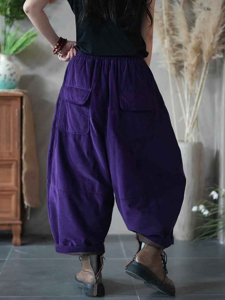 Women Winter Retro Pure Color Padded Bloomers