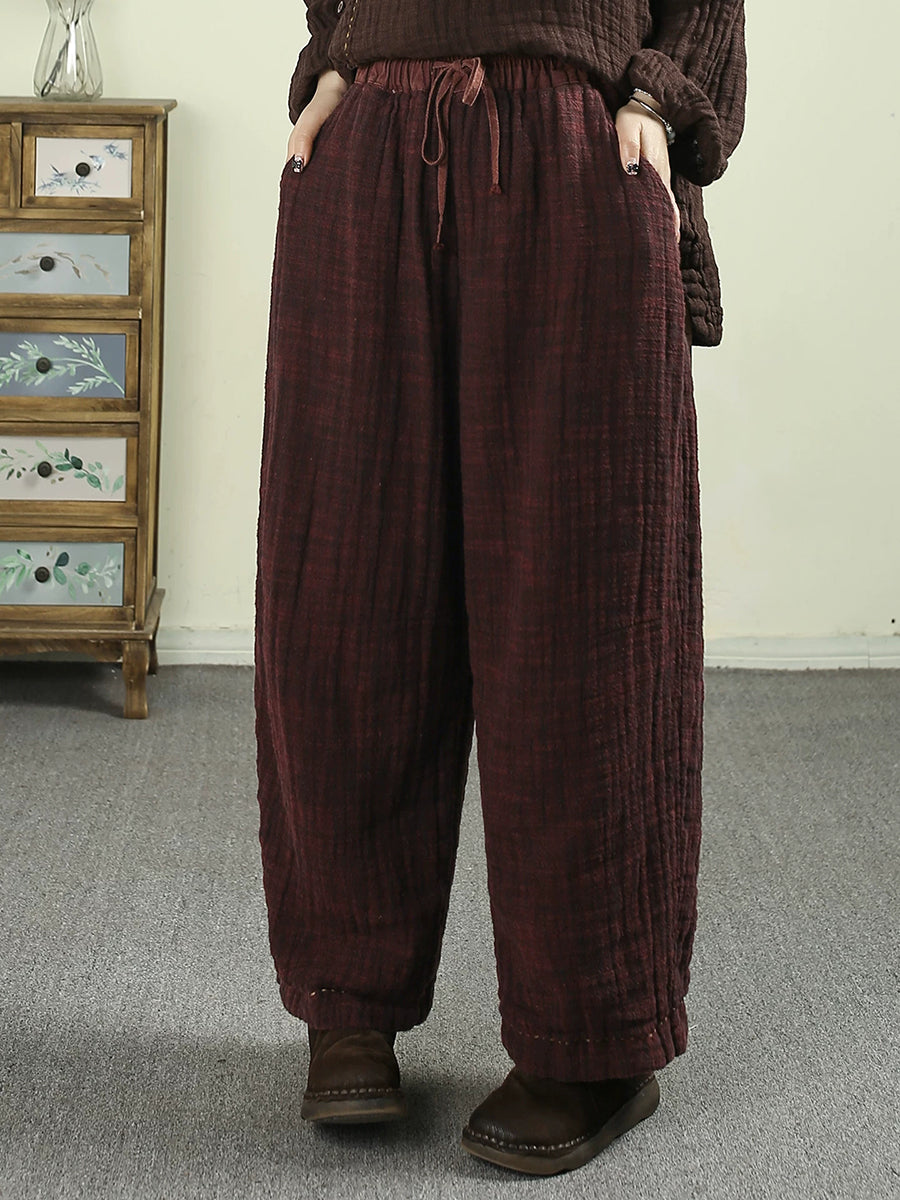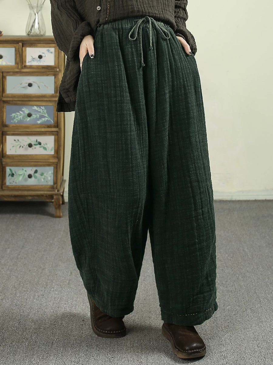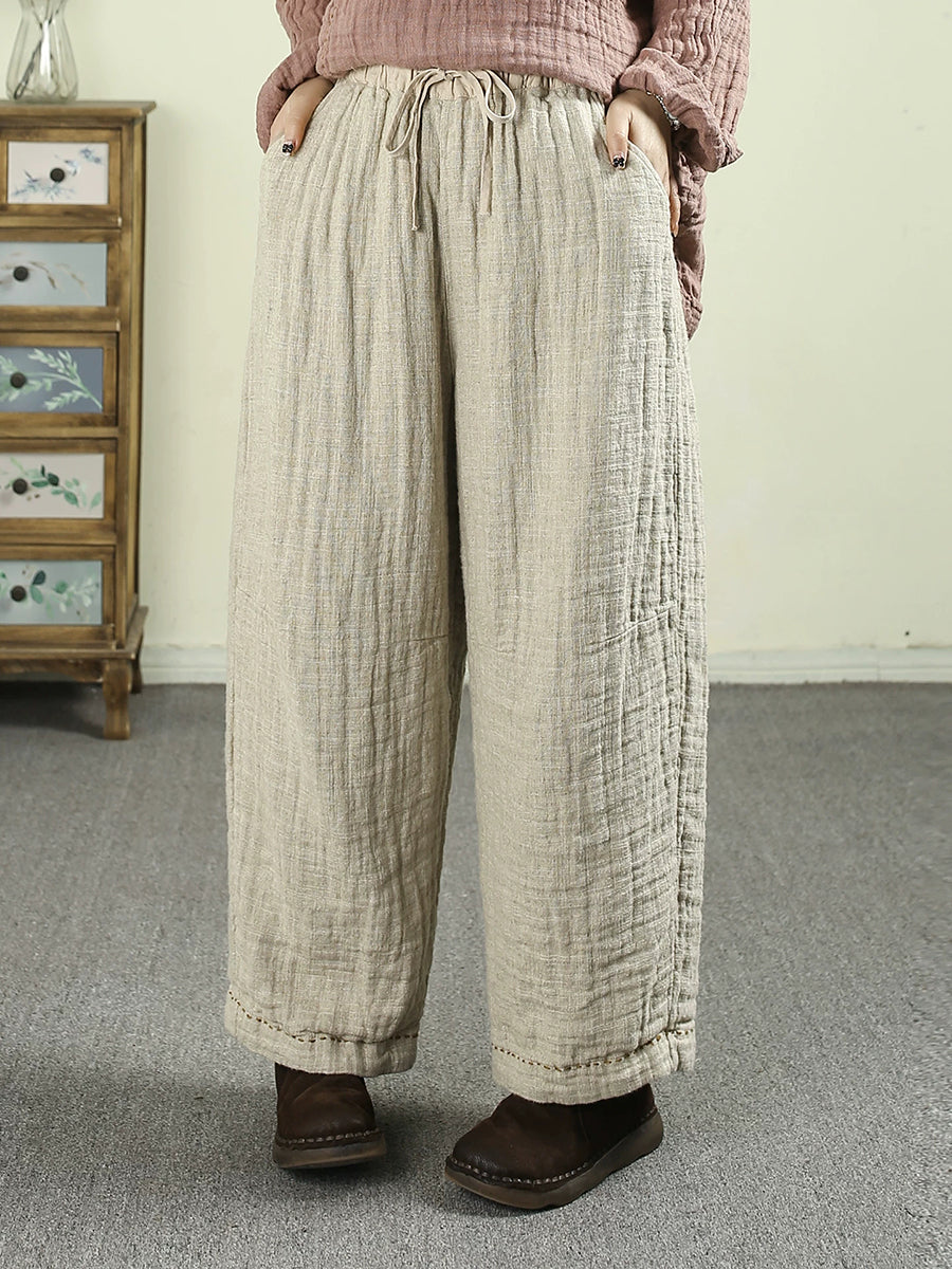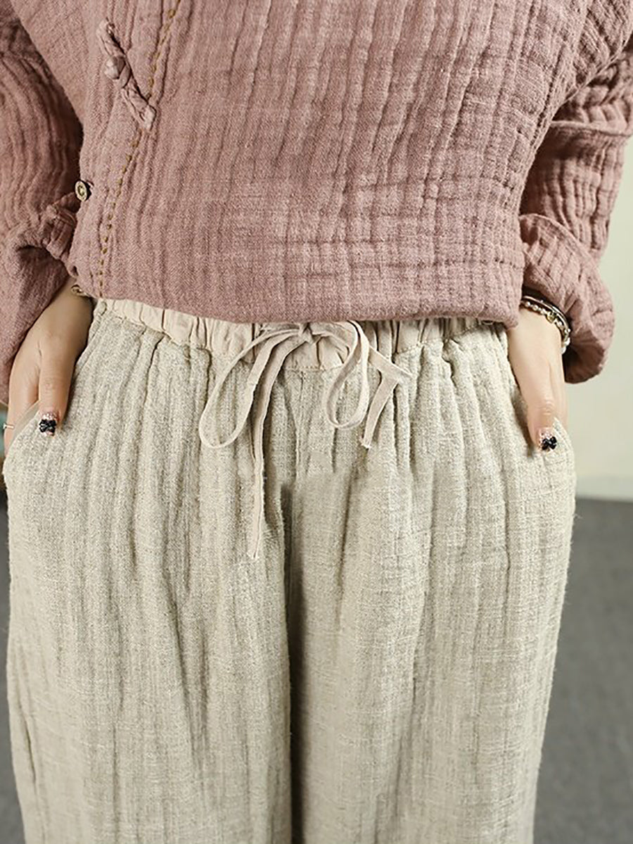 Women Winter Retro Pure Color 100%Linen Straight Pants