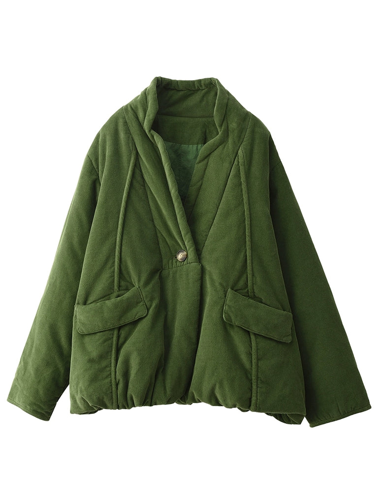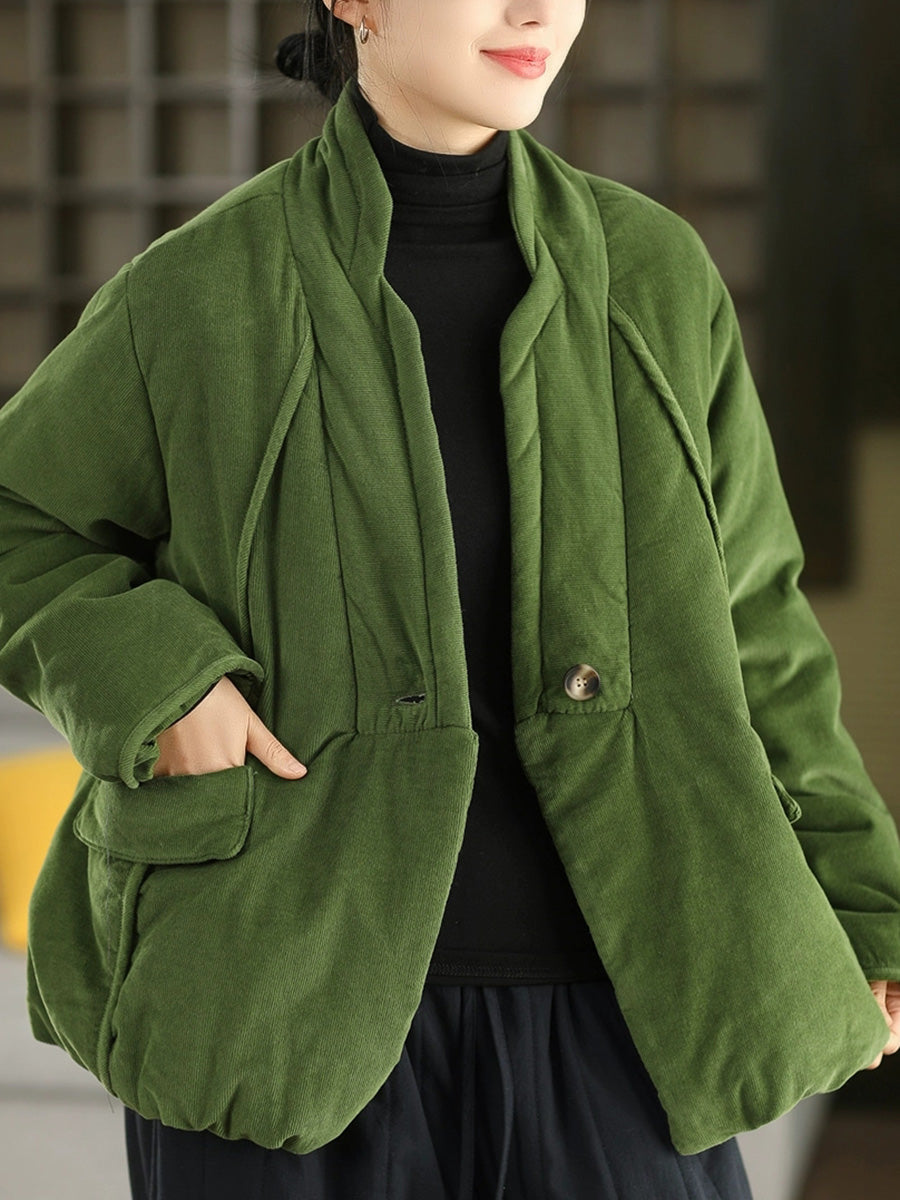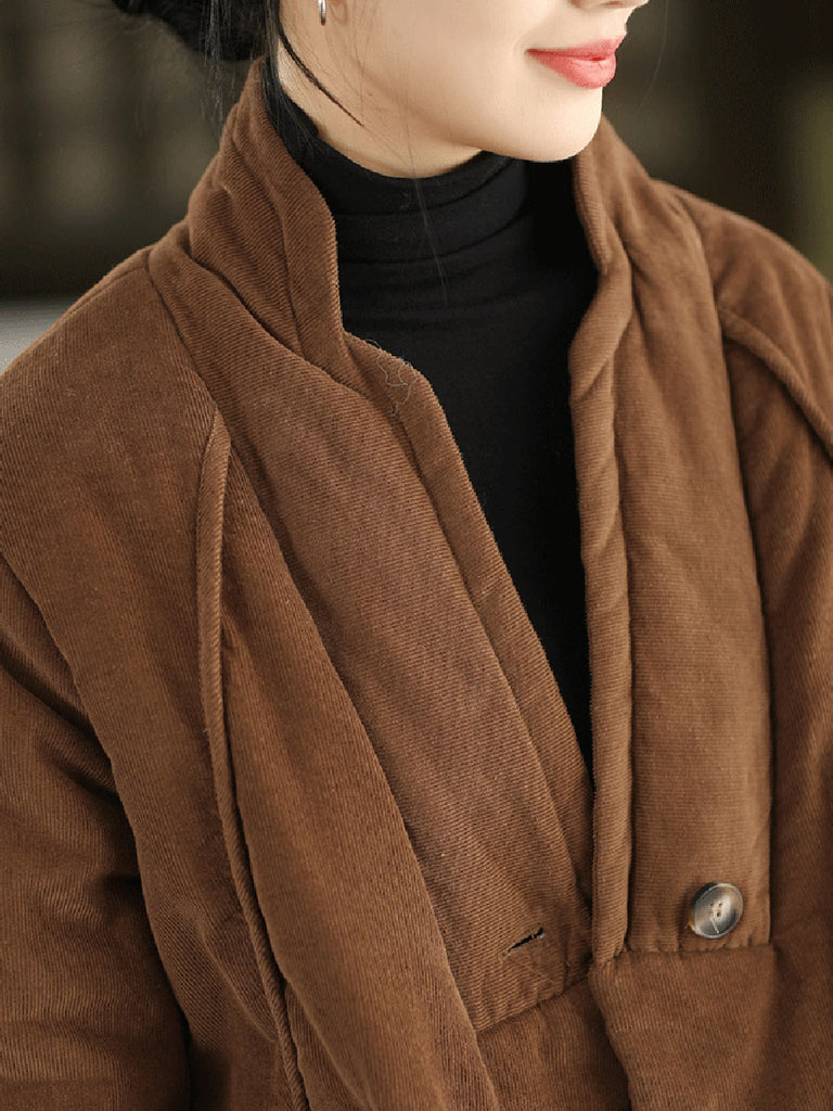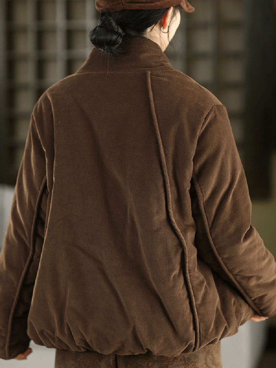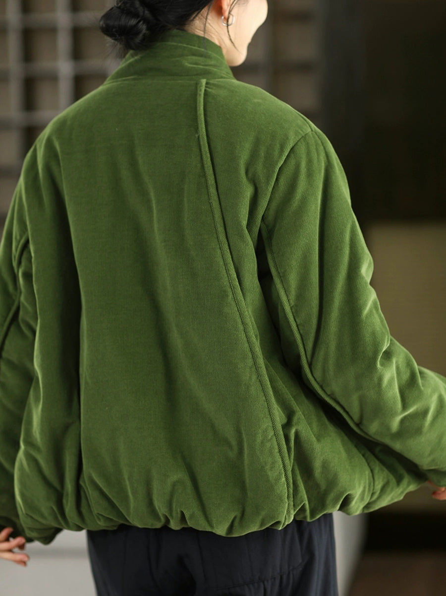 Women Winter Retro Pure Color Padded Stand Collar Coat