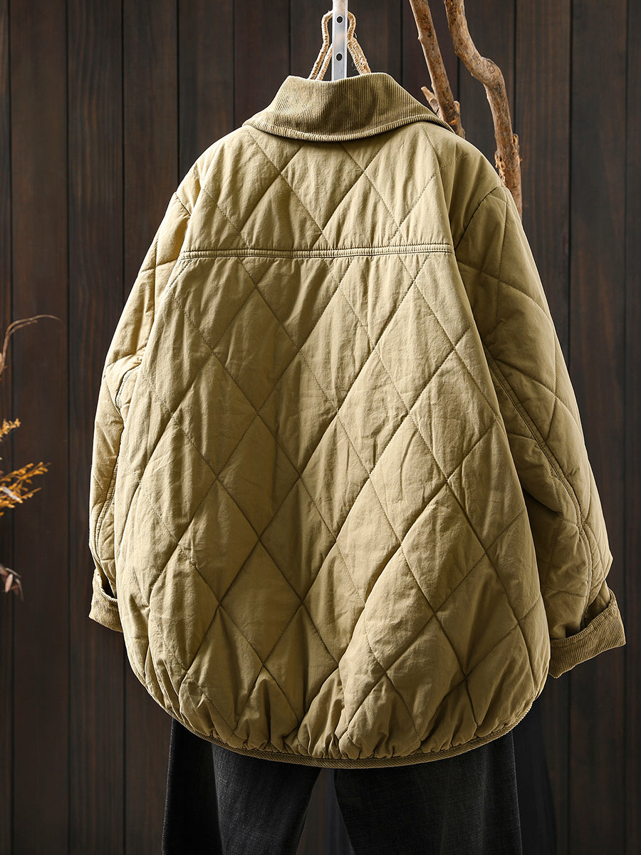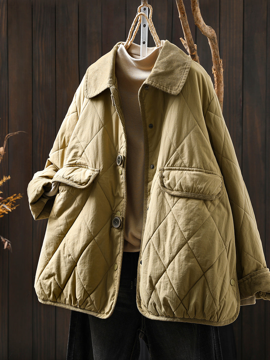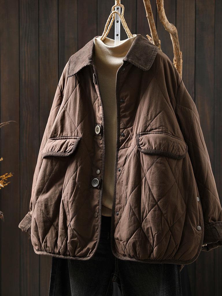 Women Winter Retro Pure Color Turn-down Collar Padded Coat