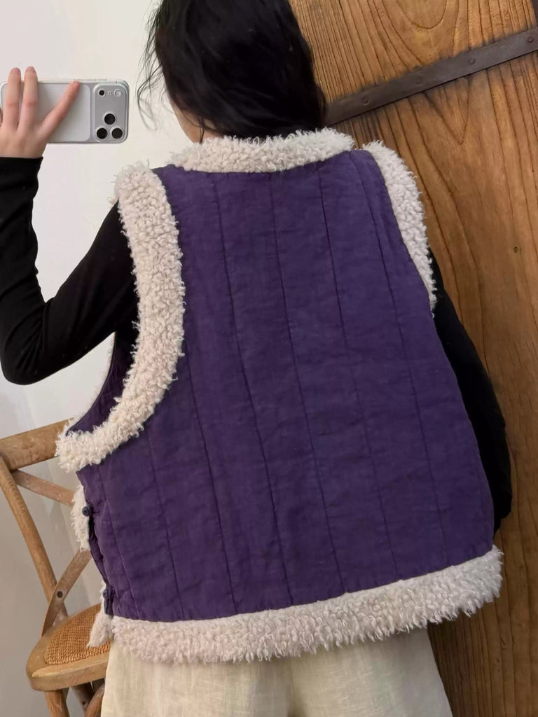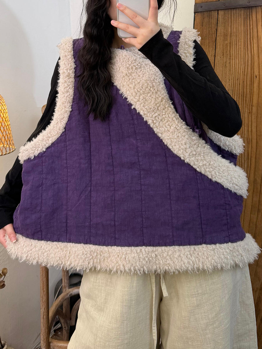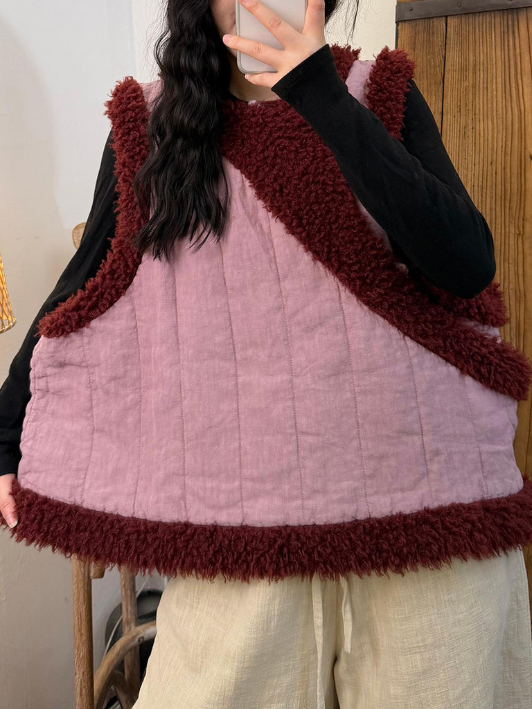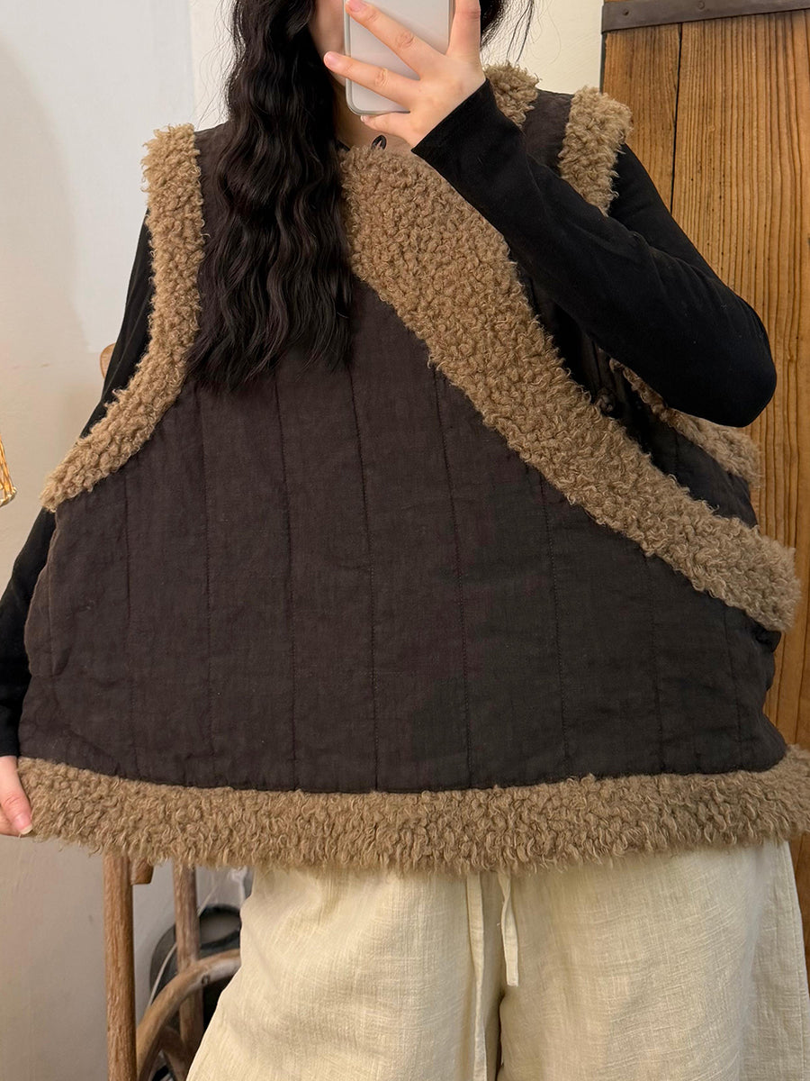 Women Winter Vintage Fleece Spliced Padded Vest
