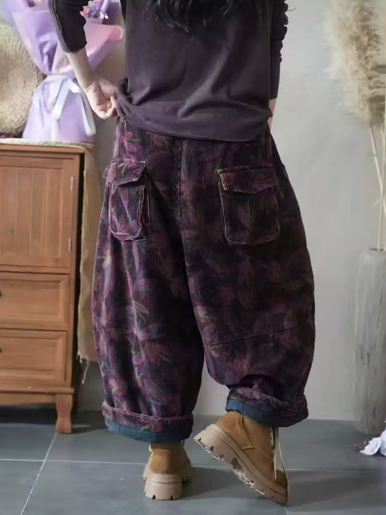 Women Winter Vintage Flower Padded Cotton Harem Pants