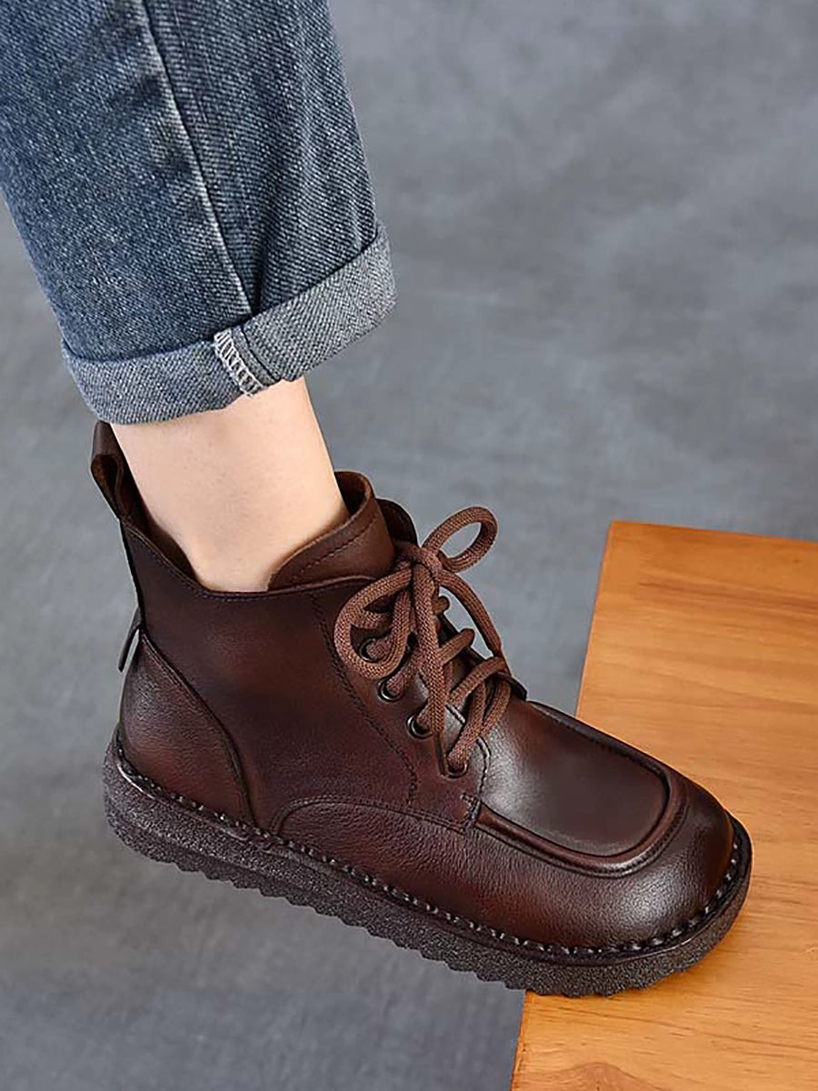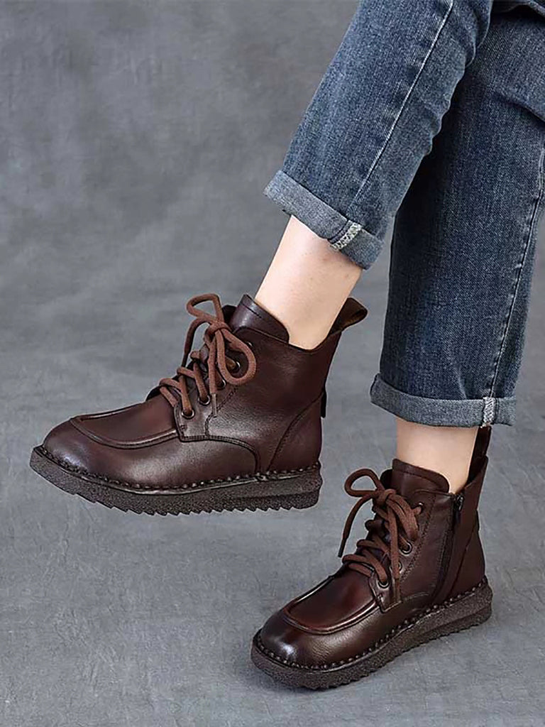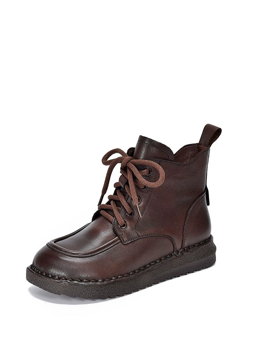 Women Winter Vintage Leather Spliced Ankle Boots