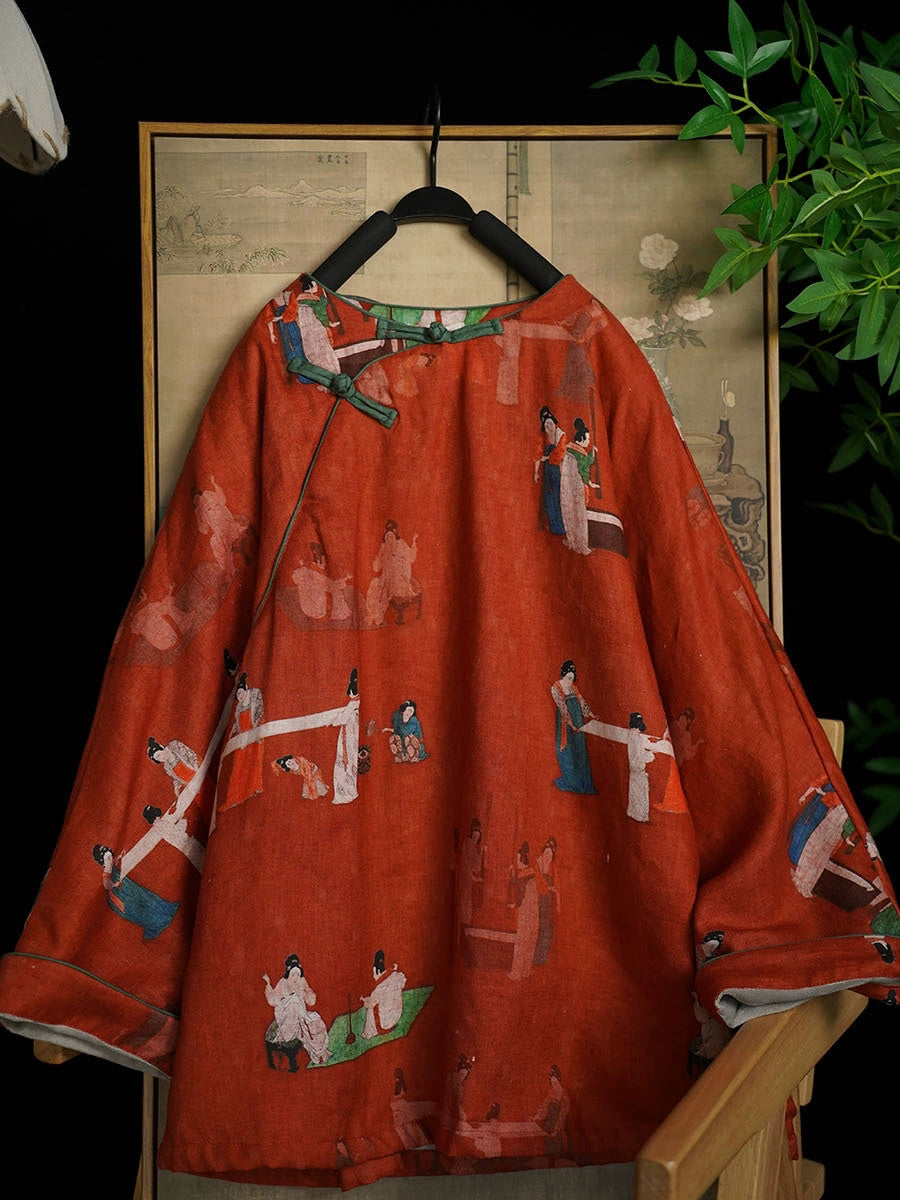 Crafted from premium linen, this vintage-inspired padded coat combines timeless aesthetics with practical winter functionality. The distinctive print pattern adds character, while the relaxed O-neck and raglan sleeves deliver effortless sophistication. Full-length sleeves provide comprehensive coverage during colder months, and the retro silhouette flatters various body types. Ideal for autumn and winter layering, this piece bridges seasonal transitions with understated elegance and enduring style.