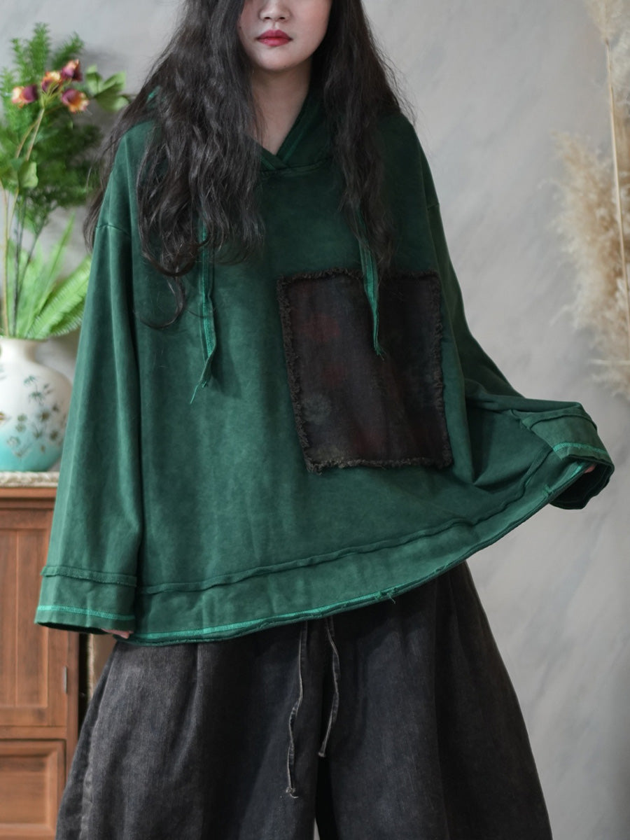 Women Winter Vintage Patchwork 100%Cotton Hoodie