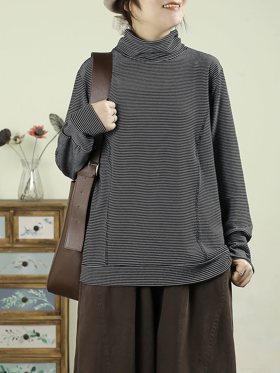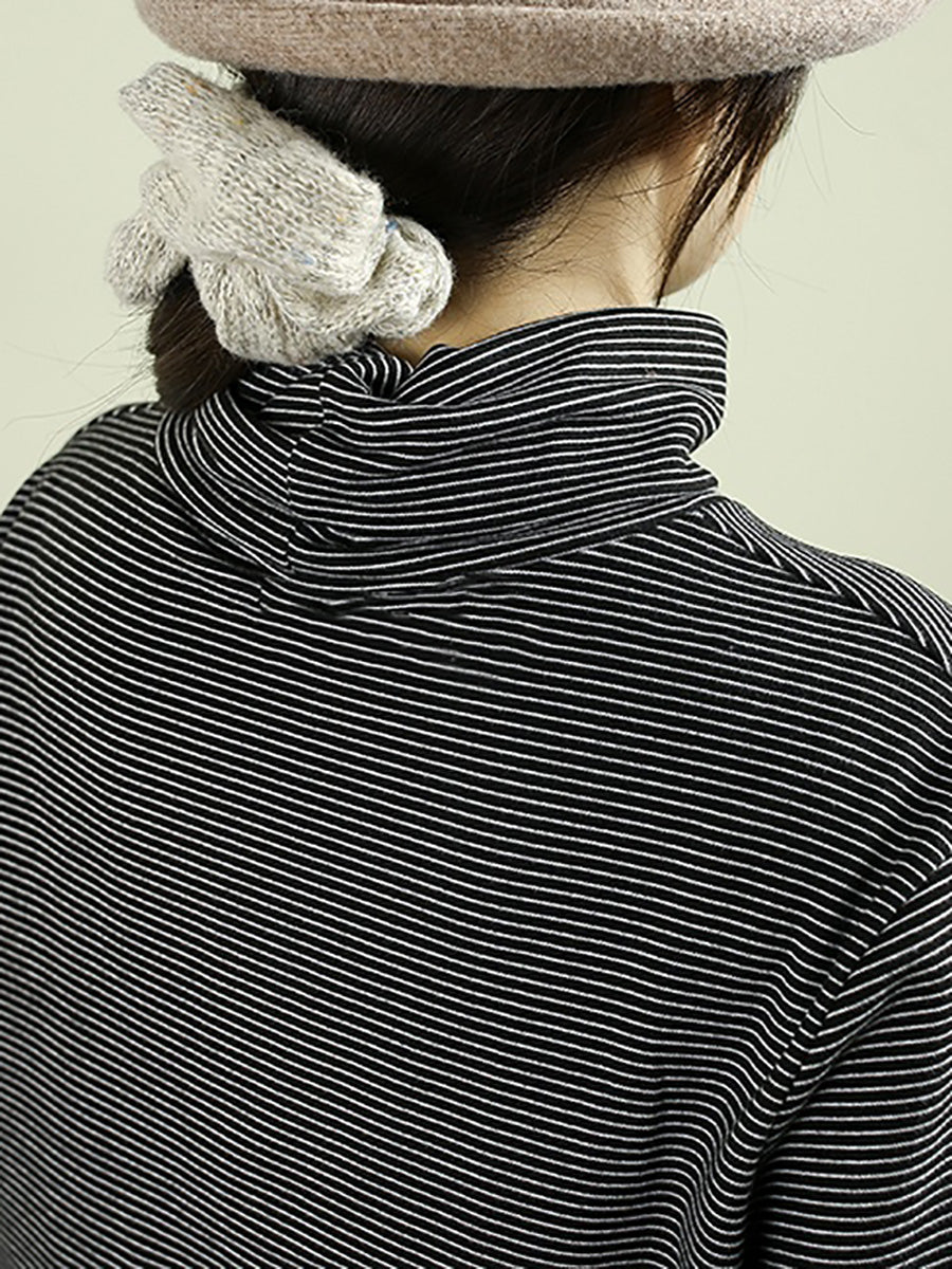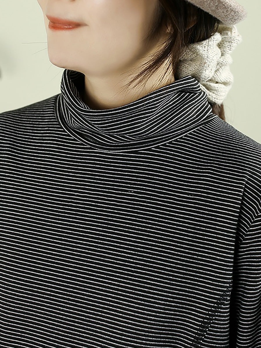 Women Winter Vintage Stripe Turtleneck Blouse